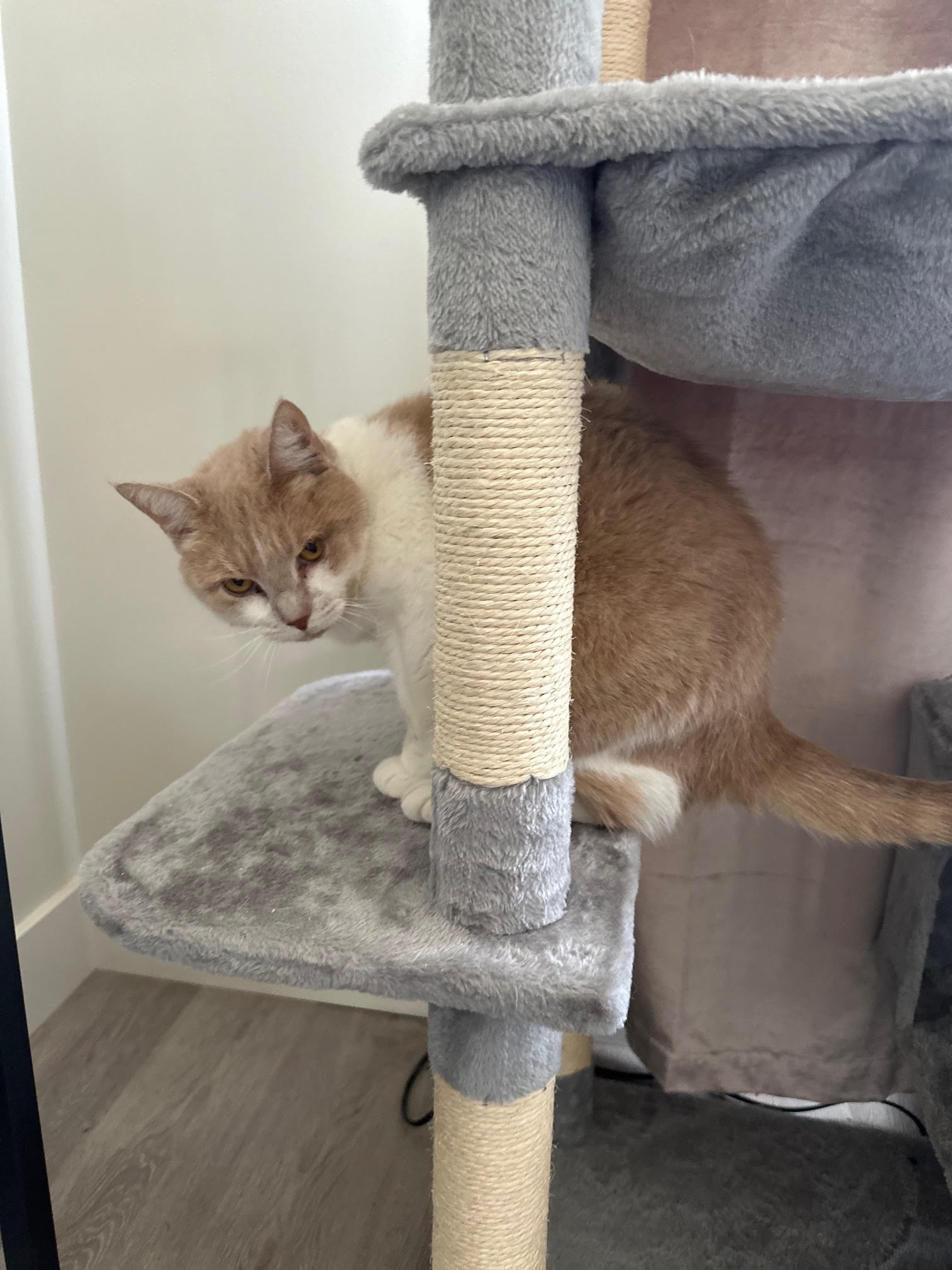 I spend most of my day looking out the window or napping at the very top of my cat tree. And I am looking for a home where I can be your special companion, get plenty of pets, and share lots of snuggles especially at bedtime. If you don’t mind a bit of fur and have a big heart, I promise I’ll fill it with love (and a lot of cuteness too!).