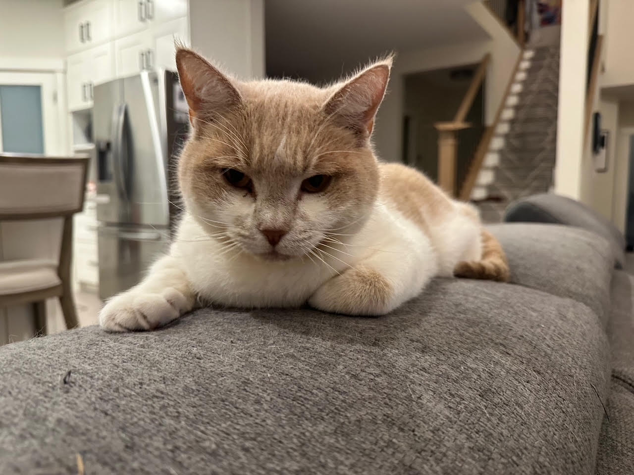 I’m a playful, affectionate adult kitty who LOVES people—and I mean really loves cuddles, head bumps, and lap time after a good play session. I’m especially fond of small dogs, so if you have one, we’ll probably become best friends right away! Just so you know, I’m not a fan of other cats, so I’d do best in a home without any feline friends.