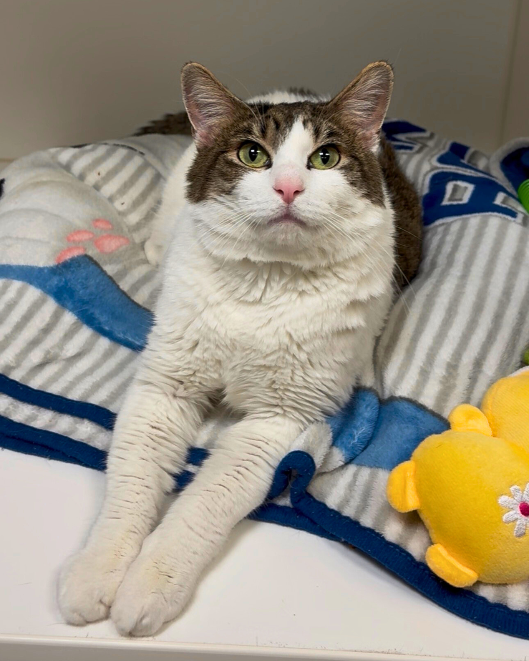In the shelter, Rye showed a spicy side, but in a home environment, his true personality has blossomed. He’s revealed himself to be a sweet, affectionate, and unapologetically himself kind of cat. The more he trusts you, the more kisses, snuggles, and soulful looks you’ll receive – like you’re his entire world.