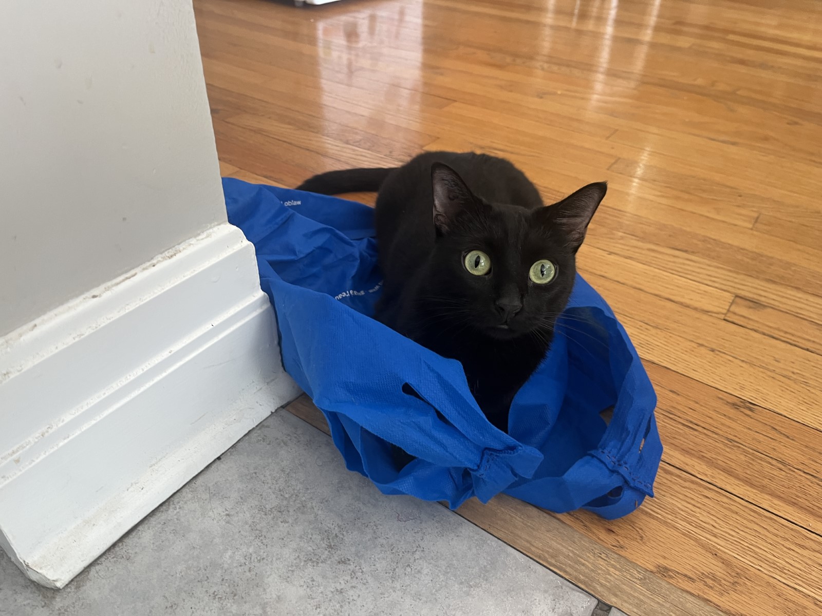She is a loving and affectionate cat who loves being around people. She likes to meet you at the door when you get home, and will always be nearby to ask for a pet, or just curled up in a ball! While she will sometimes be vocal with a meow and frequent cooing, she is the world’s quietest purr-er.