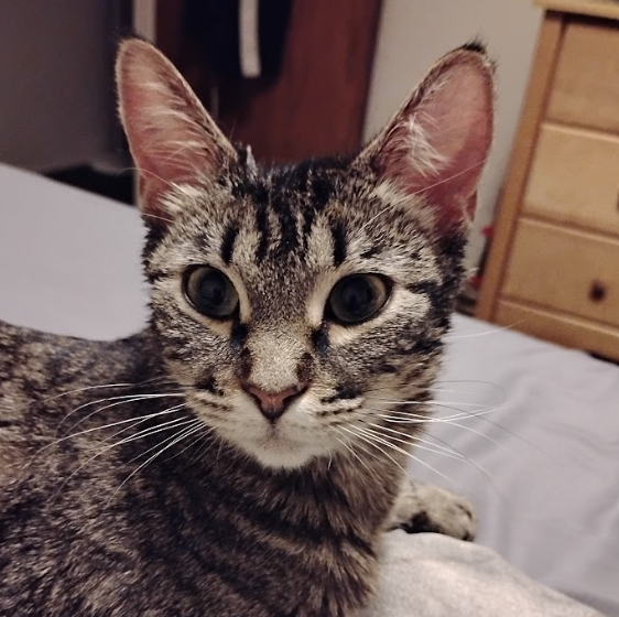 She enjoys belly rubs, jumping up on the couch with me, leading me to the bedroom and jumping up on the bed looking for cuddles and pets. She is a big sweetheart once she comes out of her shell and stars trusting you.