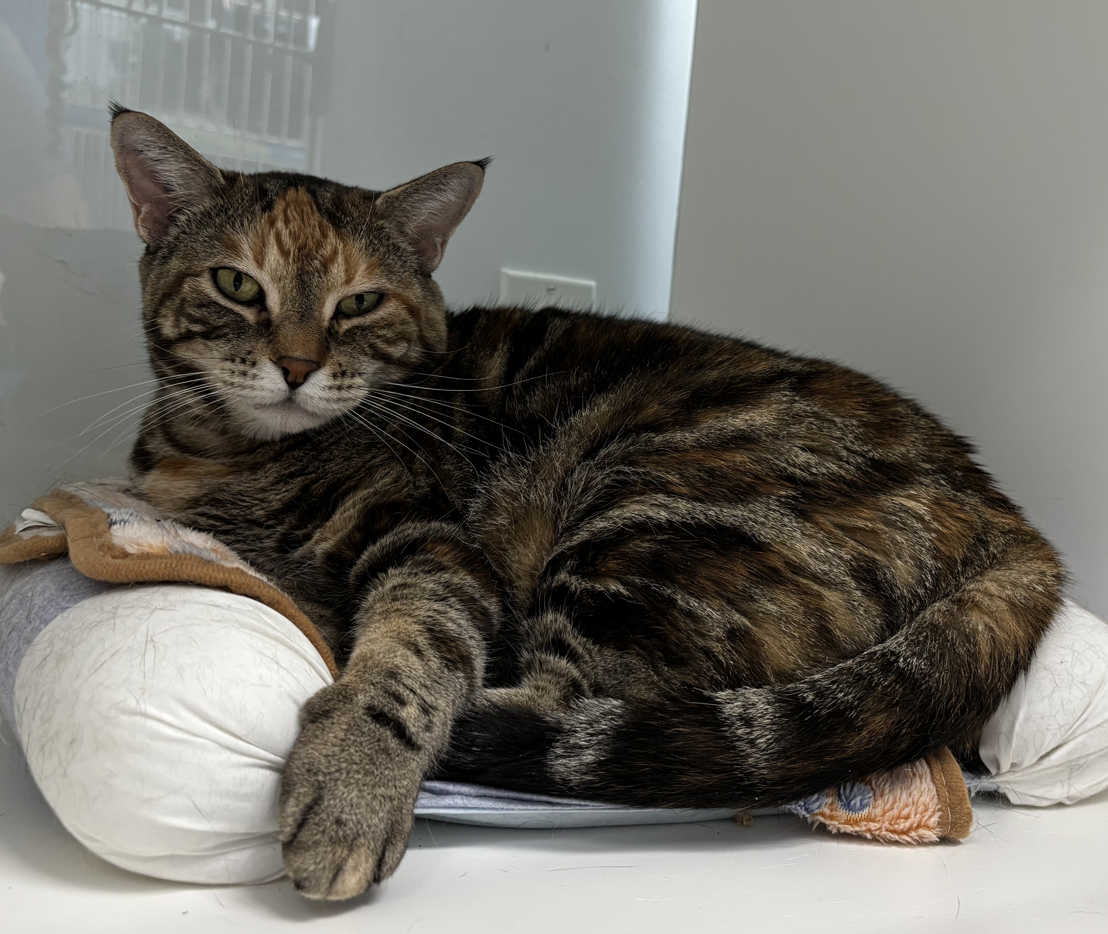 While she prefers to have all 4 paws on the ground, she’s wonderfully affectionate in her own way. Shua is also quite vocal—she loves to ‘chat’ and follow you from room to room. She’s such a charming little character, possibly with a hint of Bengal in her spirited personality. Apply today!