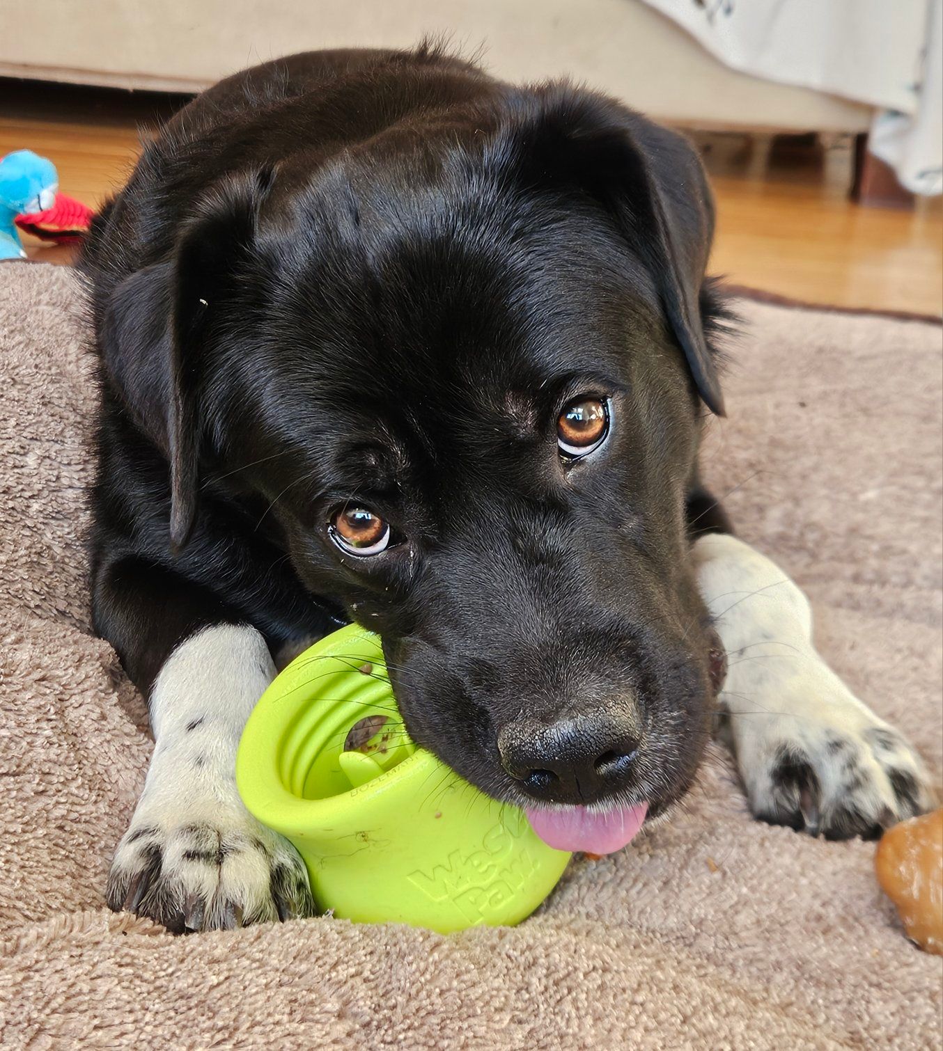 I am a super sweet and affectionate dog who loves being close to my humans. I am about 50 pounds, so a perfect medium size pup for any humans that enjoy outdoor activities and indoor snuggling. I’m a clever pup who’s still building confidence, and I do best with gentle encouragement and positive experiences. While I love being active, once I’m tired out, I like to snooze on the couch or on the armchair!