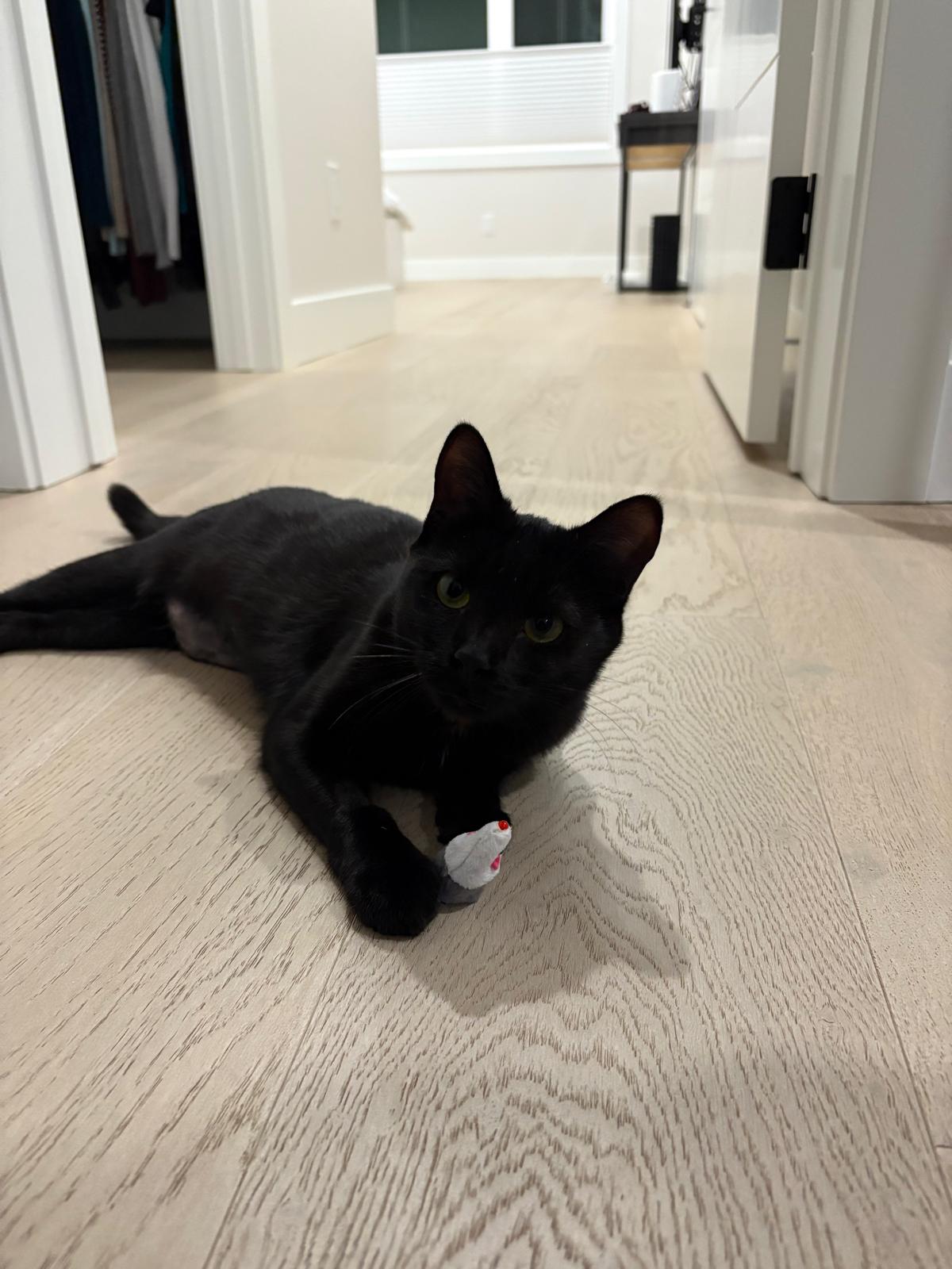 My name is Trinity and I love chin scratches, playing with my string toys and following my foster parents around everywhere! I am the sweetest little kitty that loves to get petted, and play with all my string toys and balls. I will follow you EVERYWHERE just so I can get more pets and attention. I have a bright, lively personality and love to stay busy throughout the day — A home that enjoys playtime, enrichment, and an active daily routine would be a fantastic match for me, as I truly thrive when I have people to interact with and activities to keep me engaged.