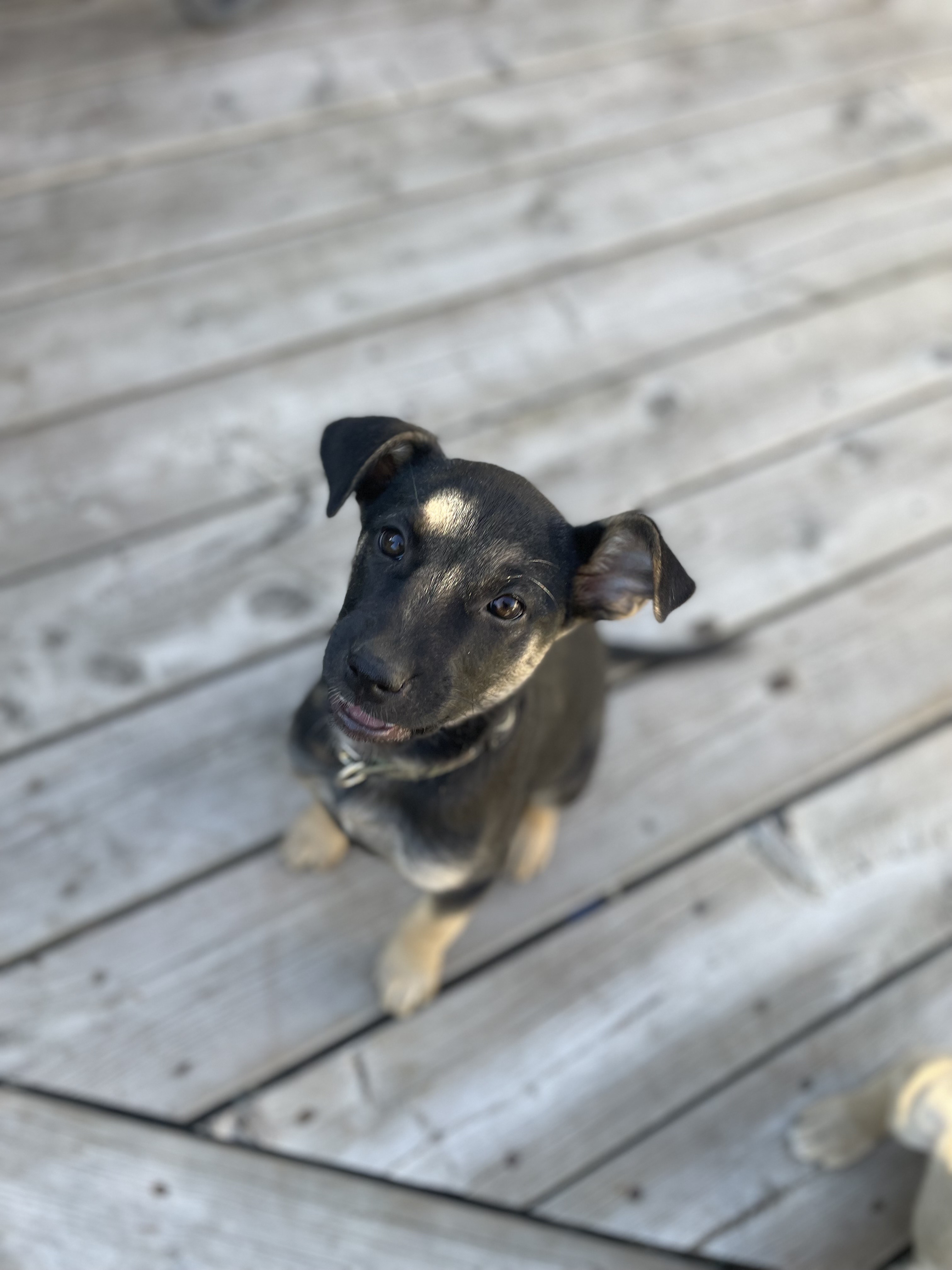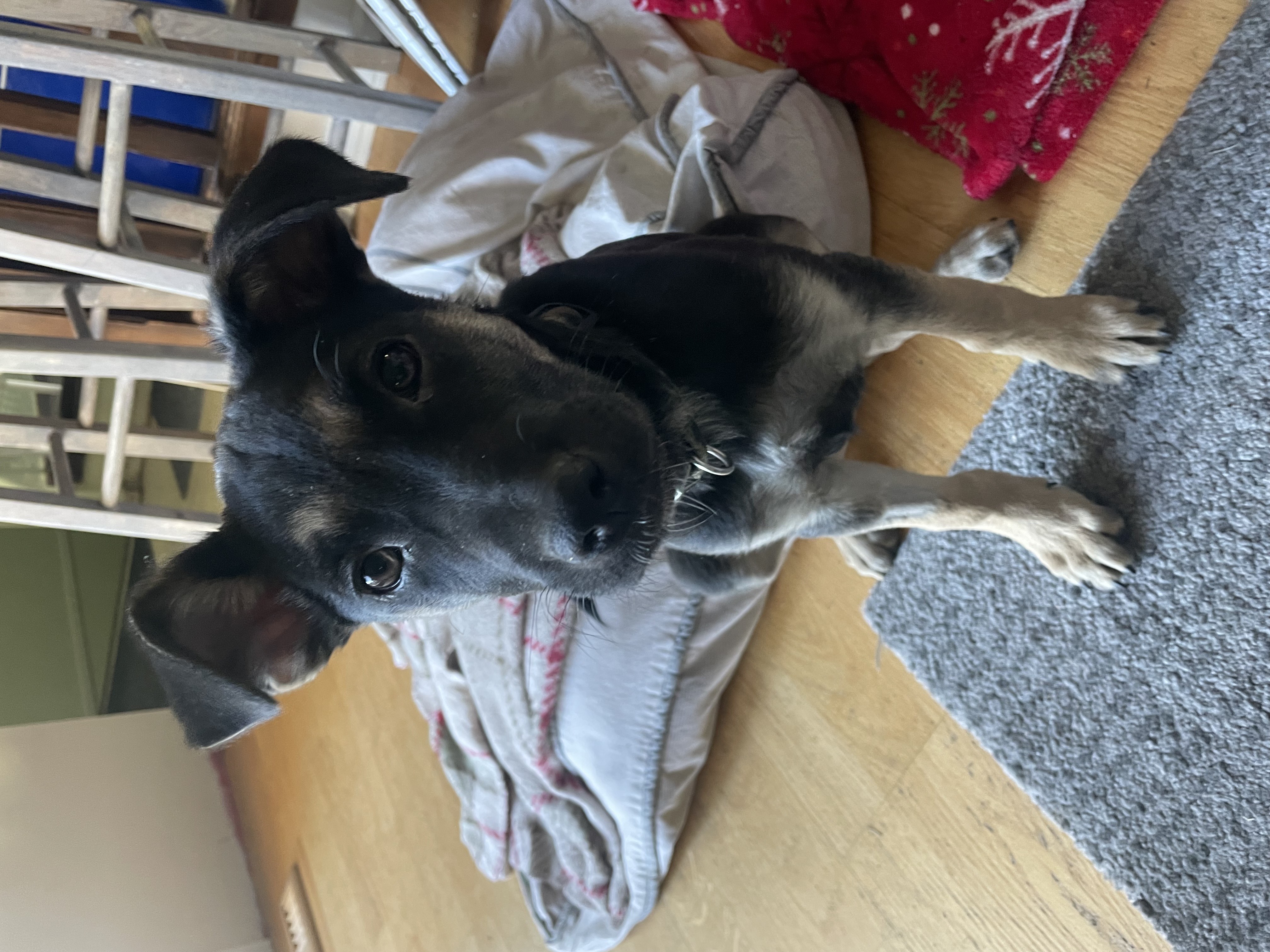 Dusk has made great progress with potty training and already knows how to use puppy pads reliably. Dusk is a curious little pup who is finding her voice. Training is going well too; she’s starting to get the hang of sit, down, and stay.