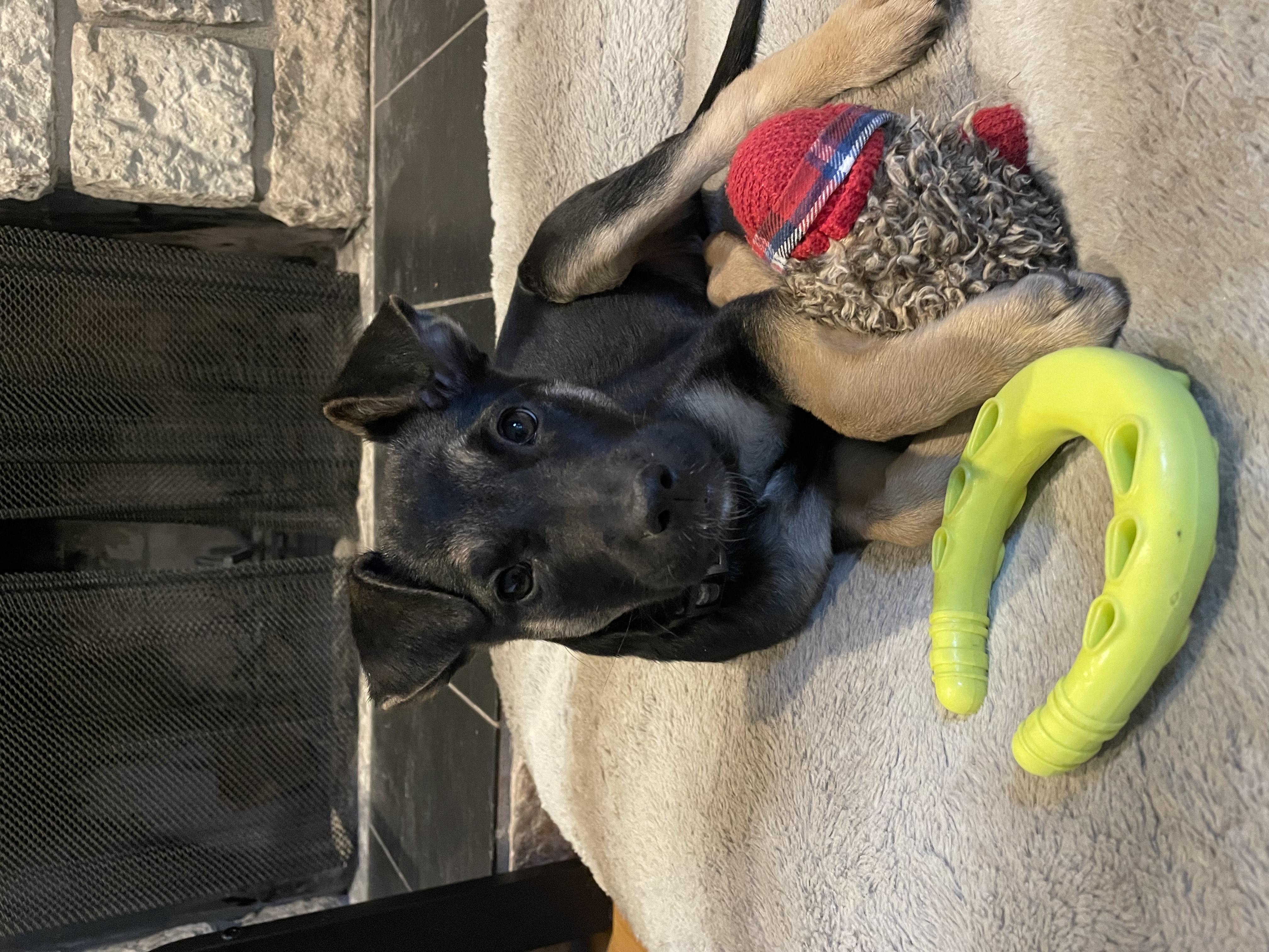 While she can be a bit shy at first, once she feels comfortable, it’s game on! Dusk absolutely loves to play, wrestle, and explore the outdoors — she’s full of energy and joy once her confidence shines through. Dusk is crate trained and sleeps well through the night. She is smart and highly treat motivated; she learned after going potty outside gets her a treat, so she started to pretend potty.