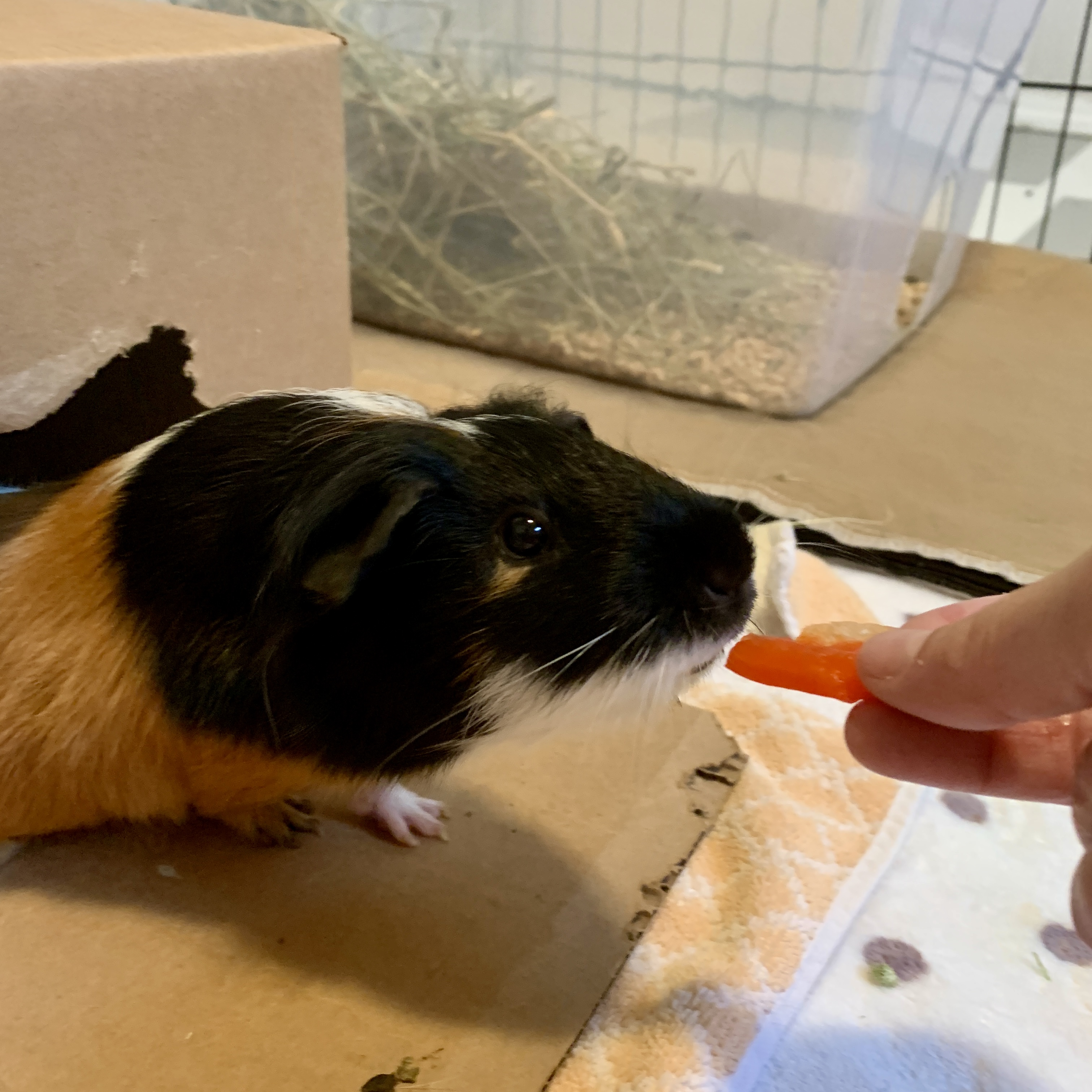 Memphis (multi coloured) and Magnolia (pale) are an adorable pair of bonded guinea pig girls who are ready to steal your heart! These shy but gentle ladies may take a little time to warm up, but once they do, their sweet personalities truly shine.