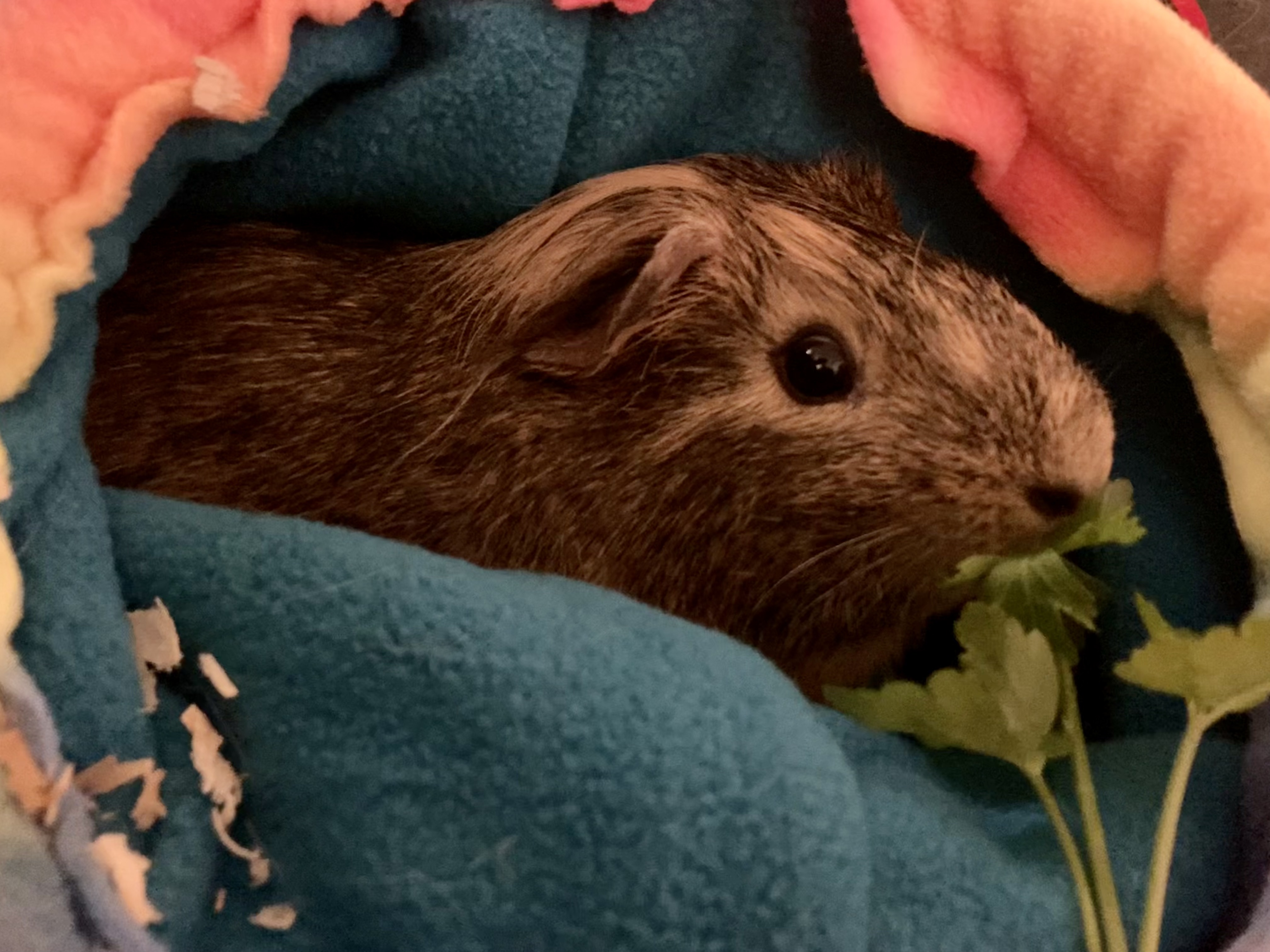 Meet Merry, a gentle and reserved guinea pig who appreciates cozy hides and a calm, predictable environment.