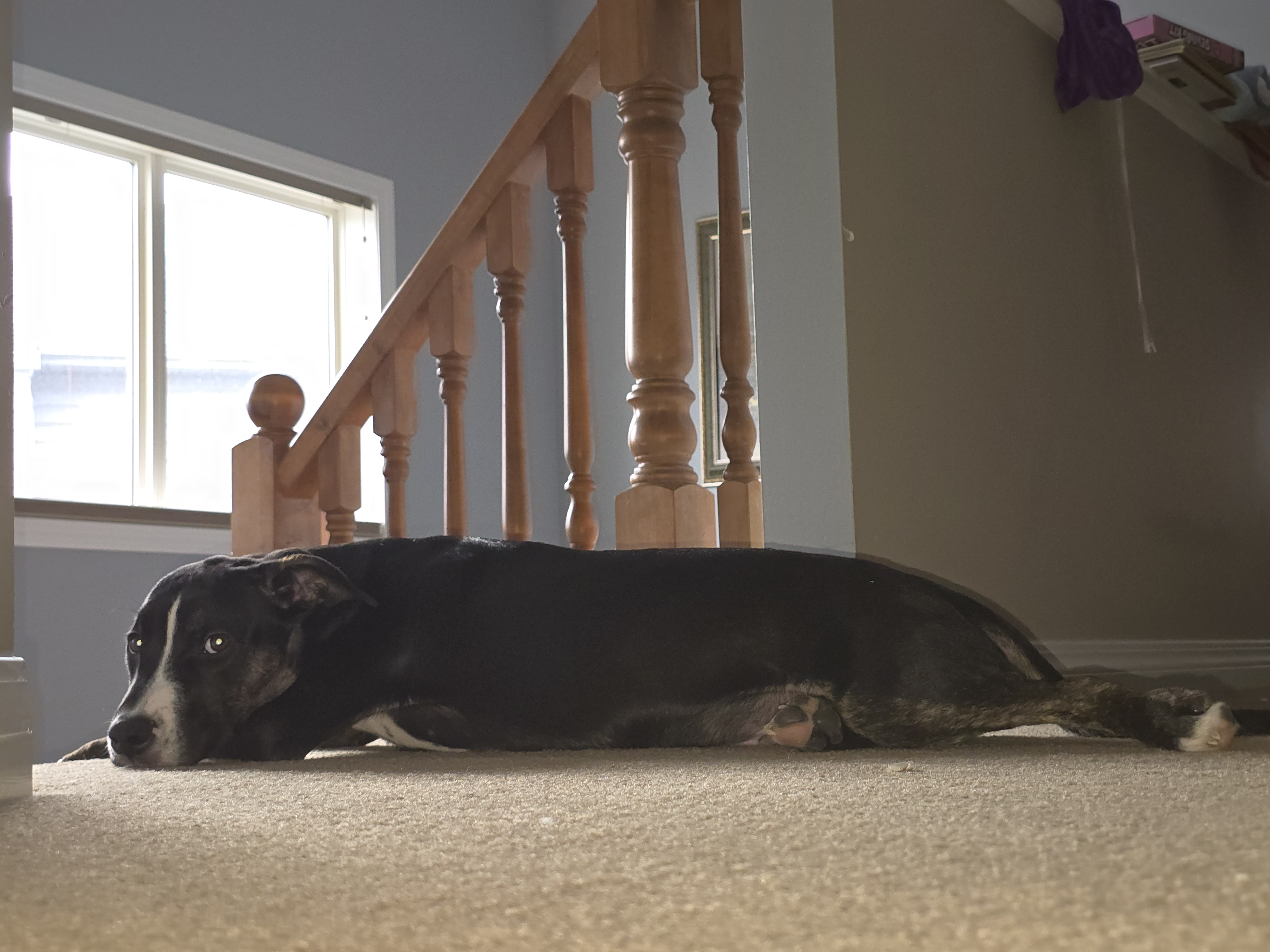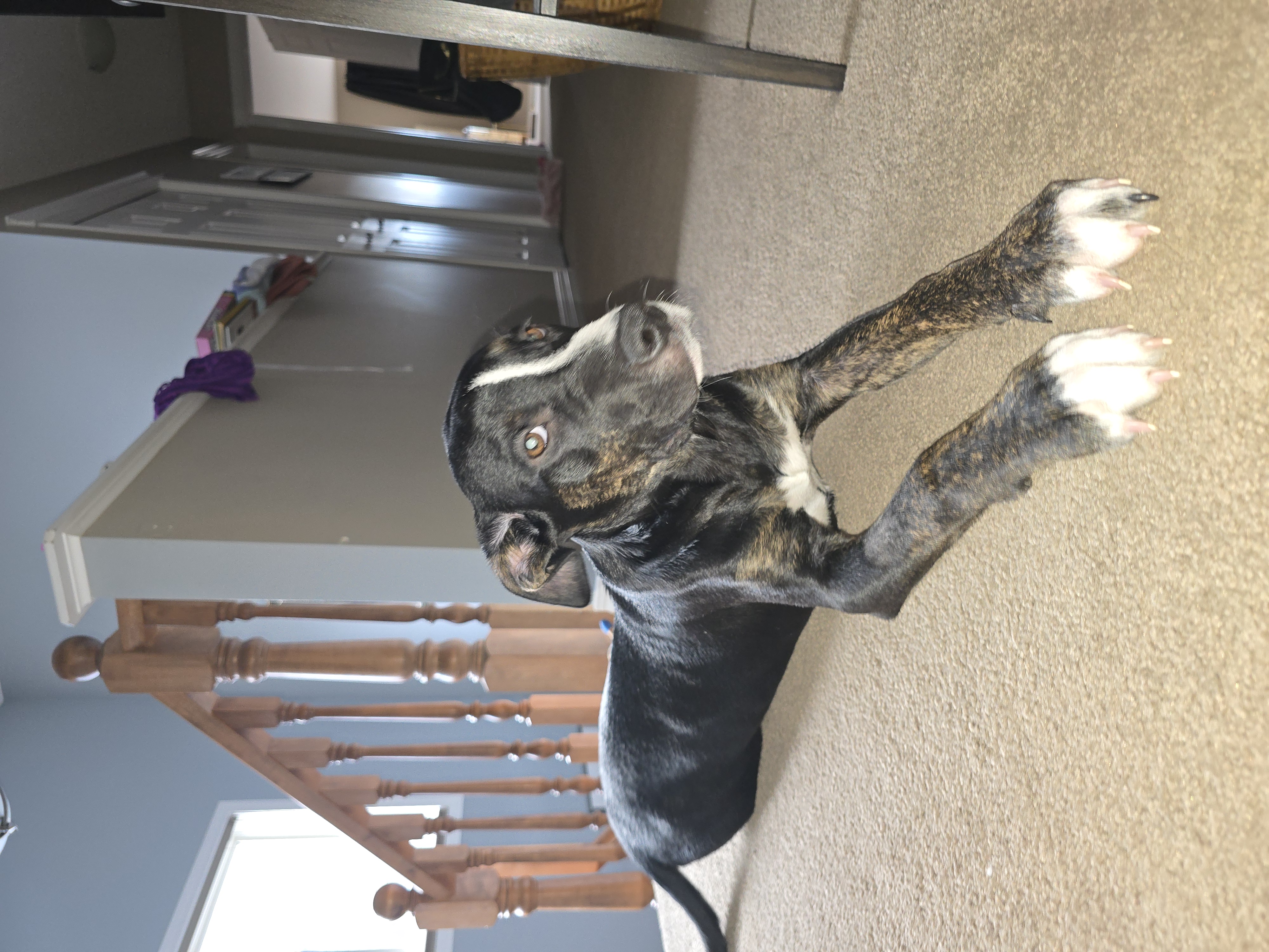 I’m a big snuggler. I love cuddling with my foster mommy, my foster brother, and my foster sister. Kids absolutely love me! I do get a bit excited and jump up sometimes, but I’m still learning my manners, and the kids help remind me when I’m being a little too enthusiastic.
