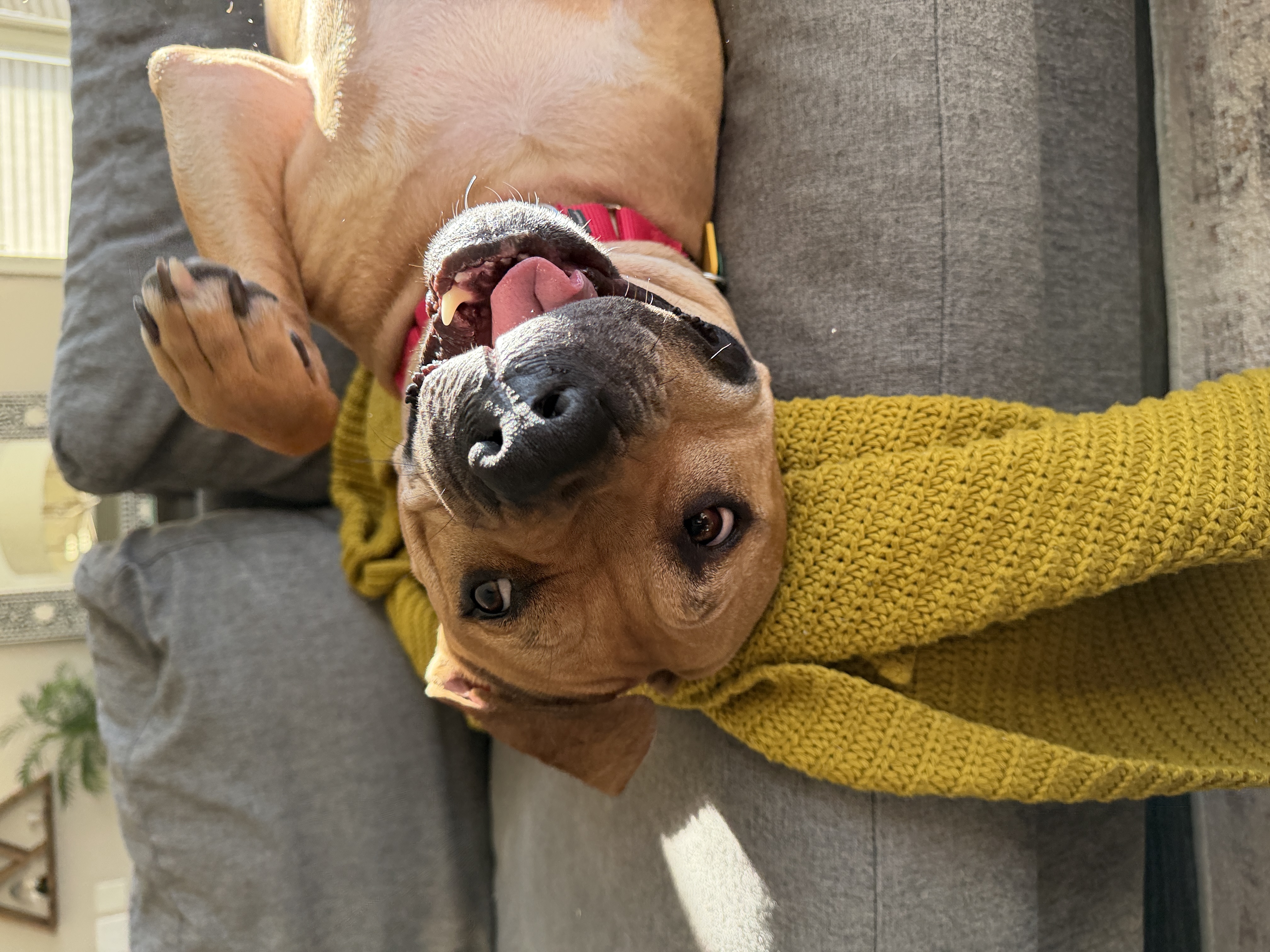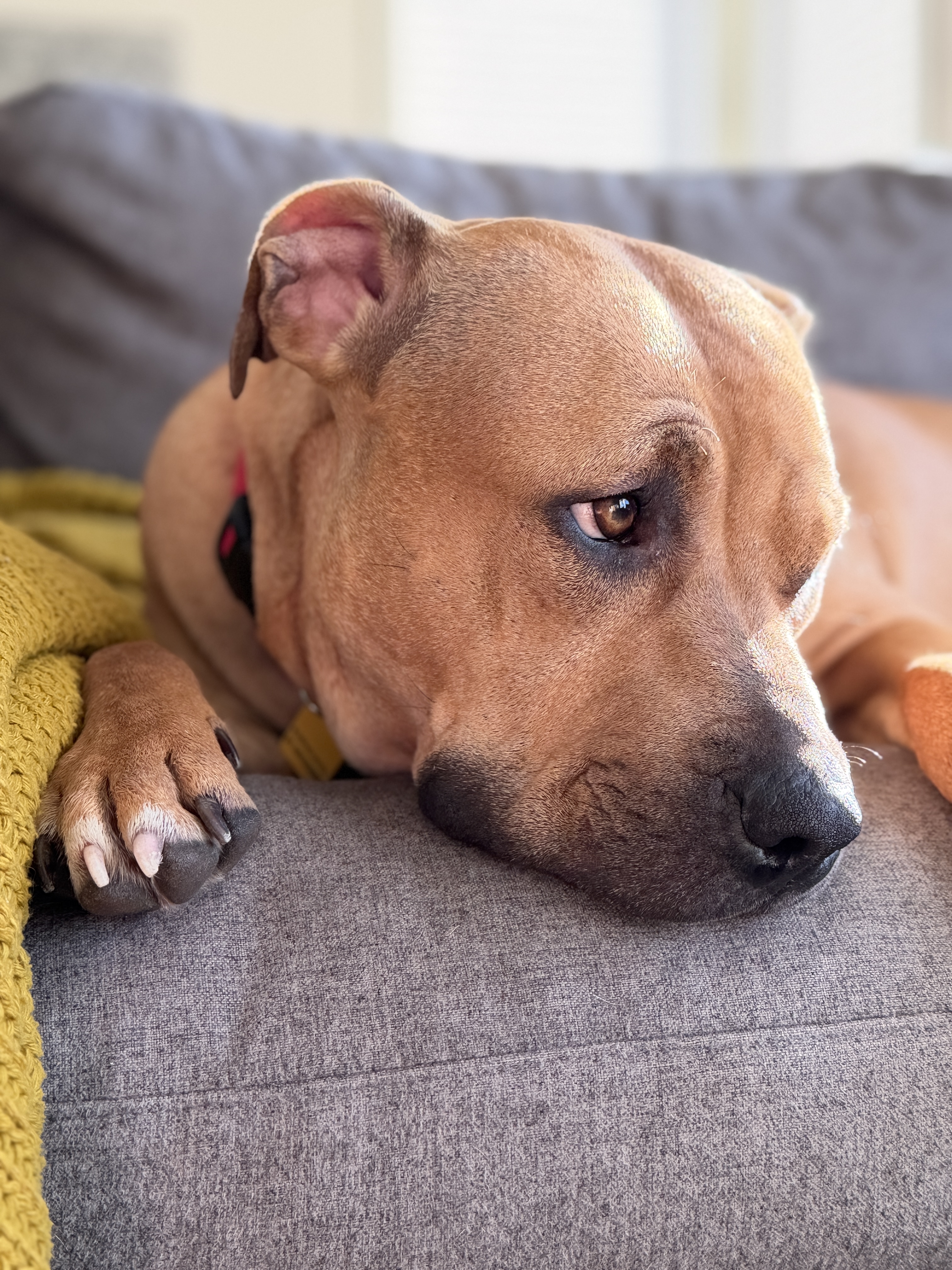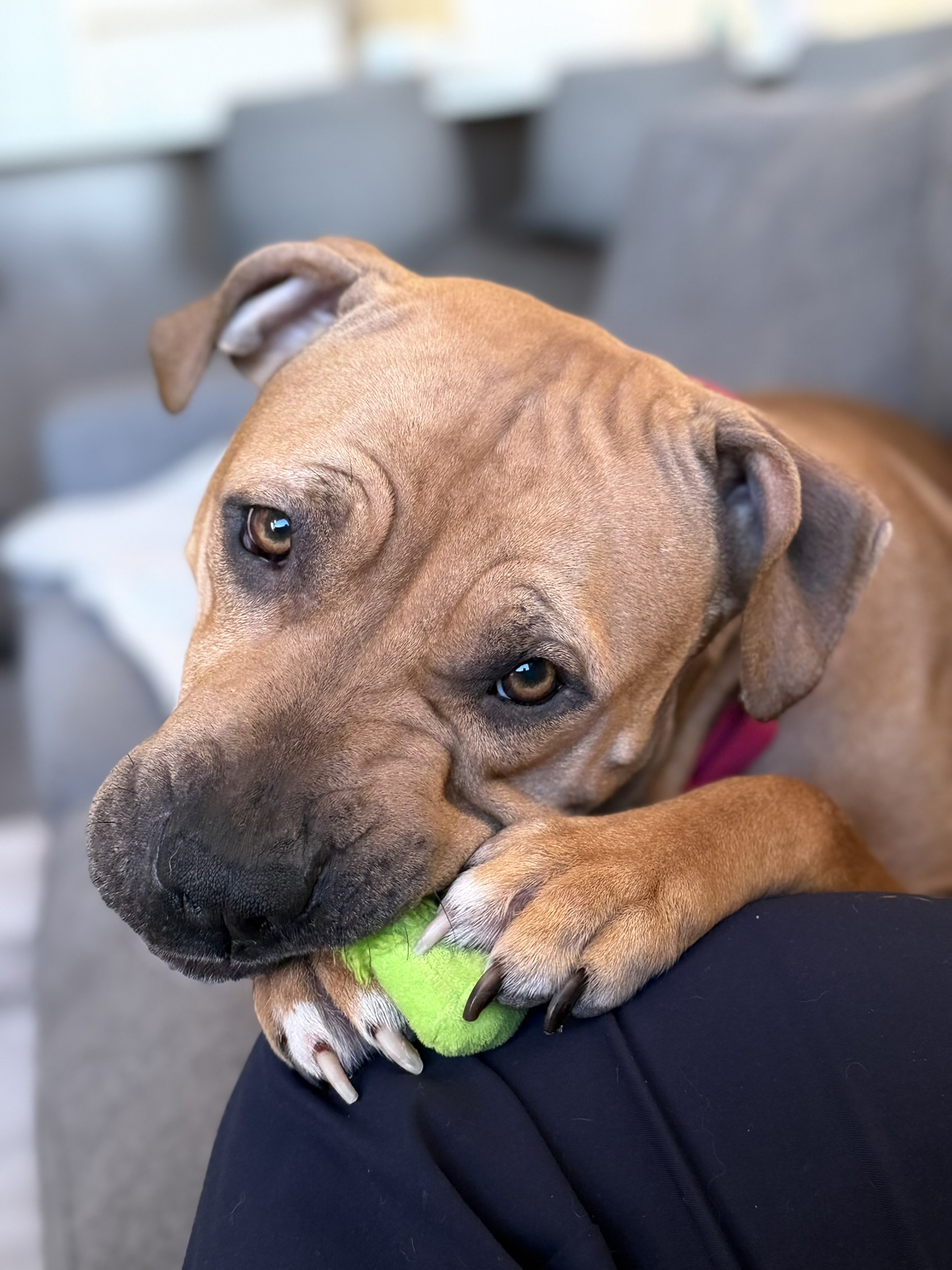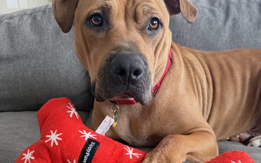 Sure. Now, when you dream of your forever home, what do you see? – “Someone(s) that loves me. Toys and cushy beds. Someone who can slow down on walks to enjoy sniff time and is patient when I pull to get at that scent I really want (it’s not my fault I’m so strong.) Oh, and maybe a fenced backyard, as it can be a little scary at night having to do my business out in the open.” 🏡