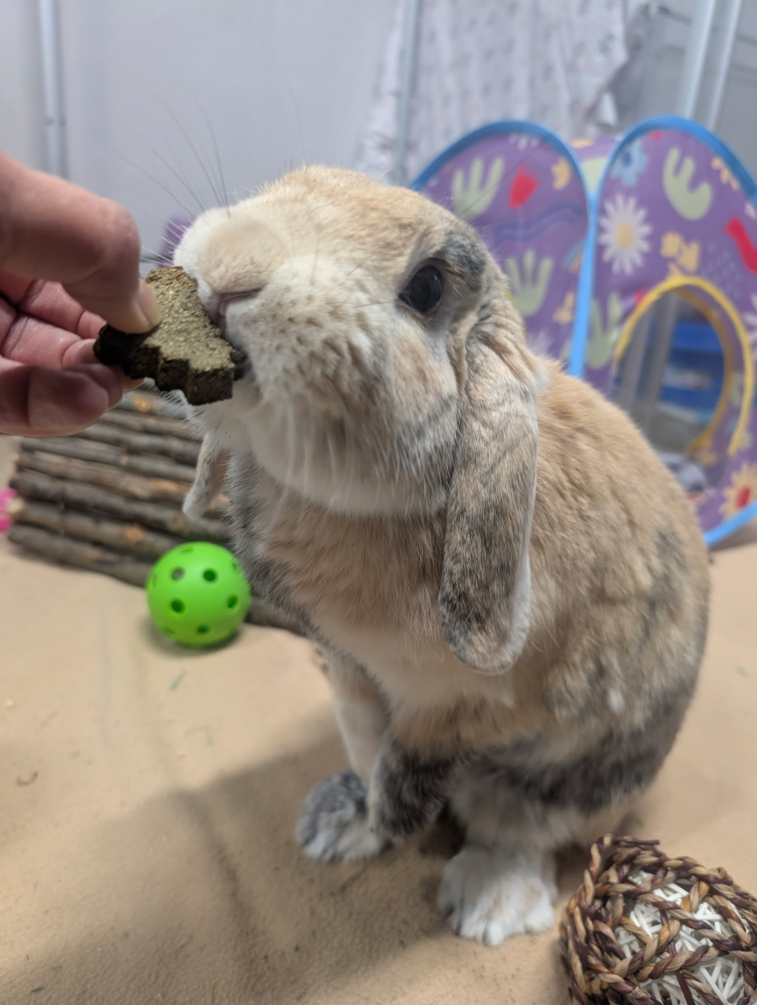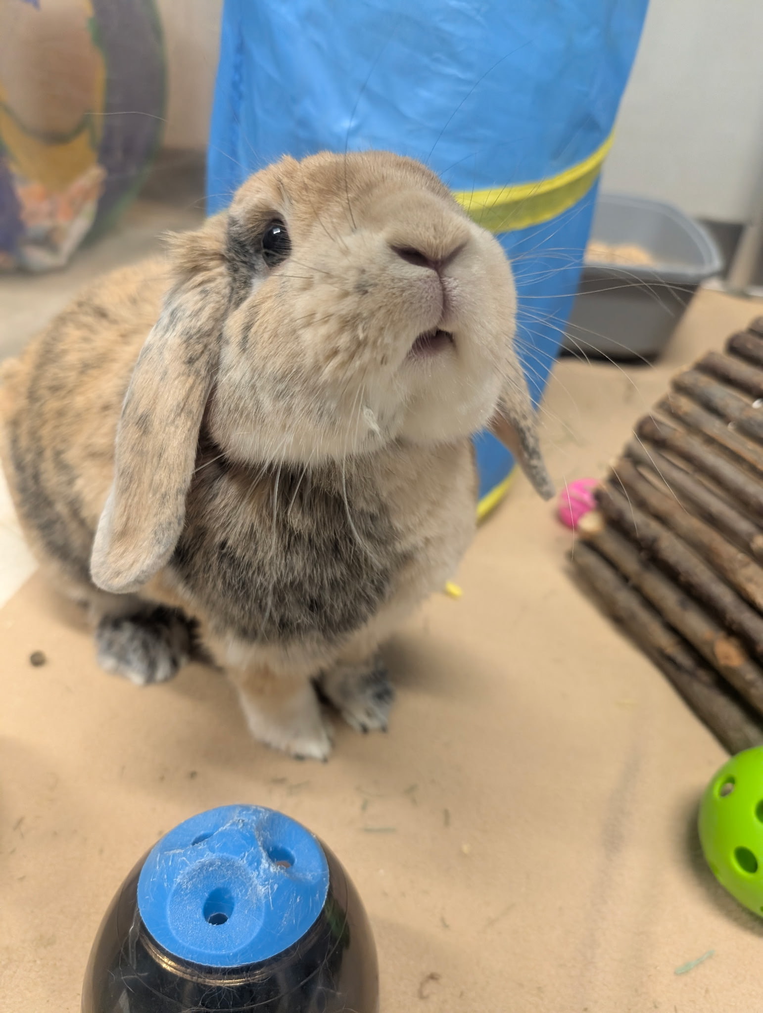 To keep this star shining, Fergie needs a spacious enclosure where he can stretch out and binky. He craves daily free-roam time to explore and investigate new areas and toys. And his charismatic personality will flourish with unlimited fresh hay, crisp leafy veggies, and the occasional healthy treat.