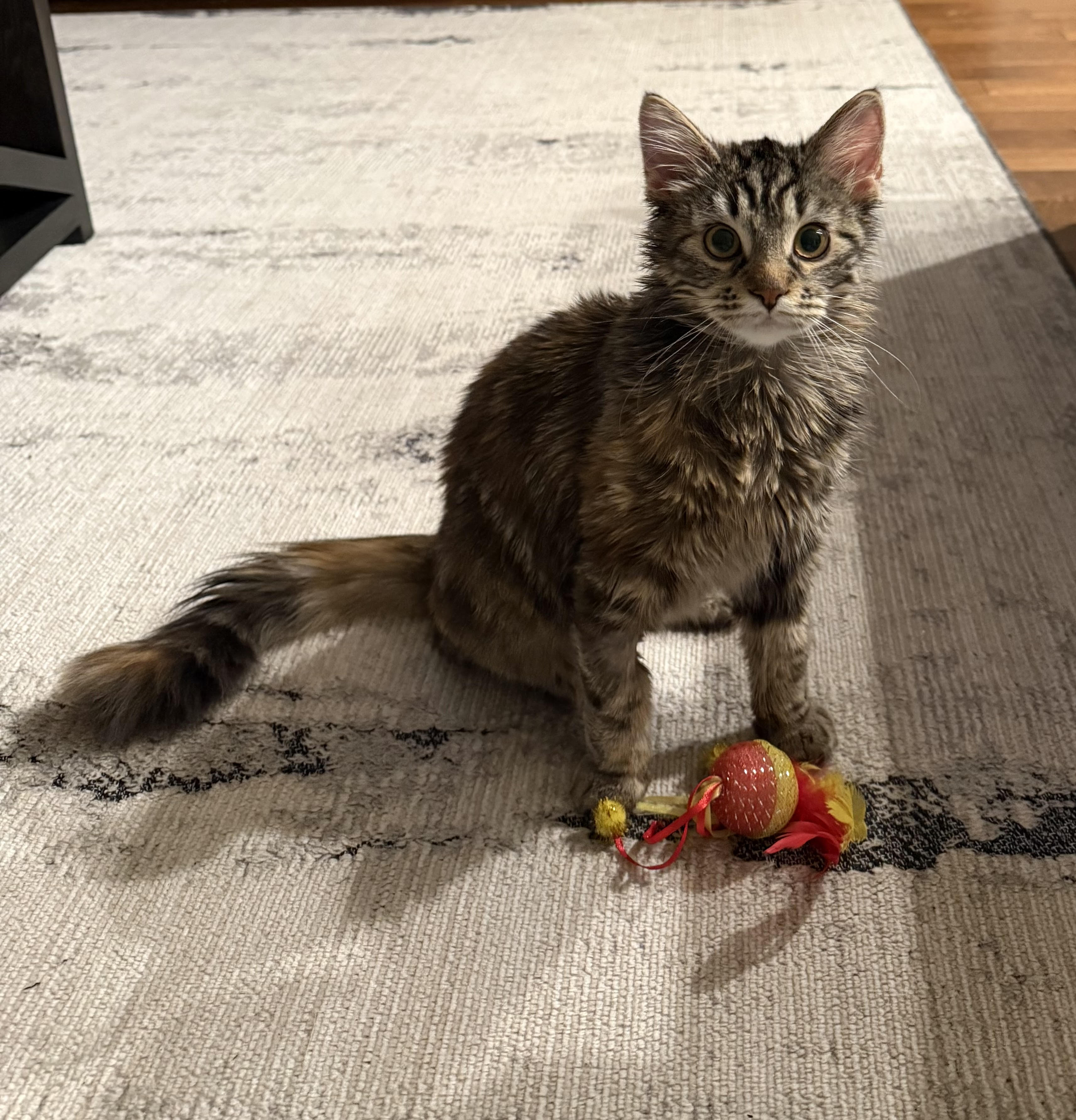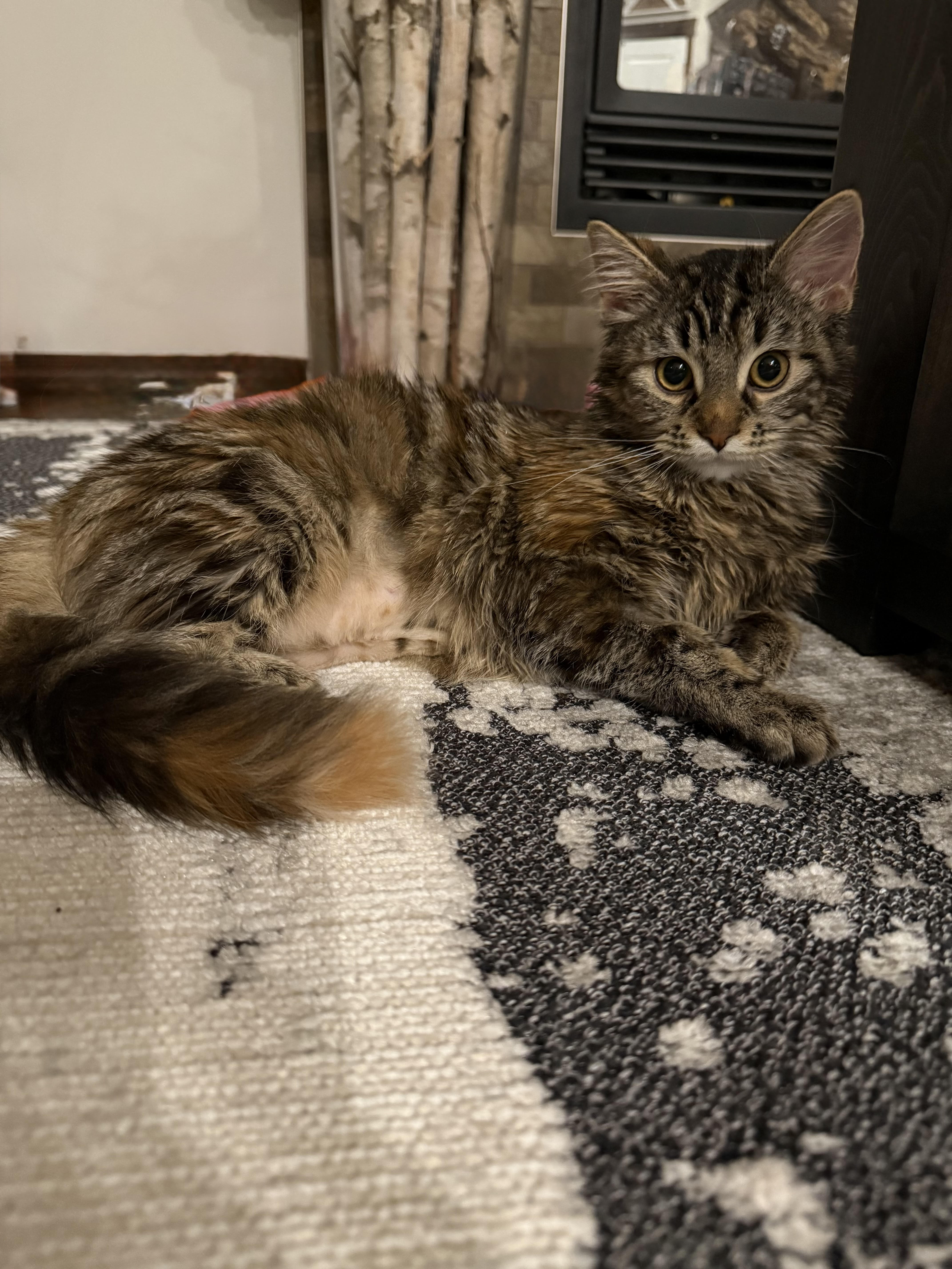 I am the friendliest kitty looking for my forever home that is ready to play with me and give me cuddles. I enjoy playing with all of foster kitty friends. My favorite thing to do is play with a wand with feathers on it. I also love to cuddle with my foster family and purr loud to show how much love I have to give.