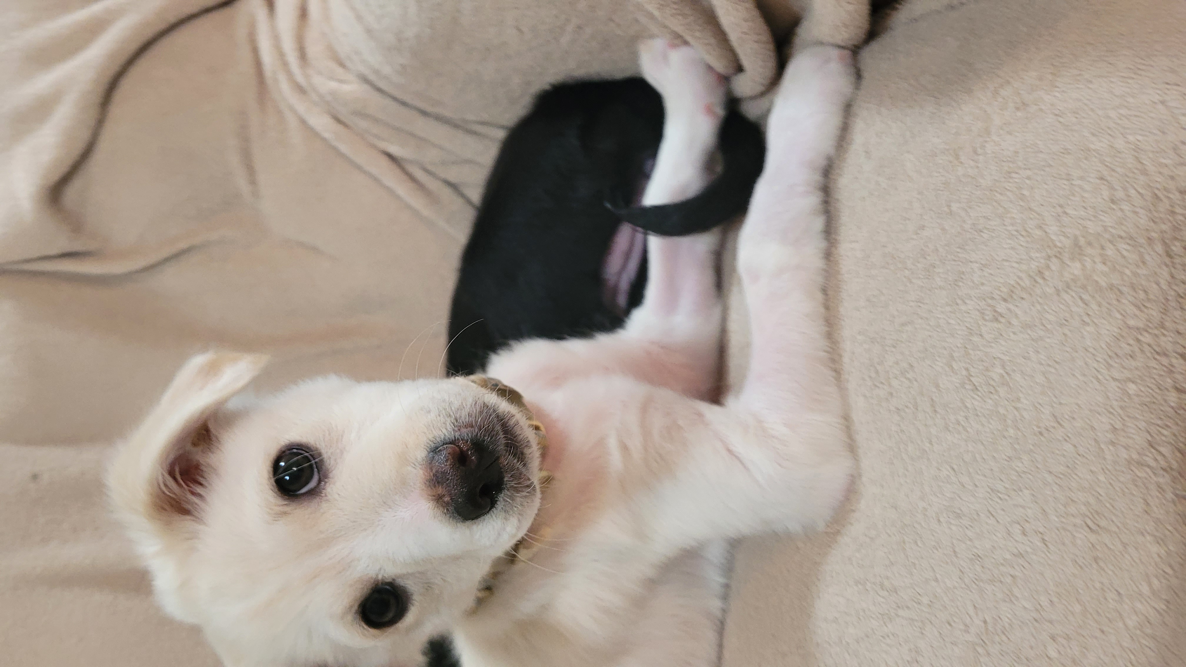 Brooks seldom barks and only when he is playing a fast and furious game of keep away with his littermate. He doesn’t nibble on your hands but he will jump and hold onto your leg when he feels you are leaving him a little too soon. He would enjoy the company of another dog; however he has remained calm when his littermate has been out of his sight for over an hour.