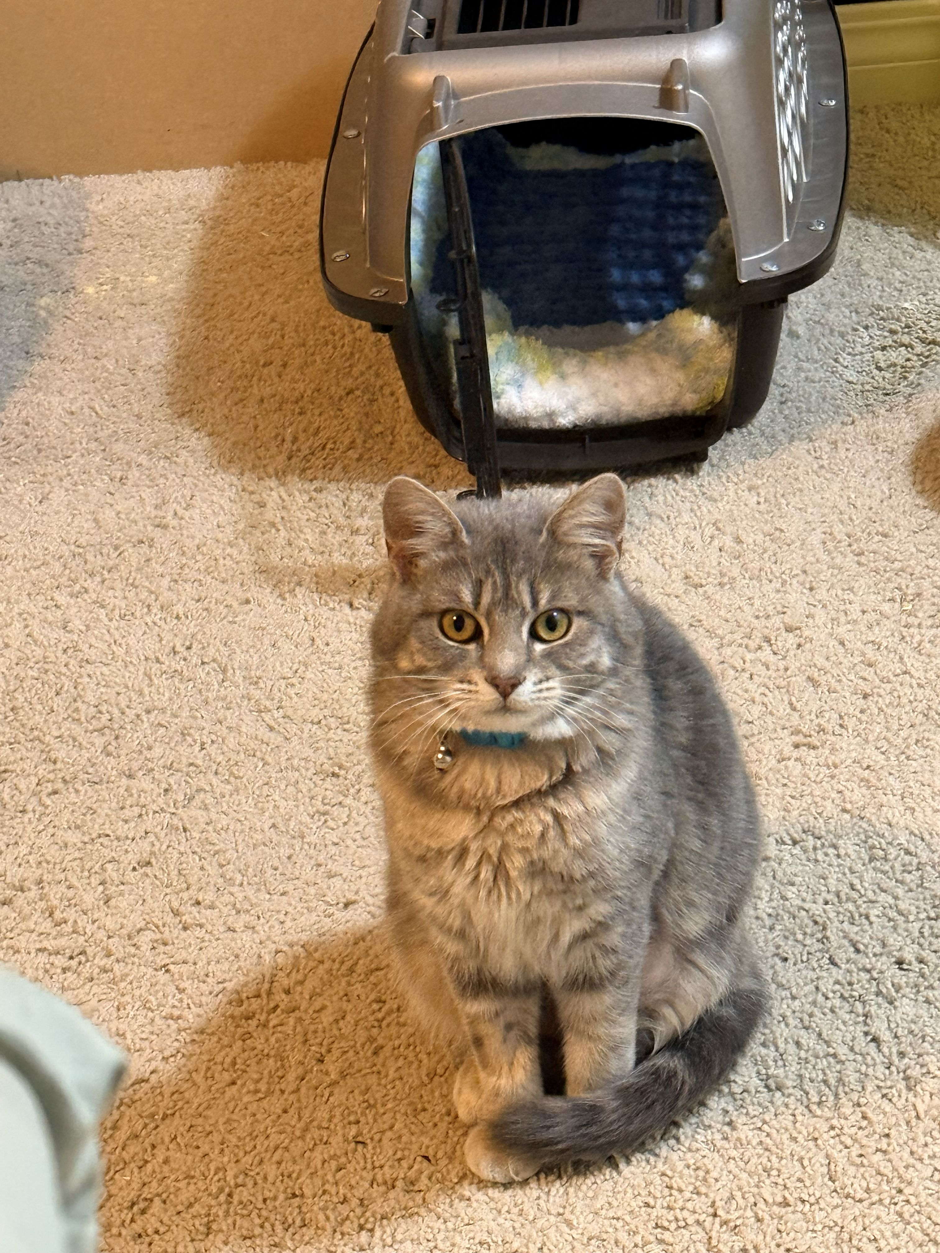 She was a dream to give medicine to after recovering from being spayed, so long as it was in her safe space! She does have a heart murmur which at this point does not require any further intervention.