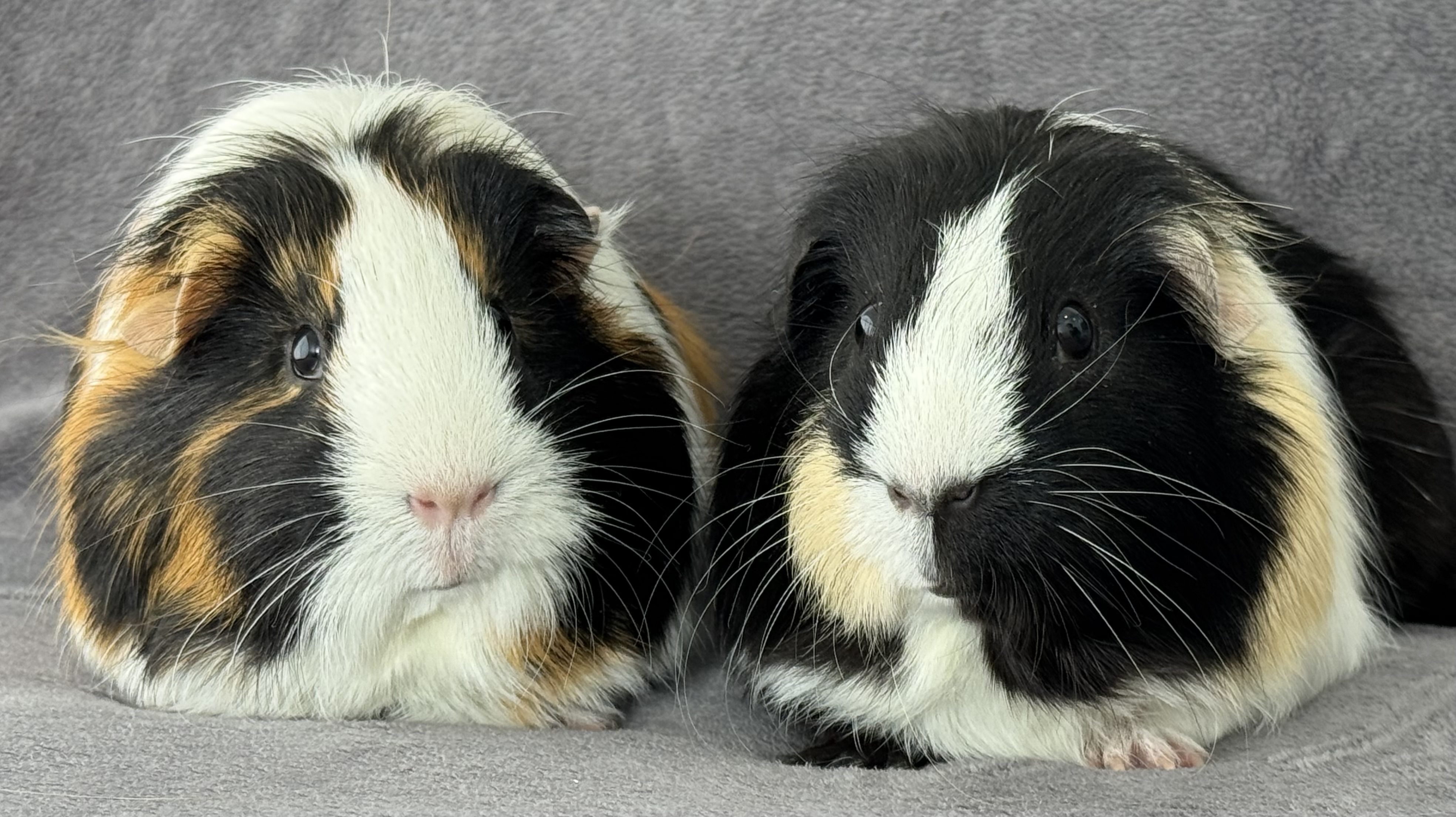 Move over, caramel popcorn – these two are the perfect flavour combination! Kiwi is fuzzy on the outside, sweet on the inside, and prefers a spacious enclosure where she an strut her pretty brown stripes like a runway model. Peanut’s fur glows with soft beige accents, and she is nutty about fresh veggies, treats and cozy hideys.