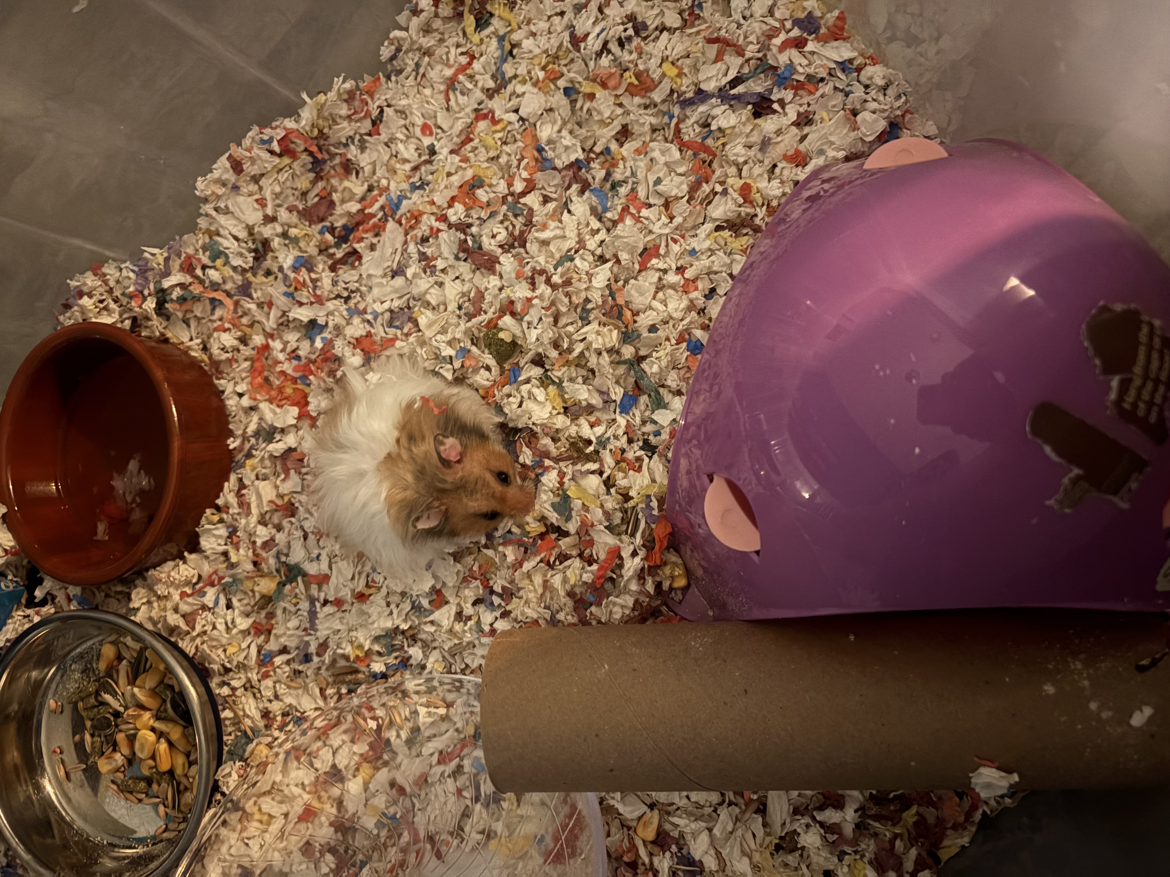 Kevin is new to the world – only seven-weeks-old! He is a tiny bit nervous and still learning that humans are safe, but he is already starting to come out of his shell. Kevin has long hair so he is a little ball of fluff and super cute! He is still pretty tiny since he is only 7 weeks old, so when he eats he sits in his food dish and it is adorable.