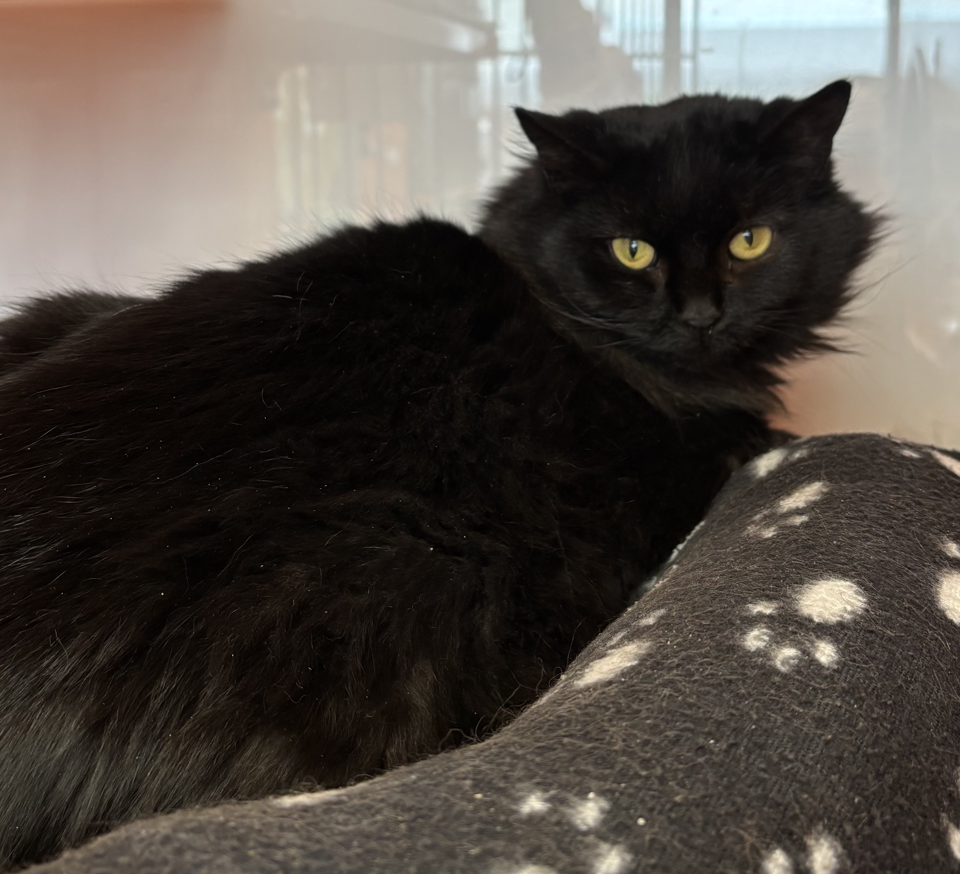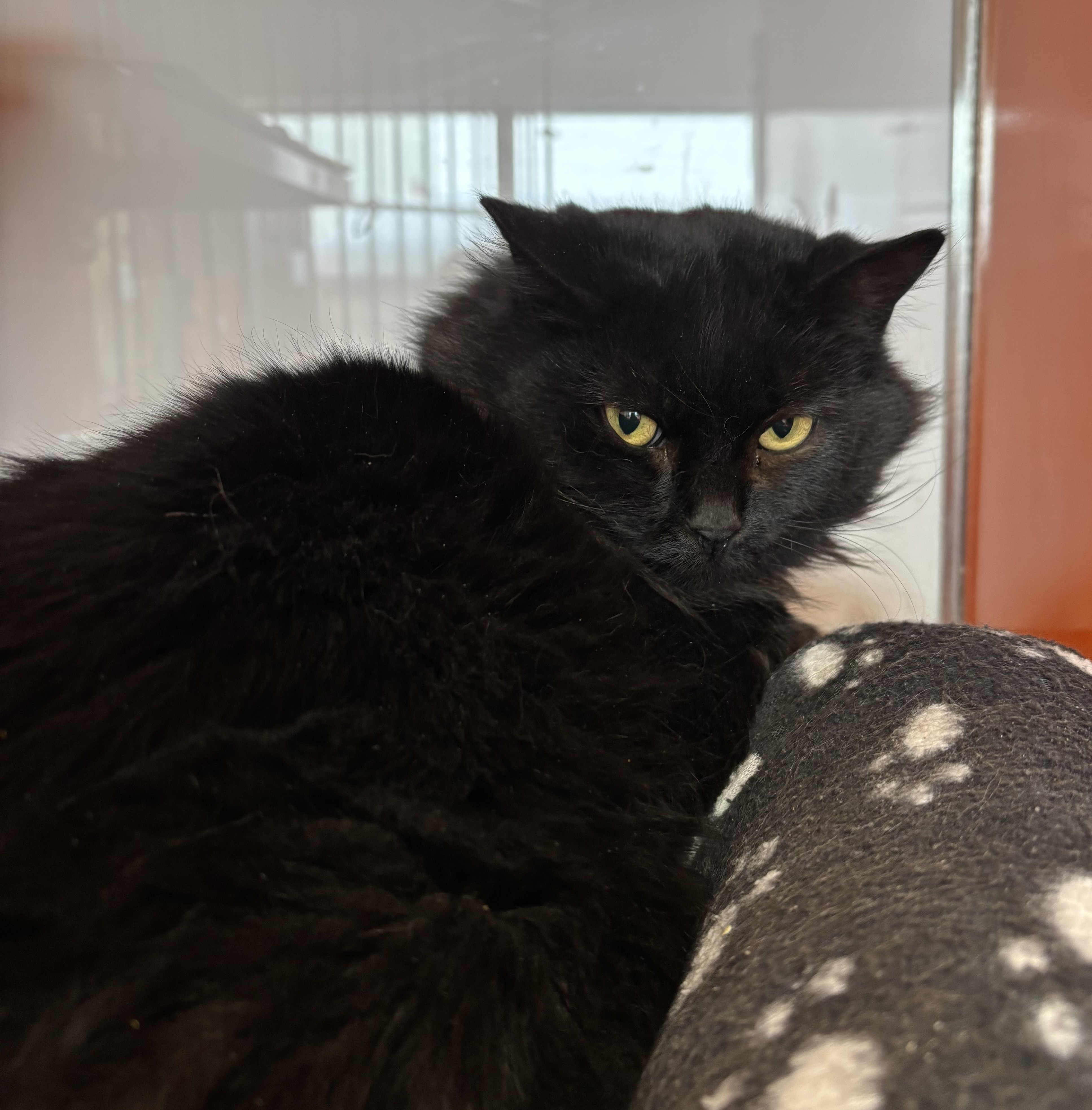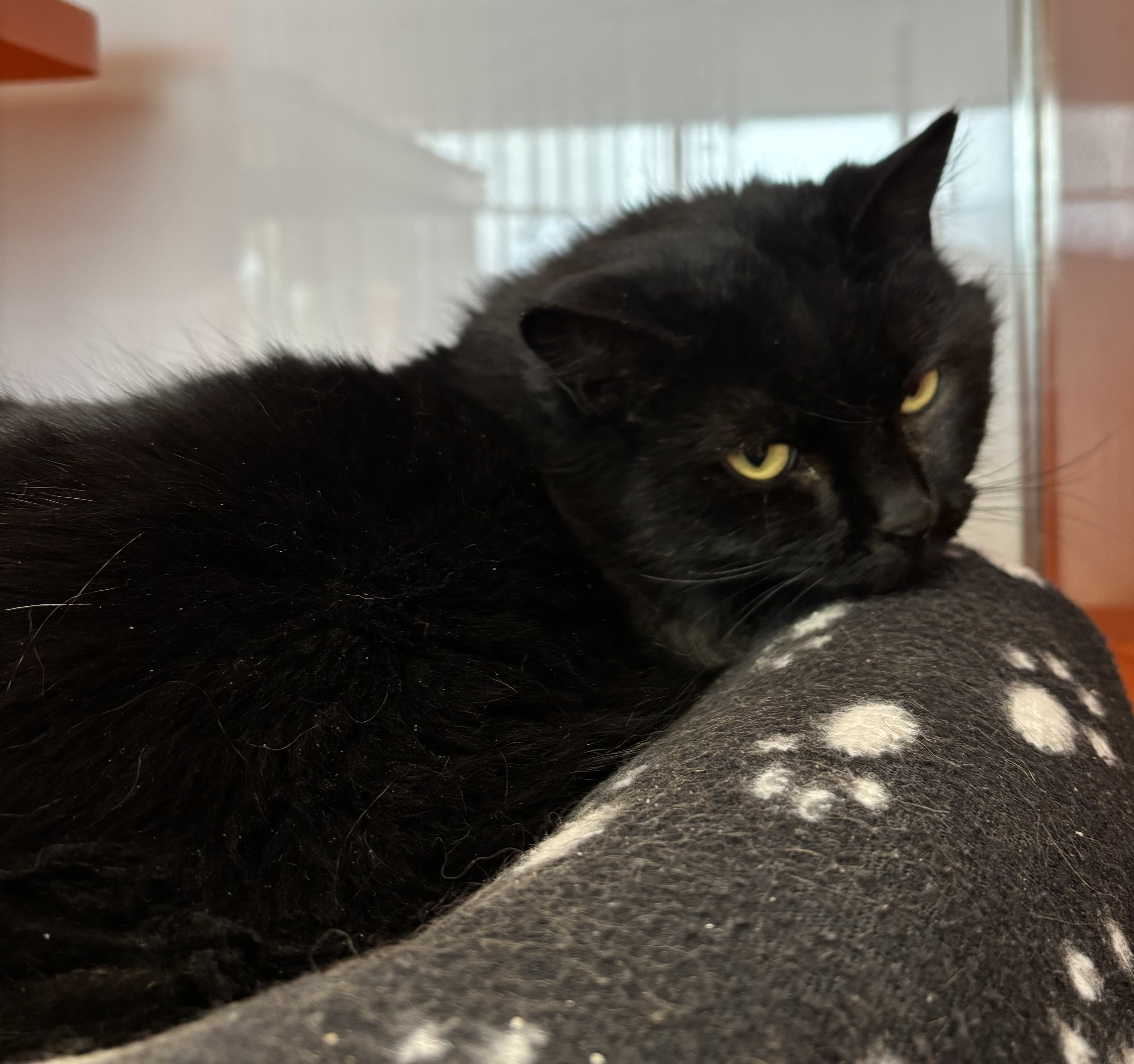 When she first arrived at the shelter, she preferred the security of her cubby, but with time she has started to relax a bit more, enjoying quiet moments on her cozy bed. Mosi is still a shy and nervous girl who needs a patient and loving approach. She would thrive in a calm, peaceful home where she can feel safe, build trust, and gradually show her affectionate side.
