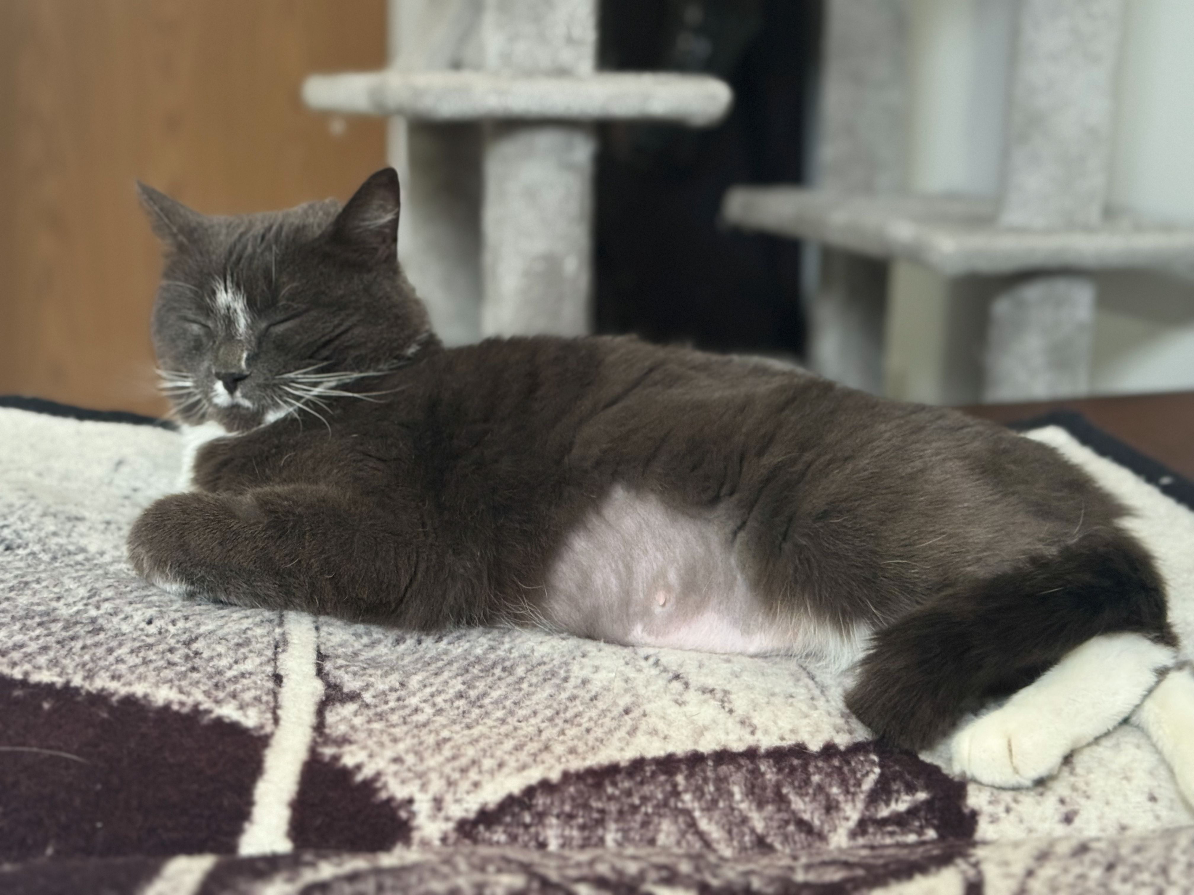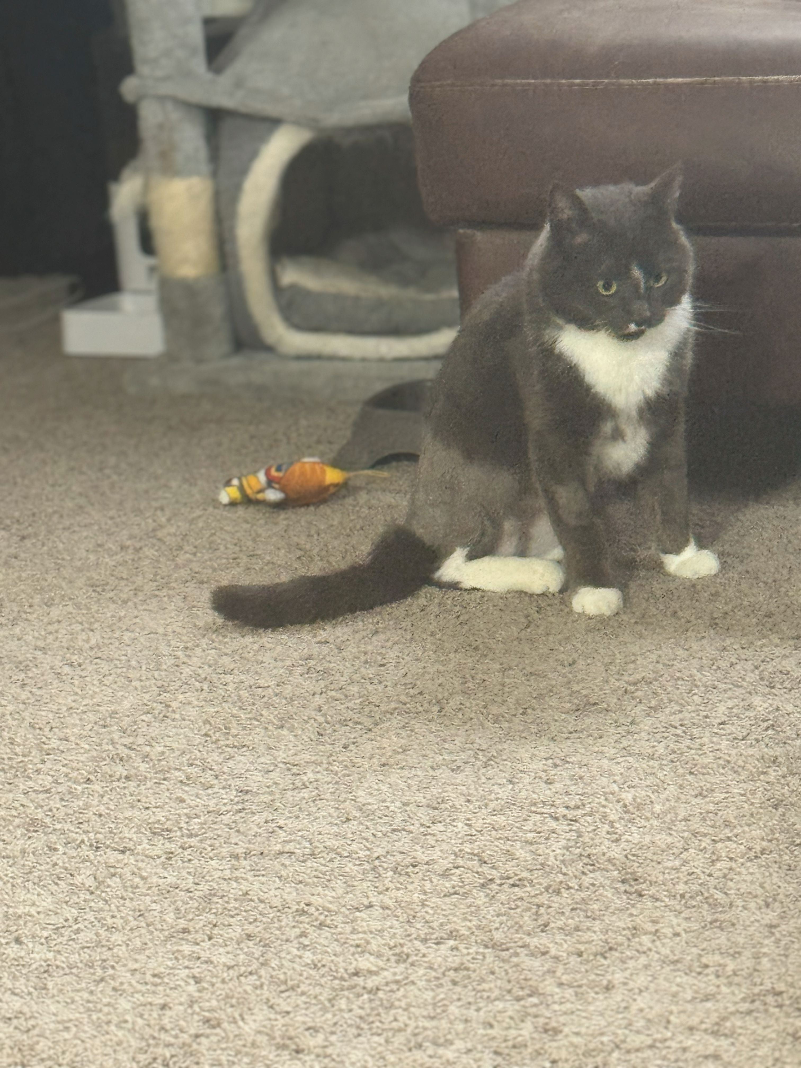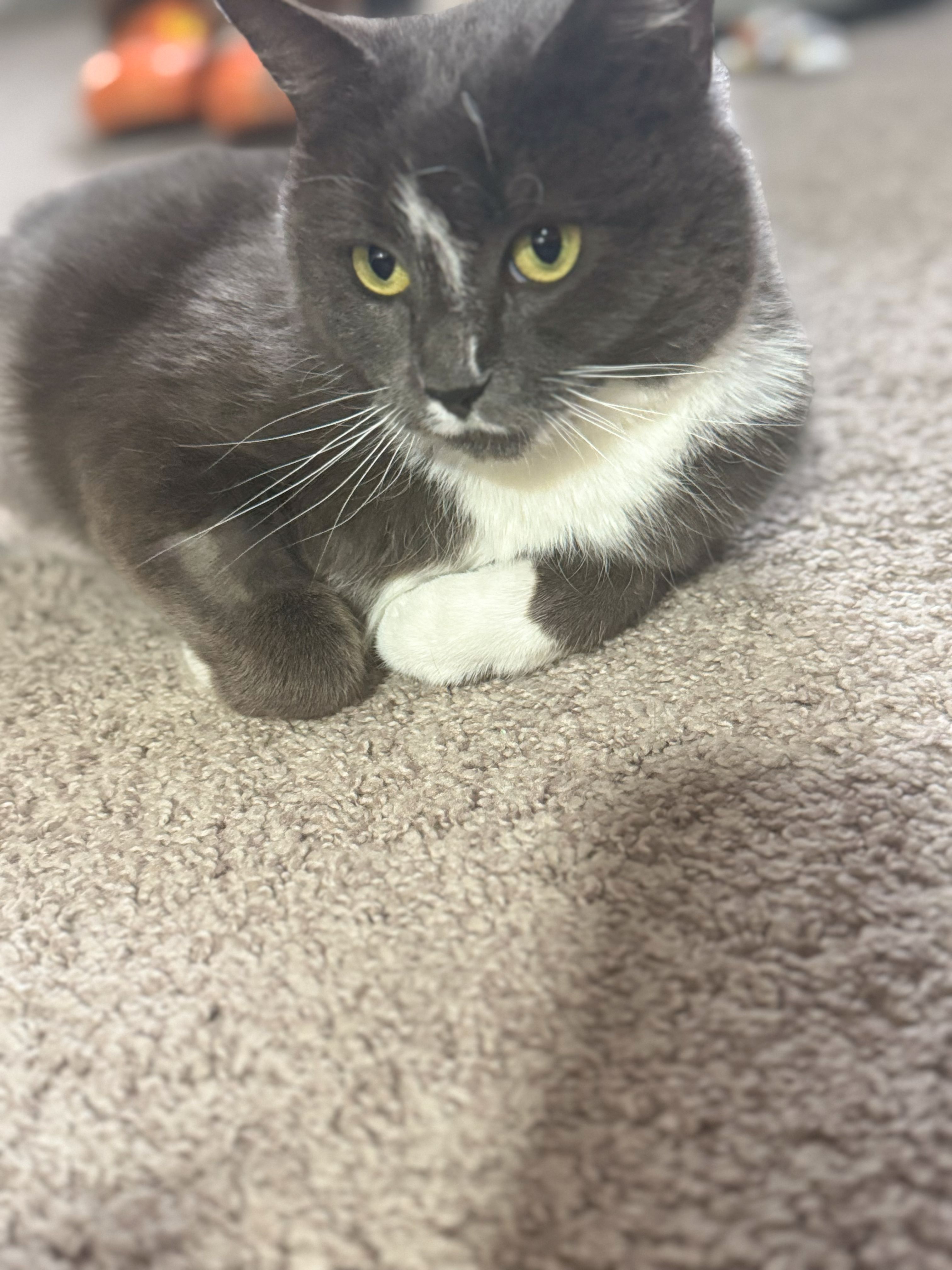 I can live with other older, calm cats if introductions are slow and respectful (you’ll get a guide — the humans are very organized). That said, I think I might truly shine as an only cat, where I can relax completely and not feel like I need to stay on guard. I’m very protective of my tiny 4-month-old foster sister during our supervised visits — it seems that even with amnesia, my heart remembers how to care. Dogs, though? No thank you. That’s one memory I don’t need to recover.