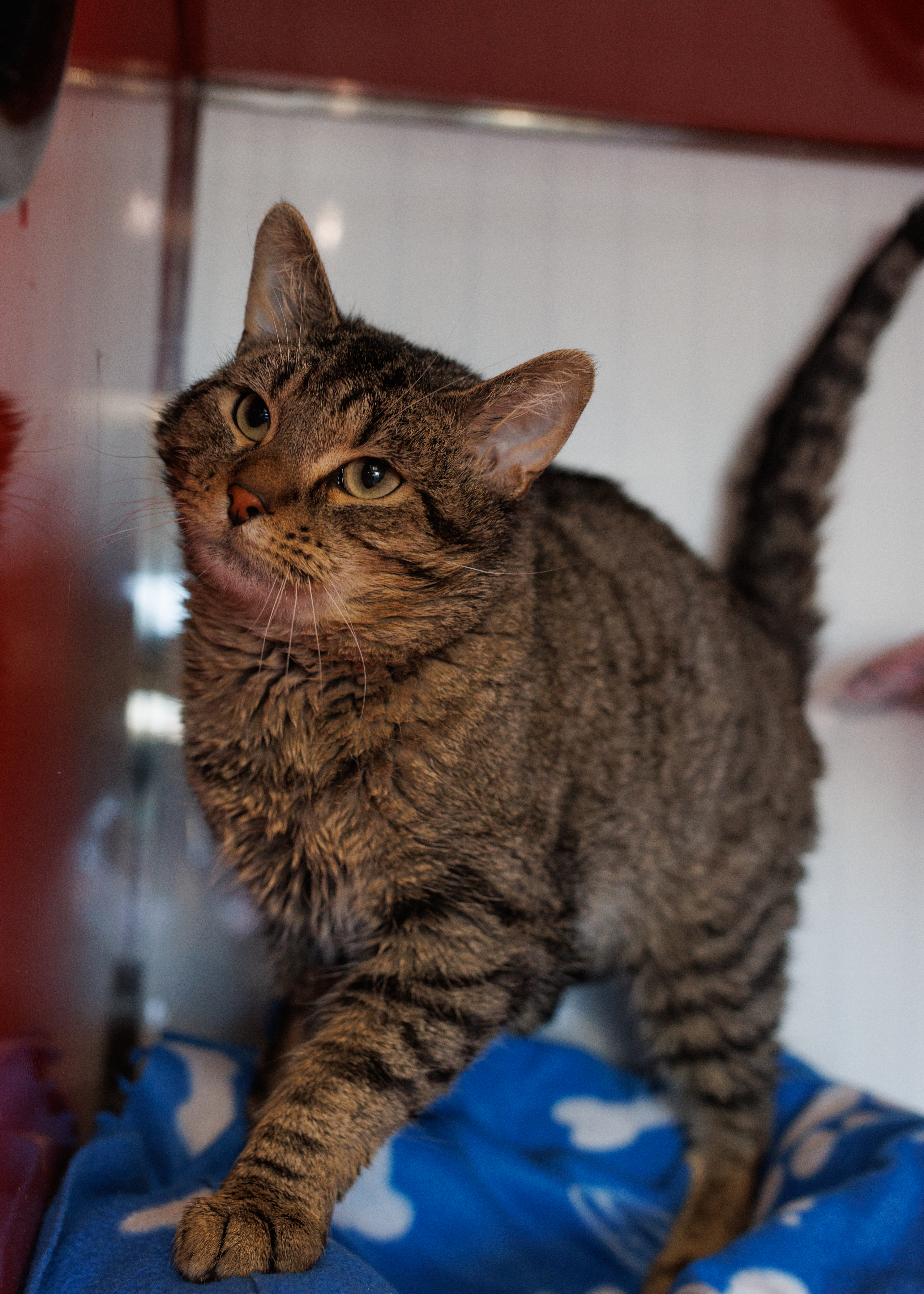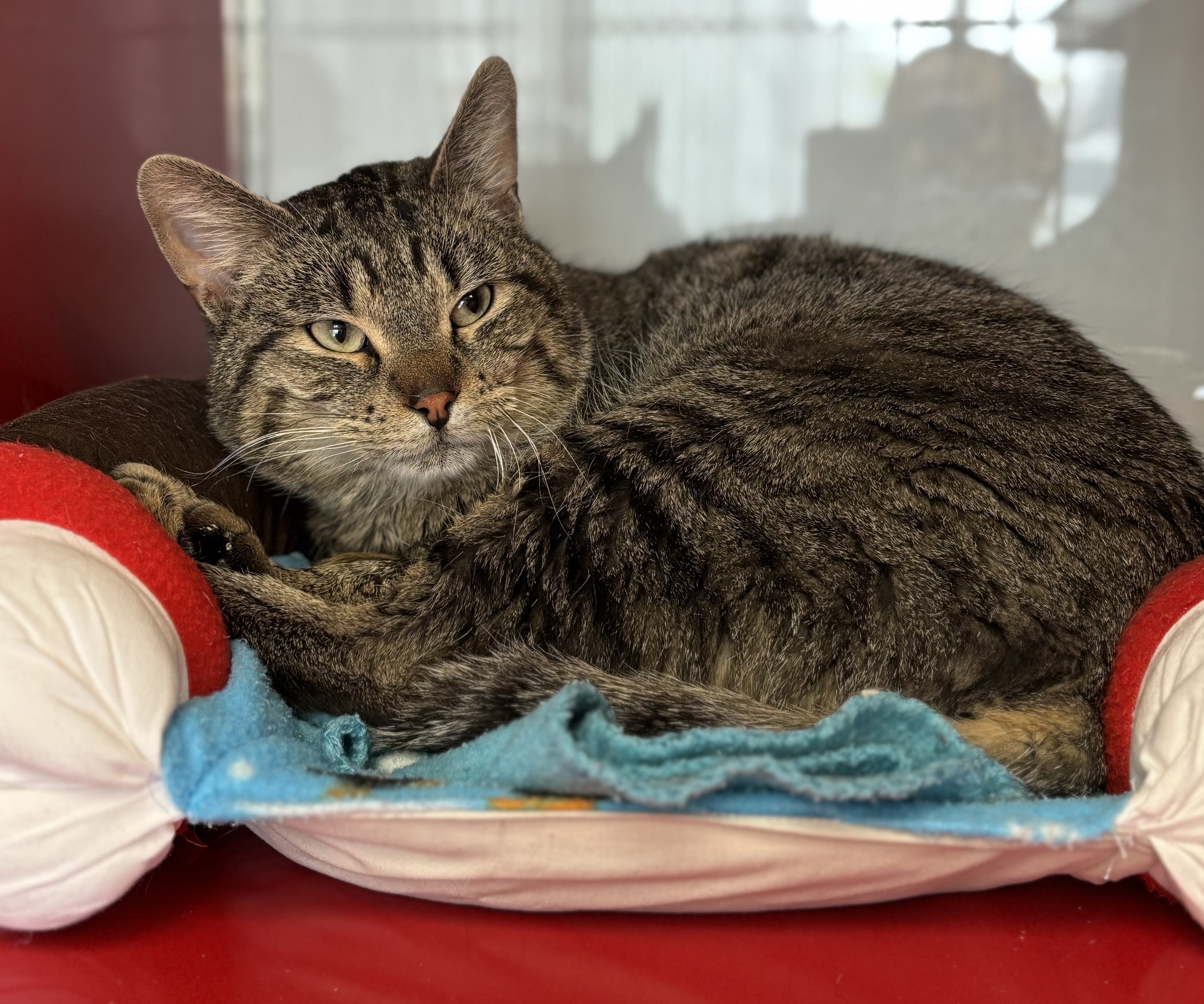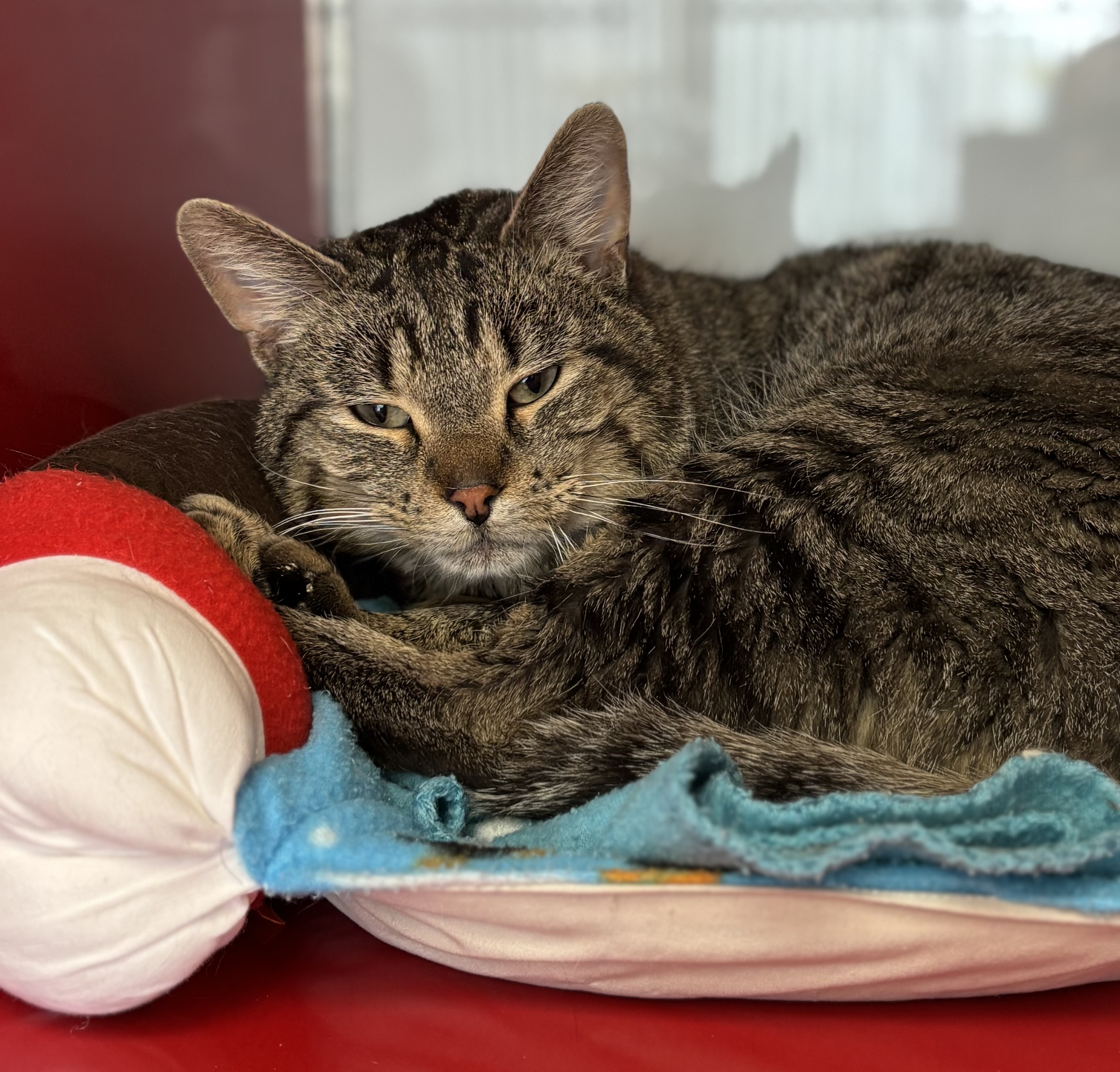 Kenzo is a sweet and gentle boy with a calm, affectionate nature. While he may start off a bit nervous, his curiosity helps him warm up quickly, and he’ll soon come over to say hello. He enjoys relaxing in cozy spots and quietly observing his surroundings.