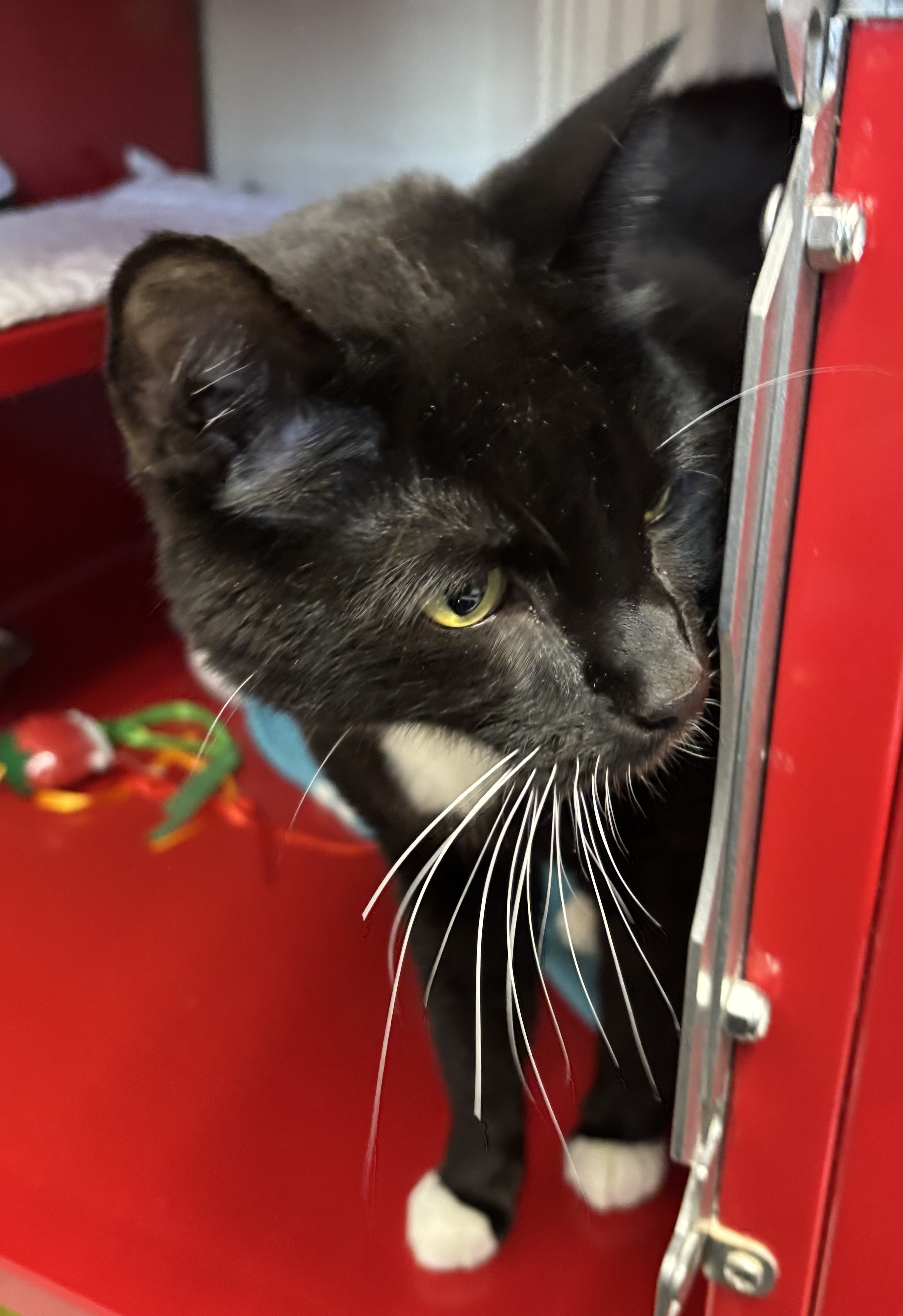 Coray is a thoughtful, sensitive boy who likes to take his time getting comfortable in new environments. He can be a bit nervous at first and appreciates having the space to decompress and build trust at his own pace—he’s simply a guy who knows what he likes! Once Coray feels safe and settled, his sweet nature shines through, and he enjoys pets, attention, and spending quiet time with his people.