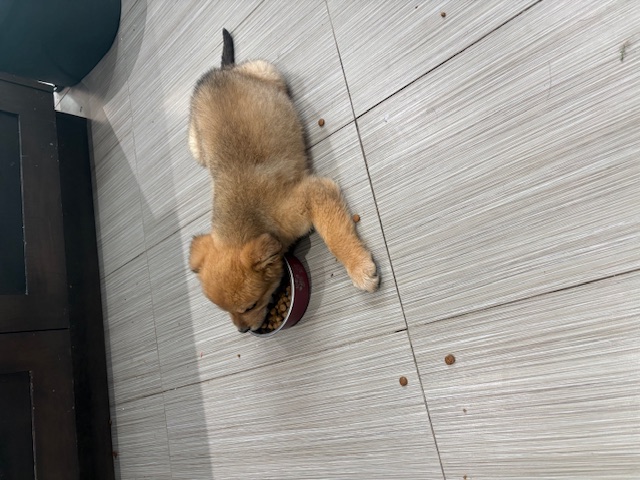 She is very smart and we are working on our manners and commands. She knows the sit command already. It helps that she’ll do ANYTHING for a treat. She loves to play of course. Her favorite is tug. She is happy to play with any toy available though. She definitely will love enrichment games, she’ll need them to keep that brain occupied.