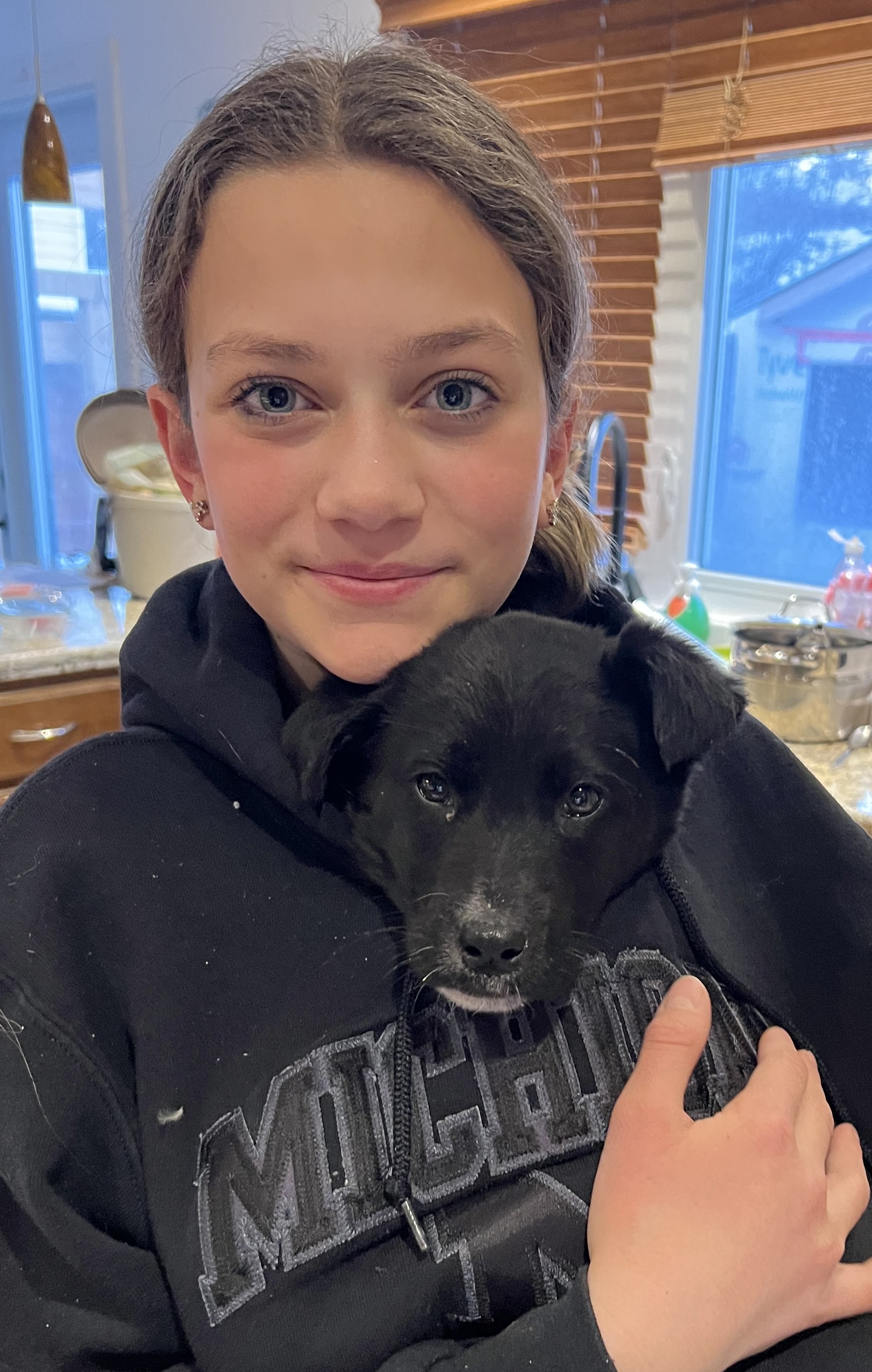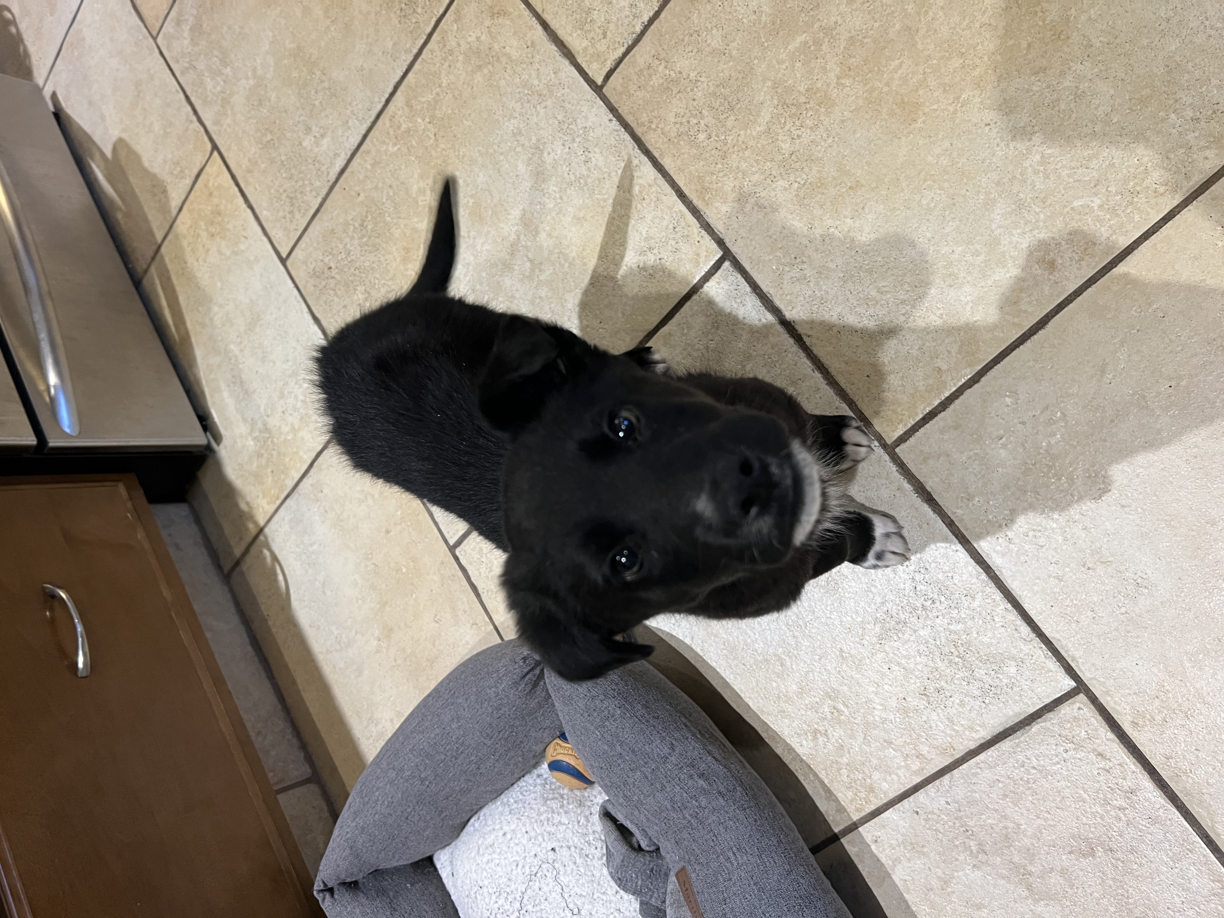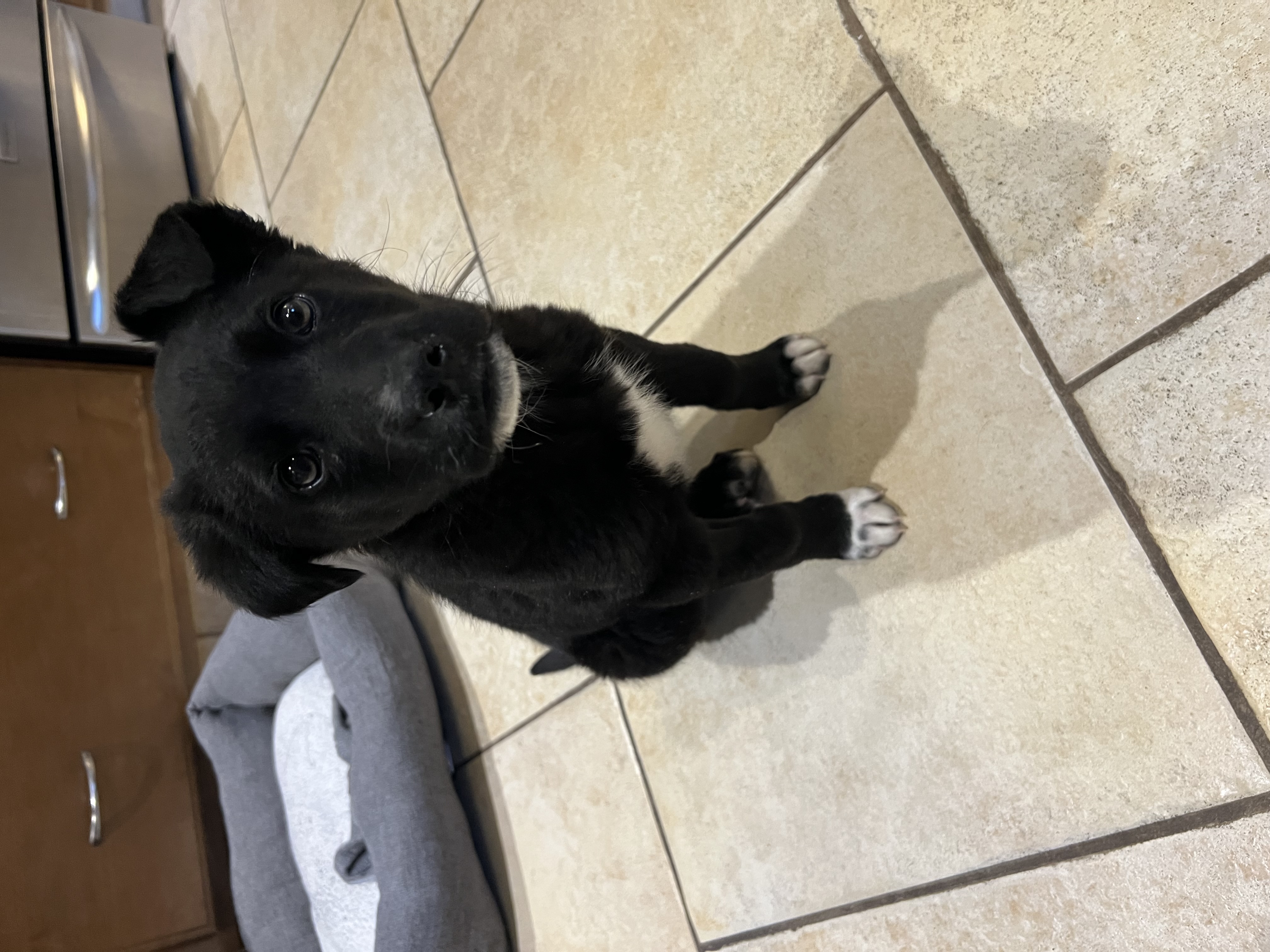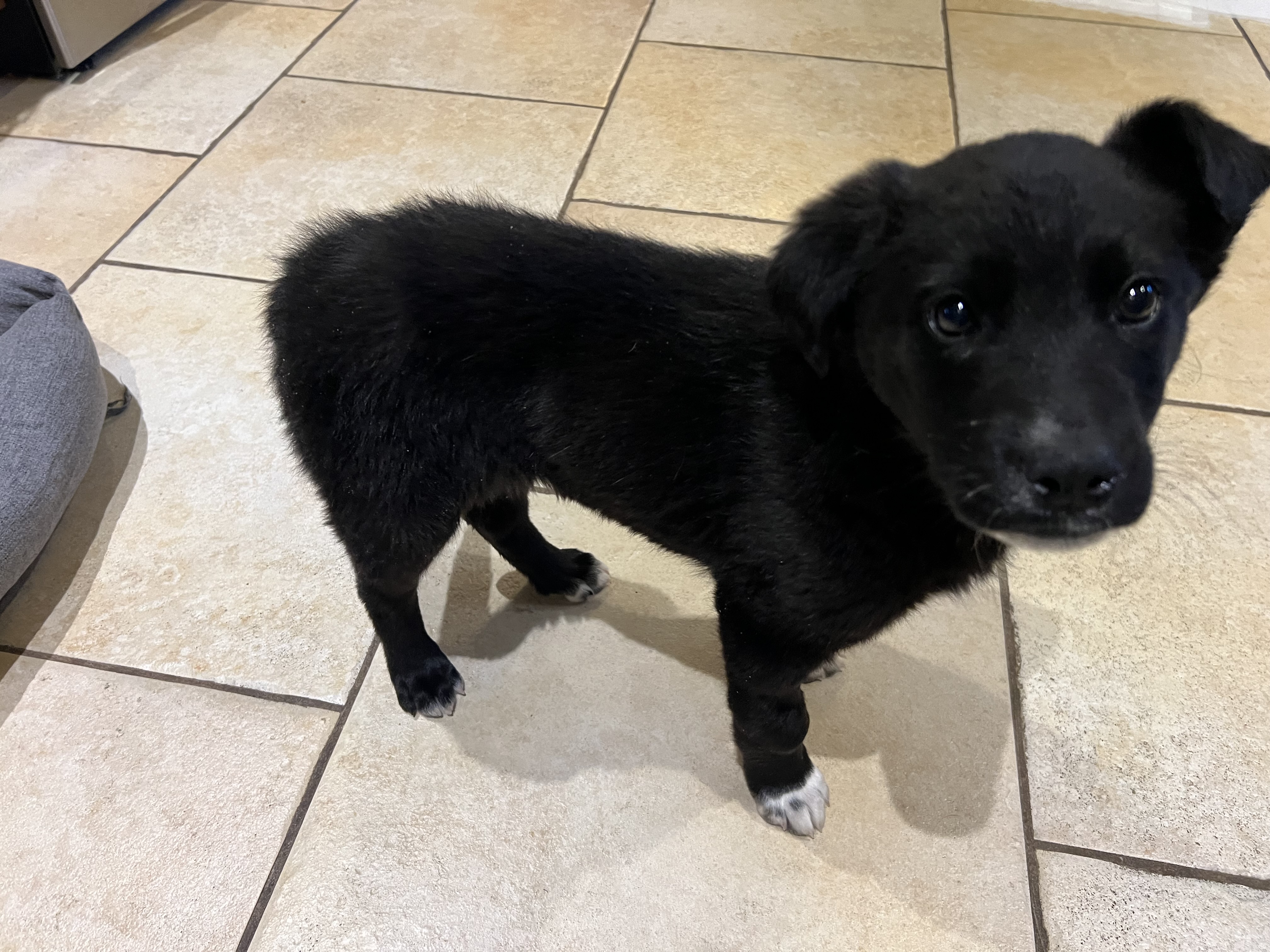 Molly loves people and cuddles. She is a very curious and playful soul and is starting to find her voice when playing. As with puppies, she will require some reinforcement in the areas of potty training, crate training, leash manners and reducing her mouthing and puppy chewing.
