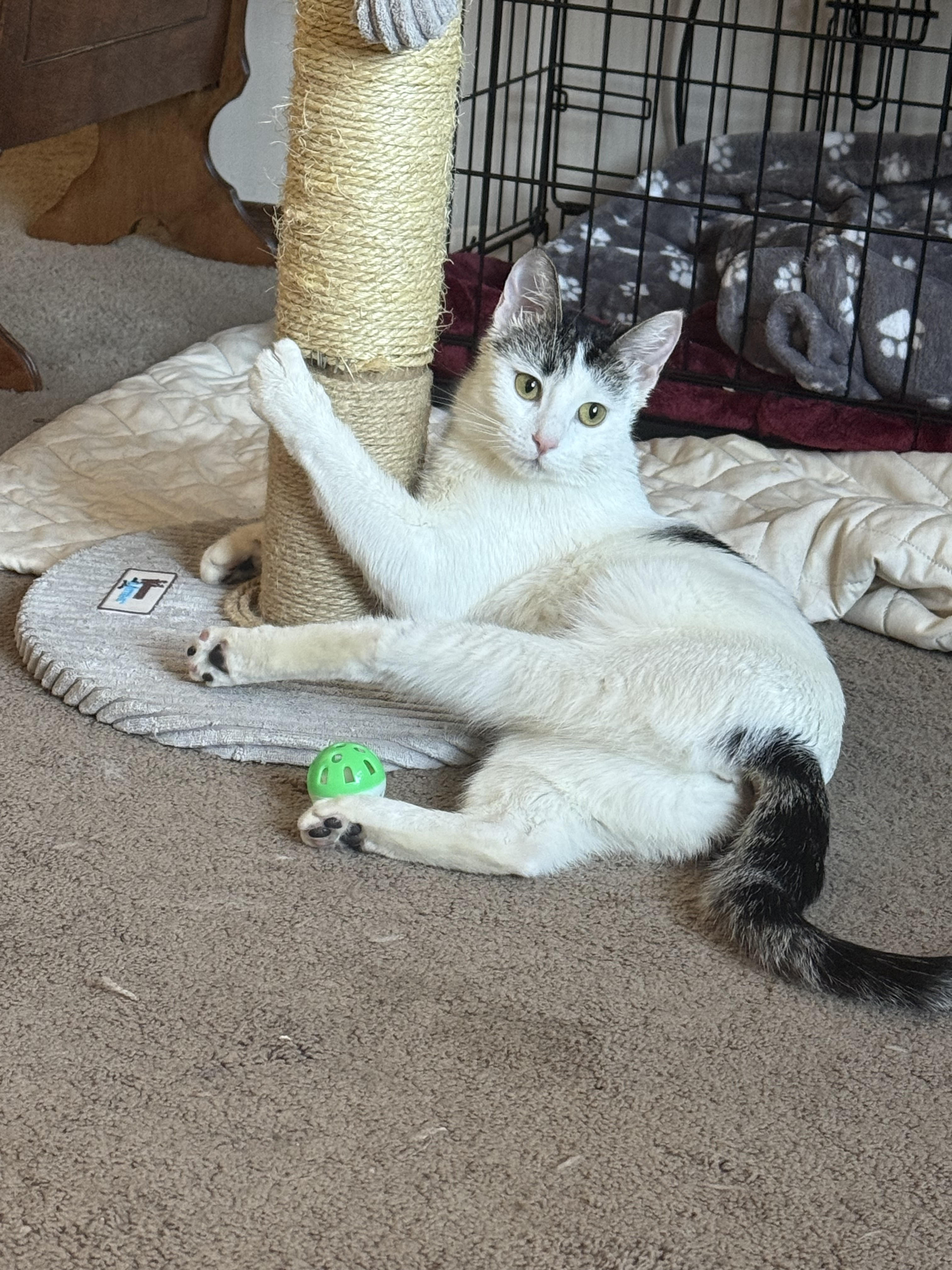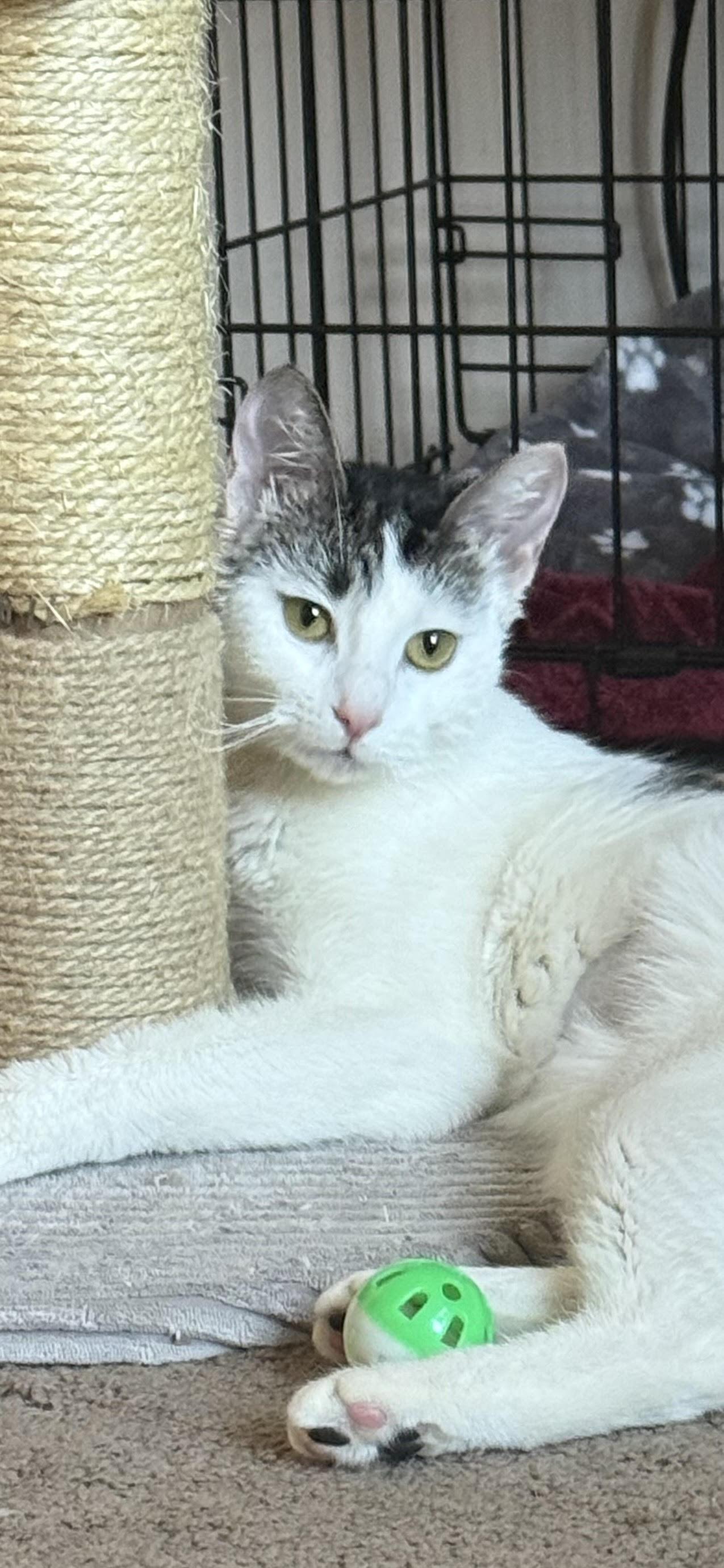 Bicotti is a joyful little soul with a heart full of love and a playful spirit to match. She adores people, gets along wonderfully with other animals, and truly thrives on companionship. Whether she’s romping around with her foster siblings or pouncing on her favorite toys (which, to Bicotti, is every toy!), she brings happiness wherever she goes.