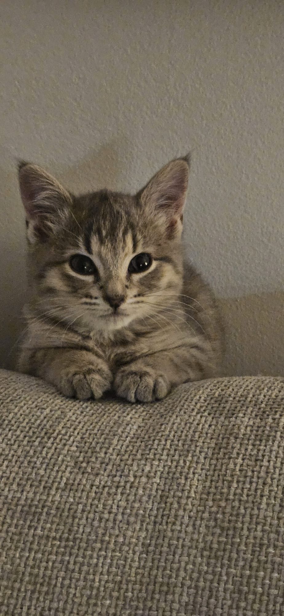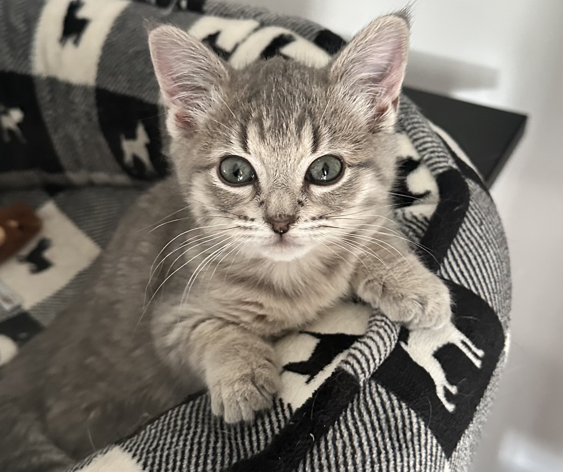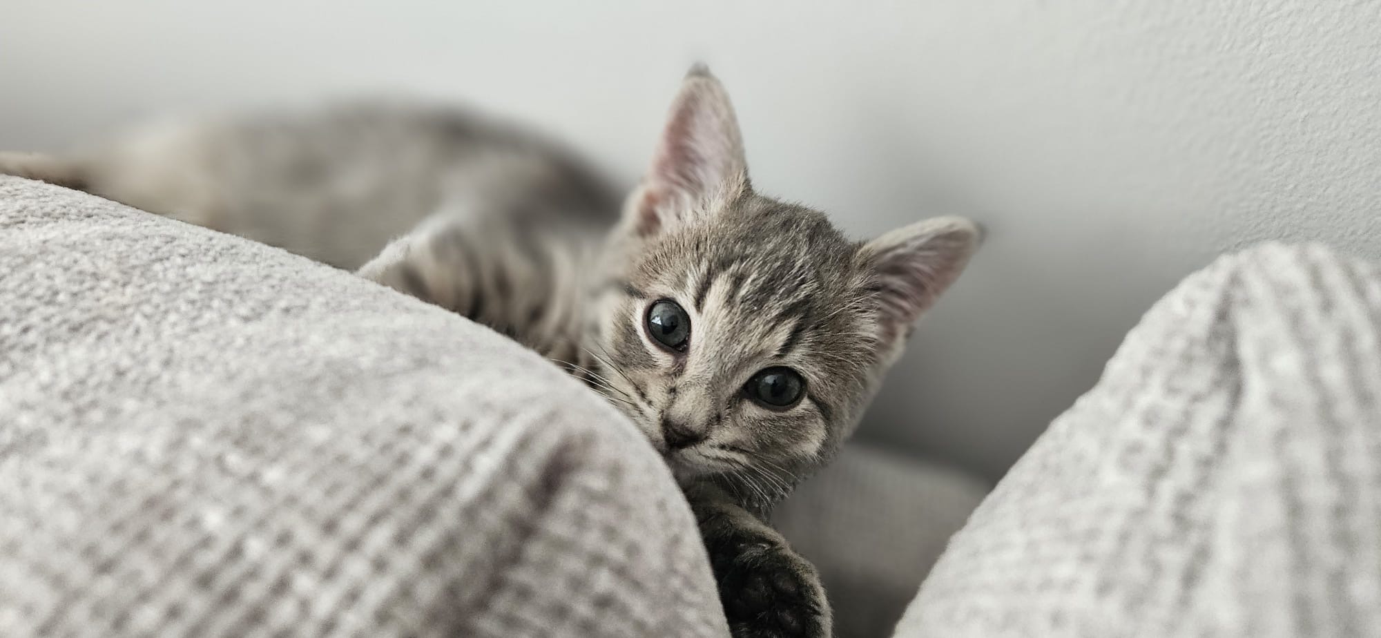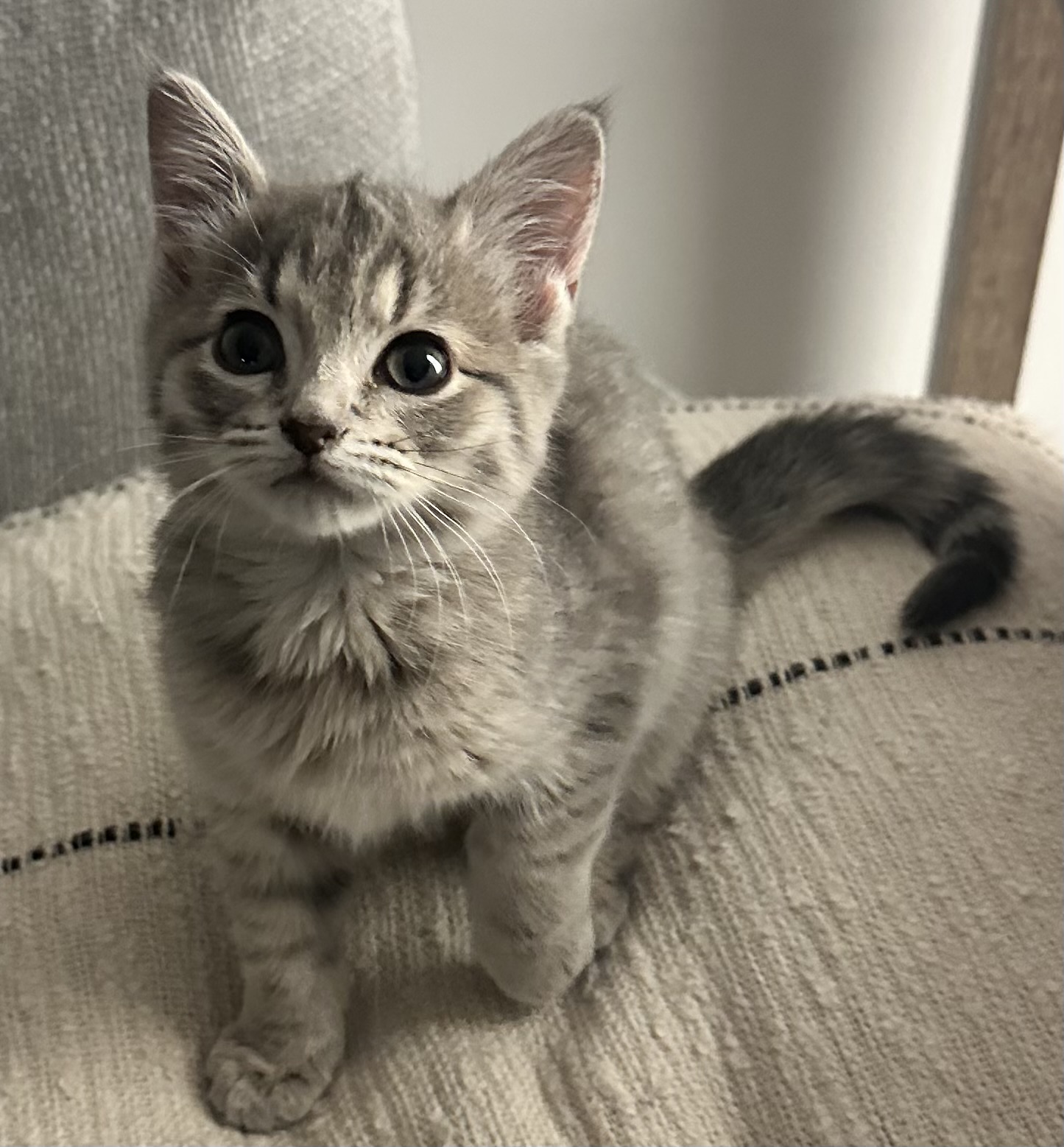 I’m a cheerful little grey tabby with a big heart and an even bigger curiosity for life. I love meeting new people, and I’m not shy at all, so I think I’d be a great match for families, including ones with gentle kids who know how to treat a kitten kindly.