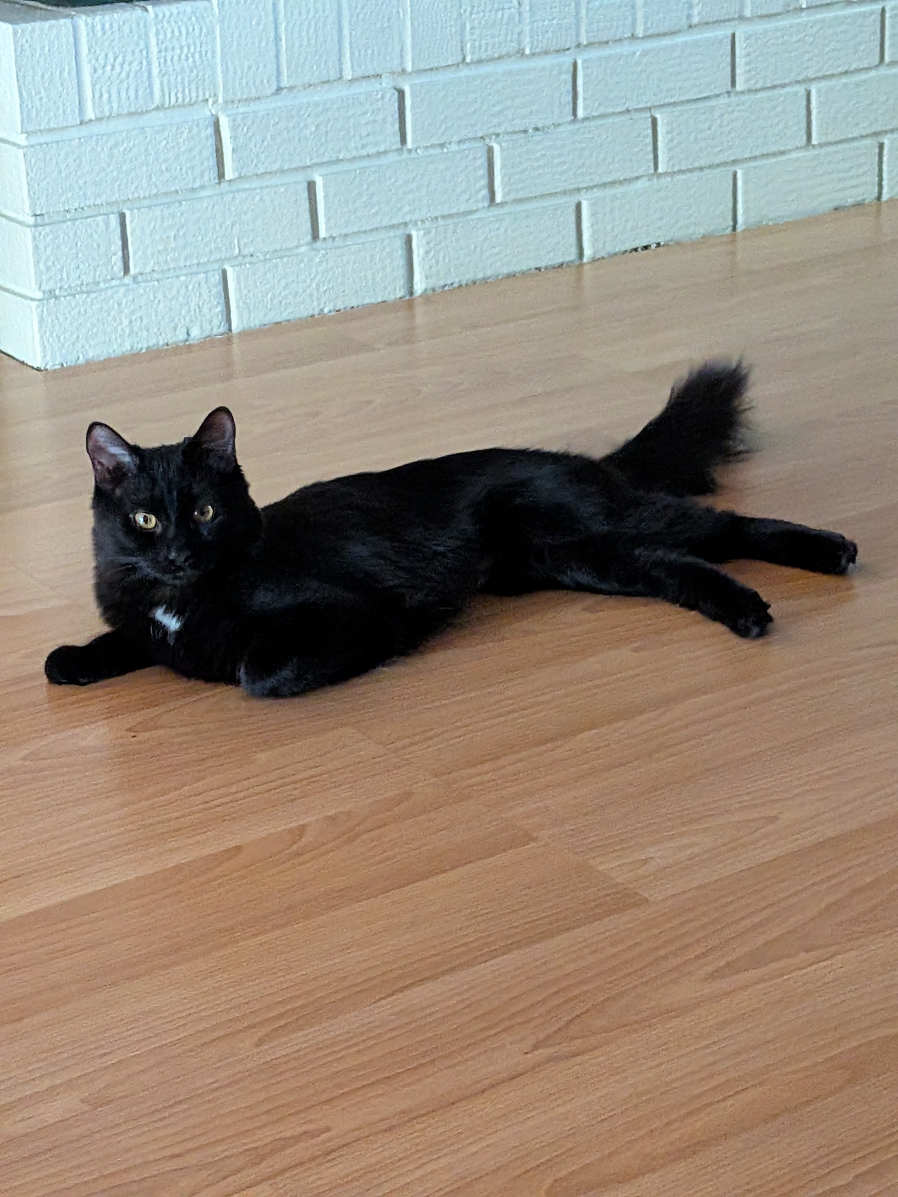 Spritz loves to play, usually by herself, but can get very excited by a laser pointer! She also loves to cuddle and can’t get enough pets.  Spritz has very nice manners and only occasionally needs a reminder to stay off the counter or table.