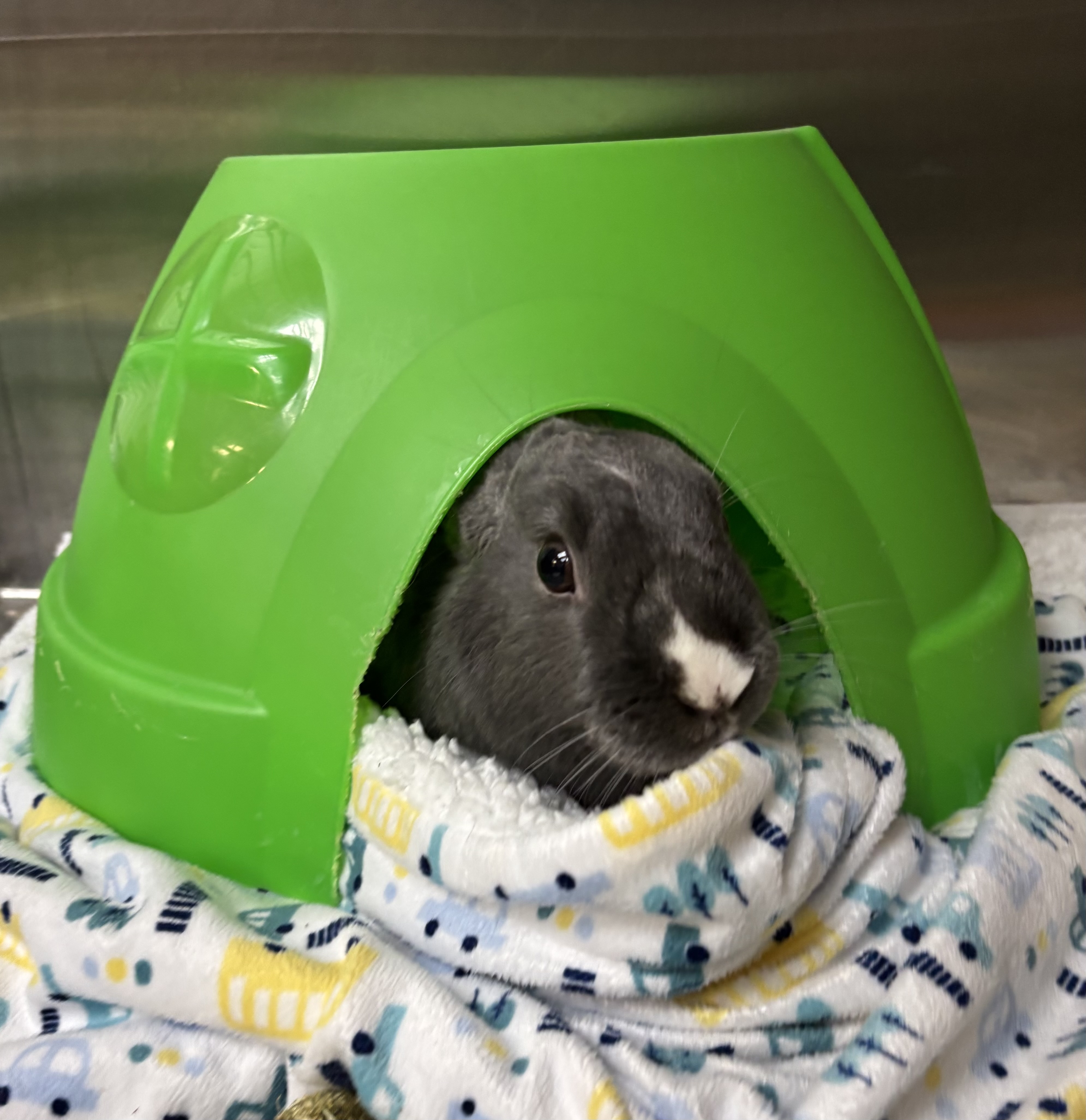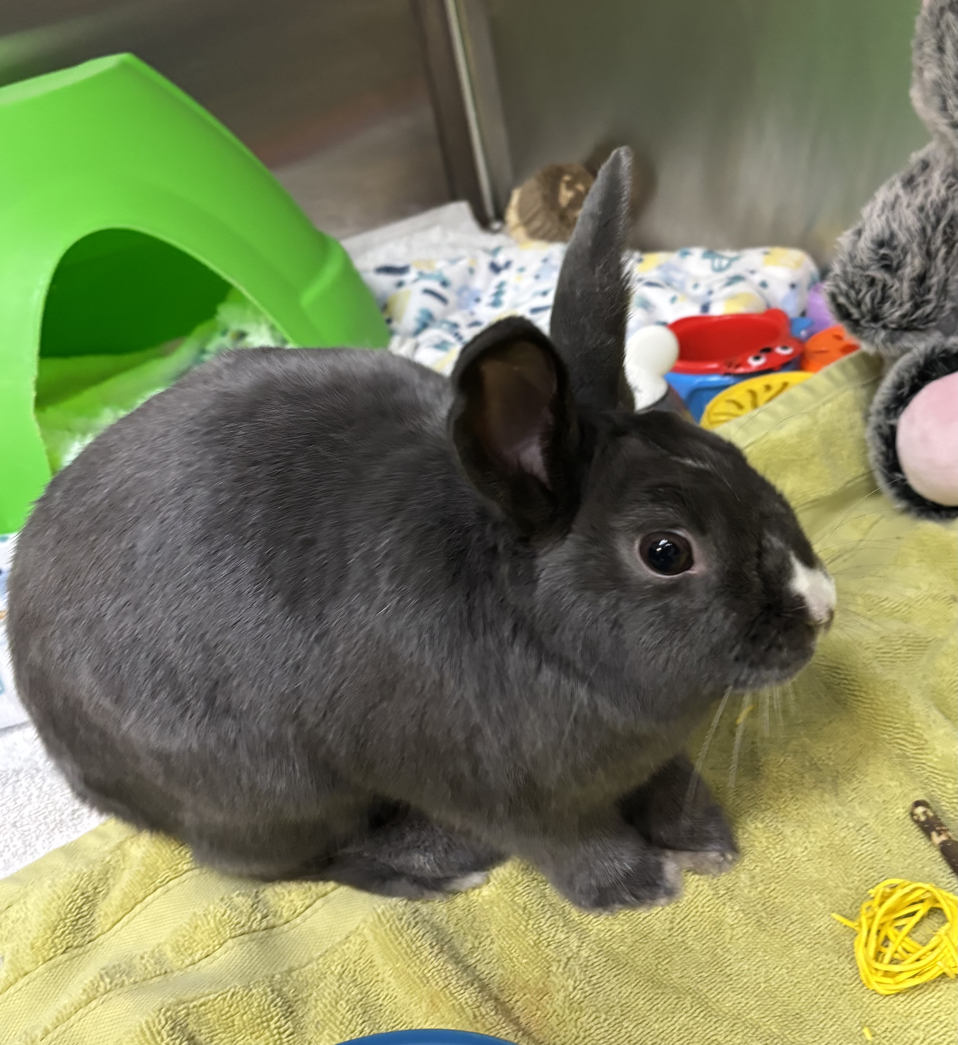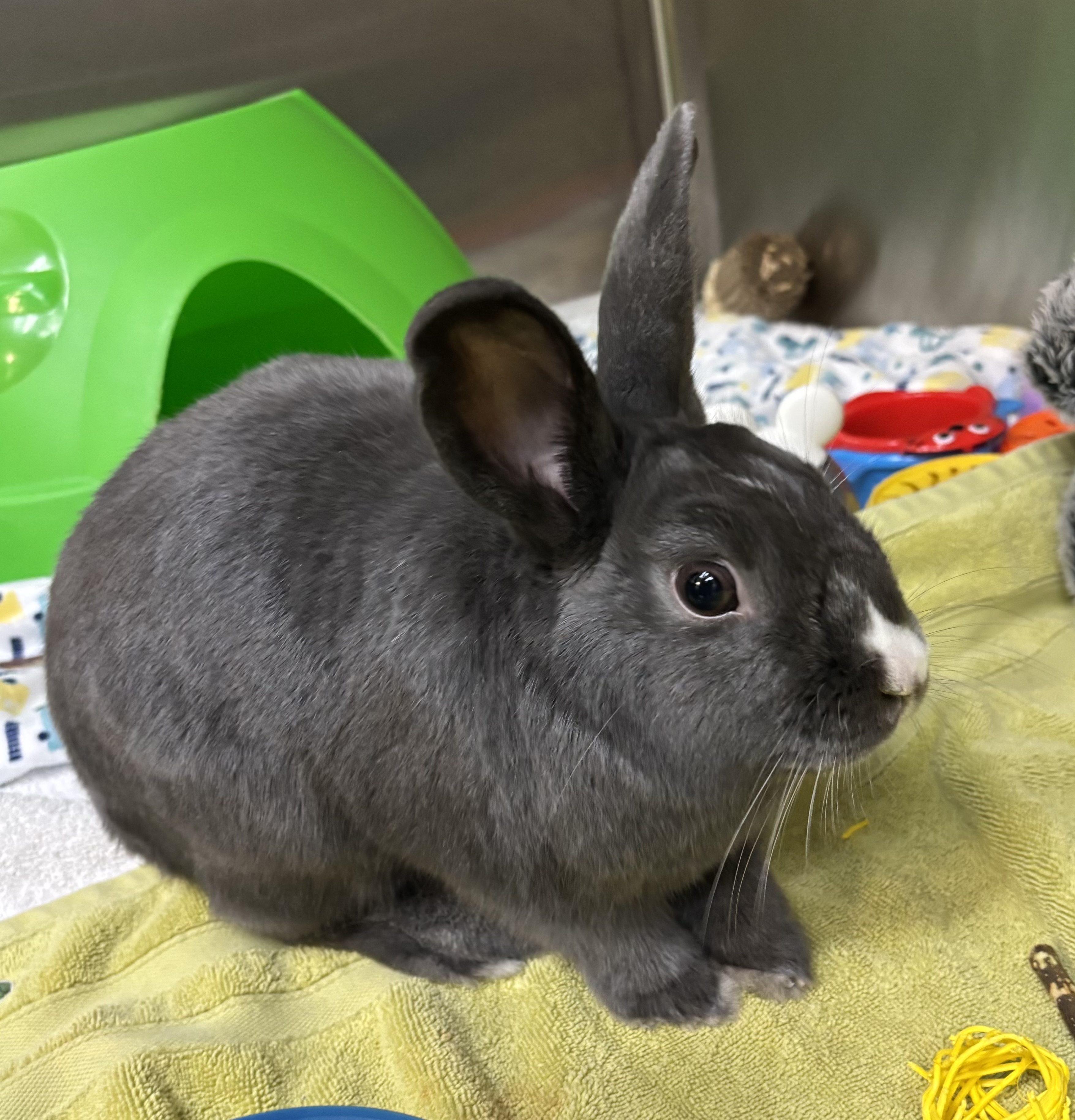 Whether he’s exploring every corner during free-roam time or politely requesting snacks, Melvin fills a room with warmth. Fresh hay and leafy greens are his love language – the surest way to win his trust and see his hoppy side!