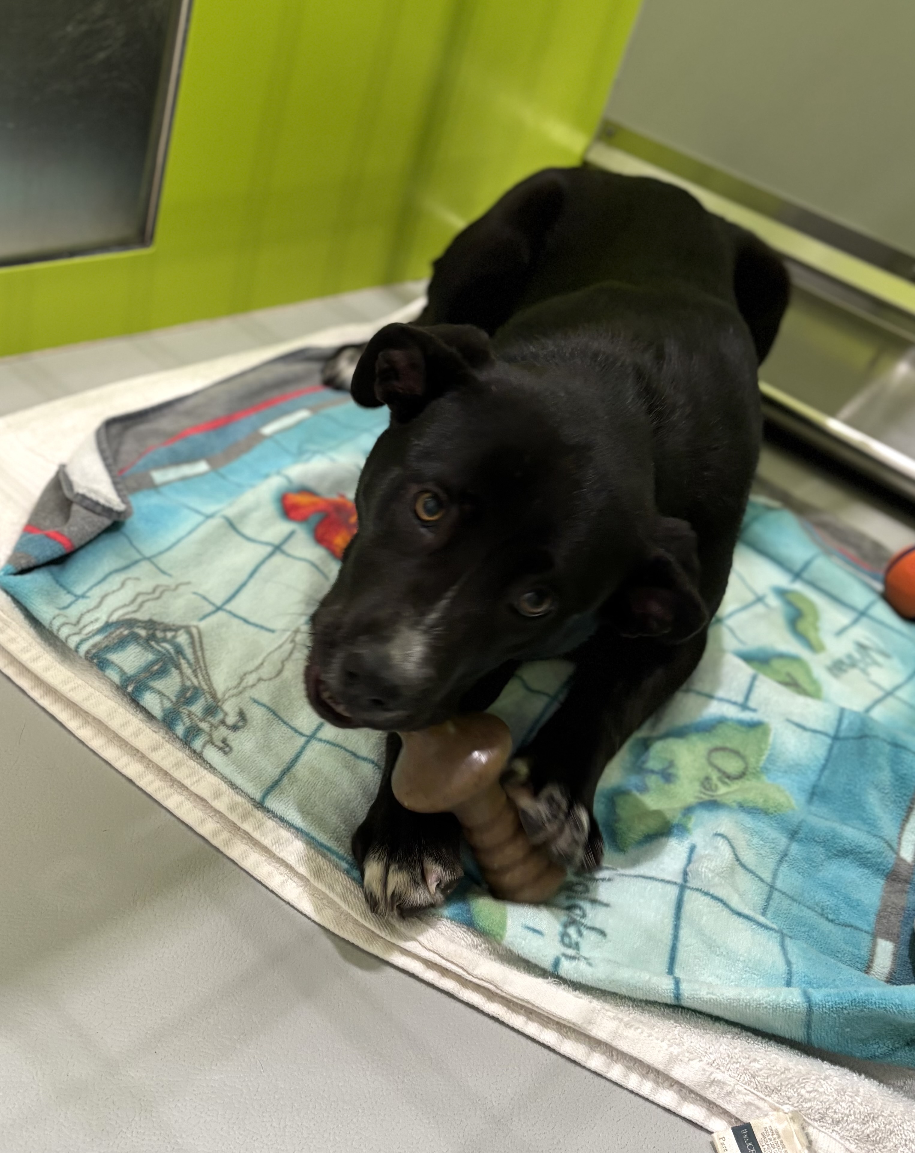 One thing Teagan makes very clear is her love for toys! She absolutely adores them and would thrive in a home that can provide plenty of toys to keep her mind engaged and her mouth busy in appropriate ways. With lots of adolescent energy, Teagan is best suited for an active home that enjoys playtime, enrichment, and daily activities to help her burn off energy in healthy, positive ways. Teagan already knows “sit” and is very treat motivated, which makes ongoing training both fun and rewarding. With consistency and positive reinforcement, she is eager to learn and will continue to build on her skills.