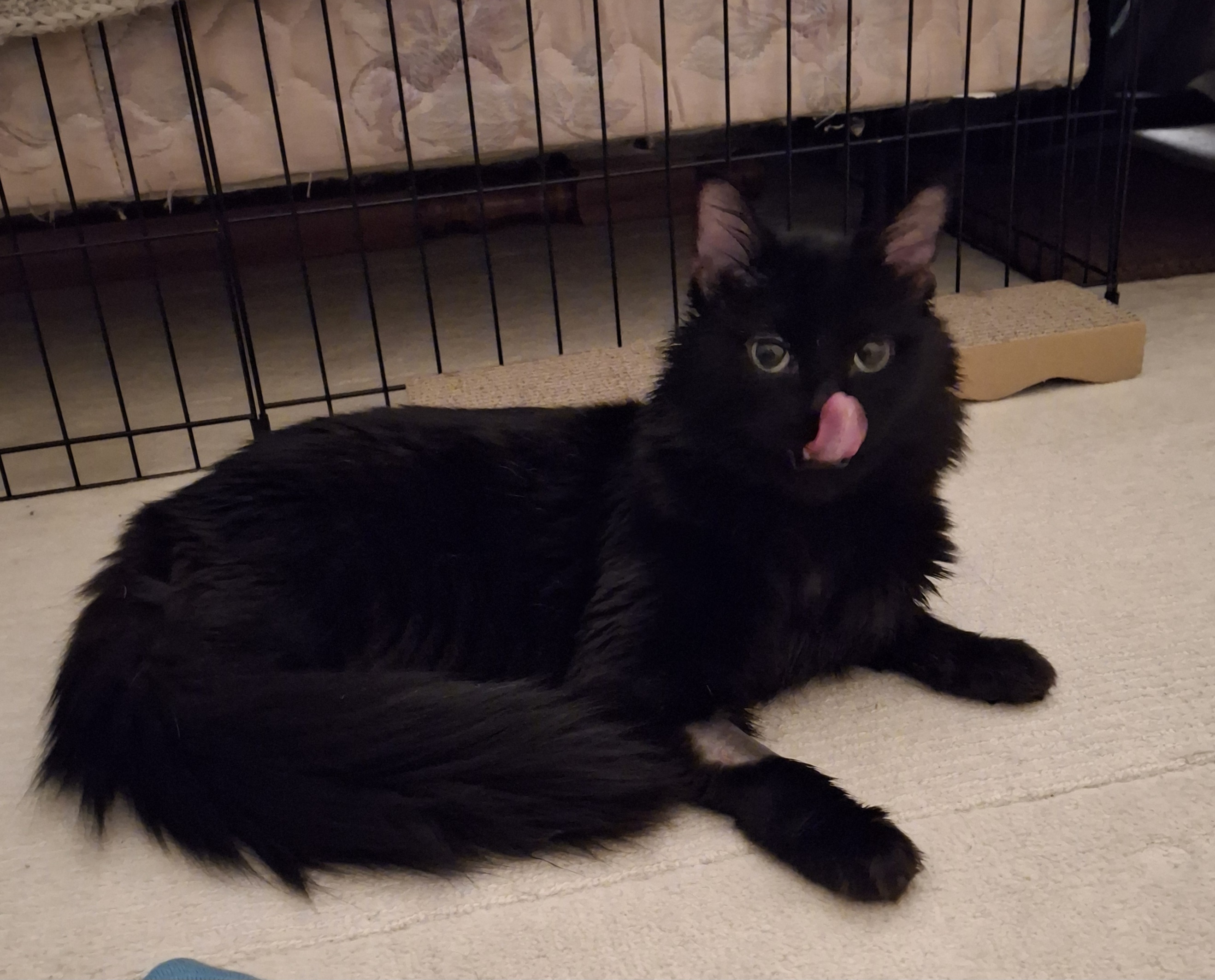 This sweet, Toothless-type kitty is on a brave journey, learning that the world can be a safe and loving place. With patience, tasty treats, and playful moments, he makes real progress every day—and it’s incredibly rewarding to watch his confidence grow.