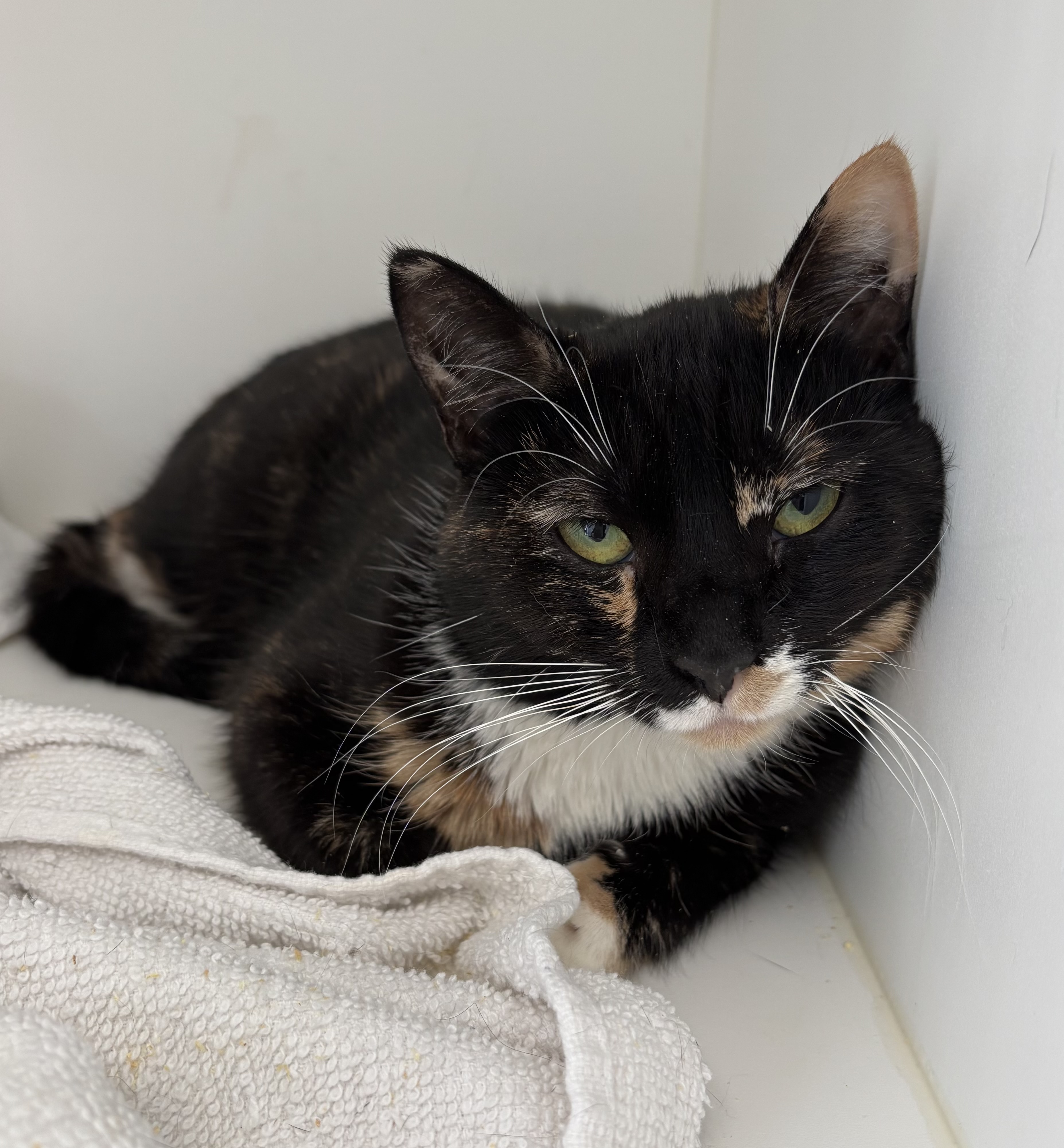 Mzia would do best in a patient, low-stress home where she can continue to build trust and confidence gradually. With gentle care and understanding, this sensitive girl has the potential to grow more comfortable and eventually share her quiet, loving nature with those who respect her need for time and space!