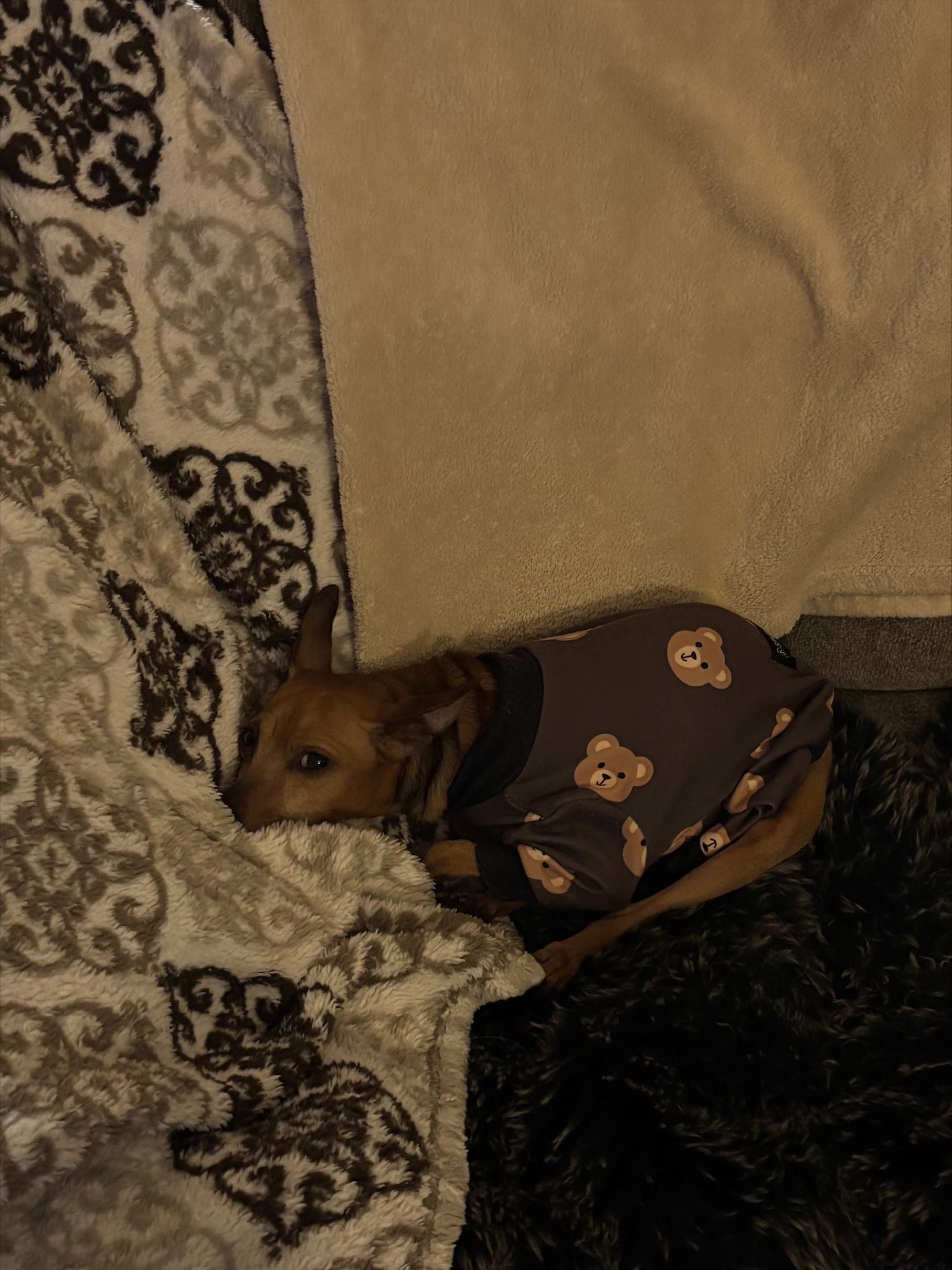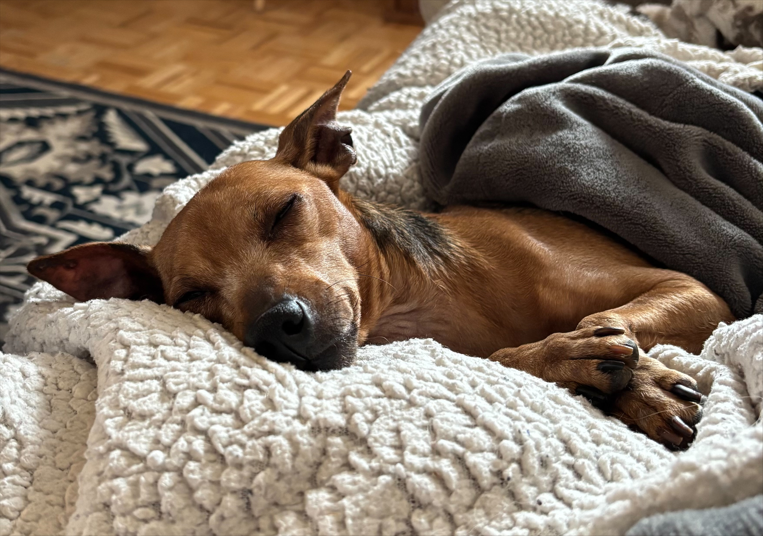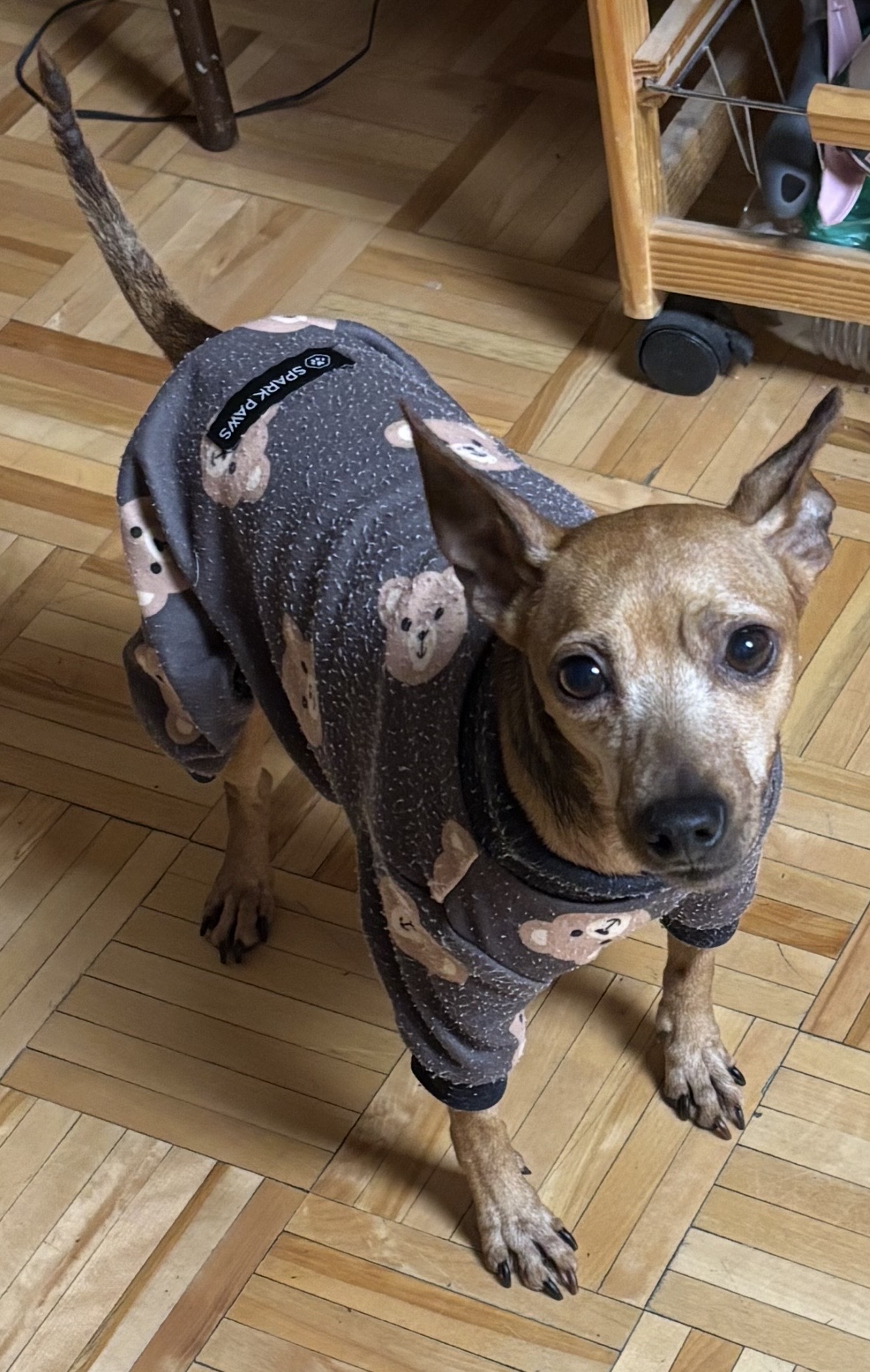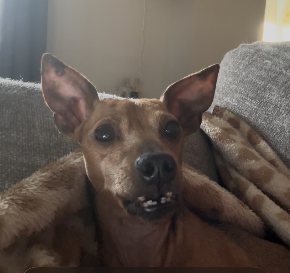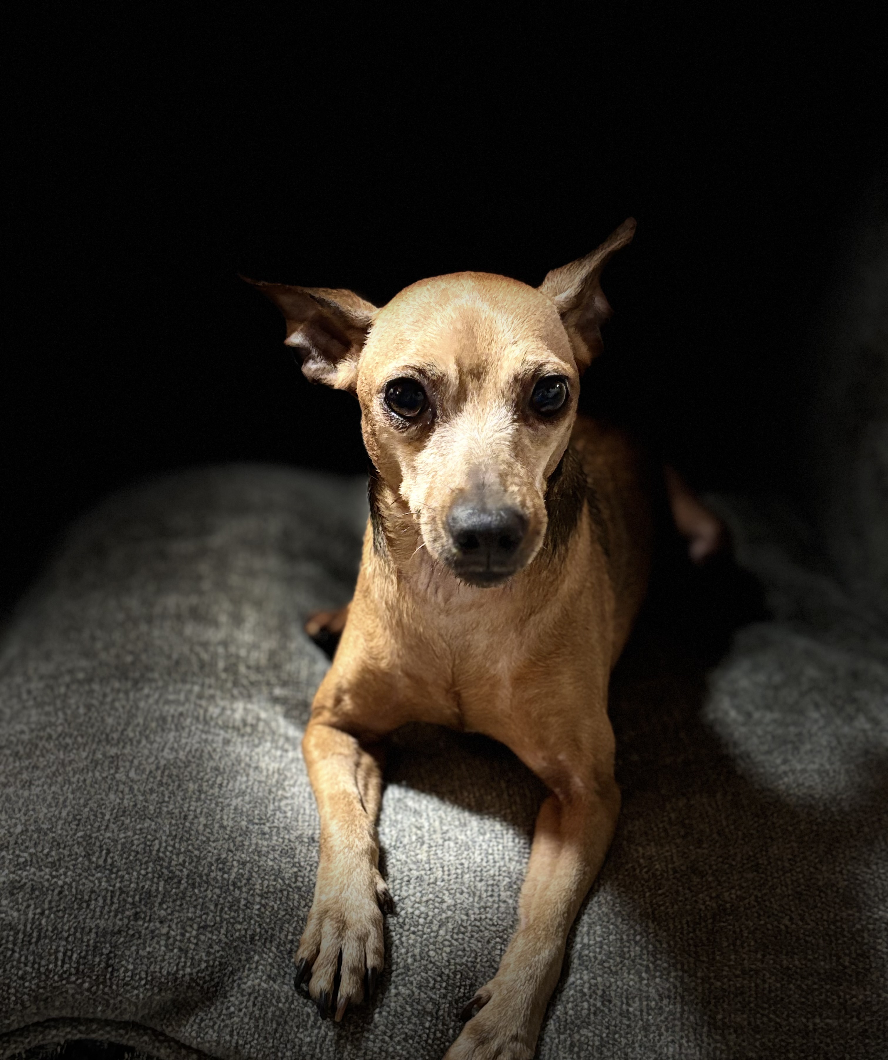 Gladys is a beautiful miniature pinscher cross weighing just 5 lbs! She is estimated to be around 5–6 years old. Gladys has been comfortable around other dogs and would likely do best with canine companions of a similar size and activity level.
