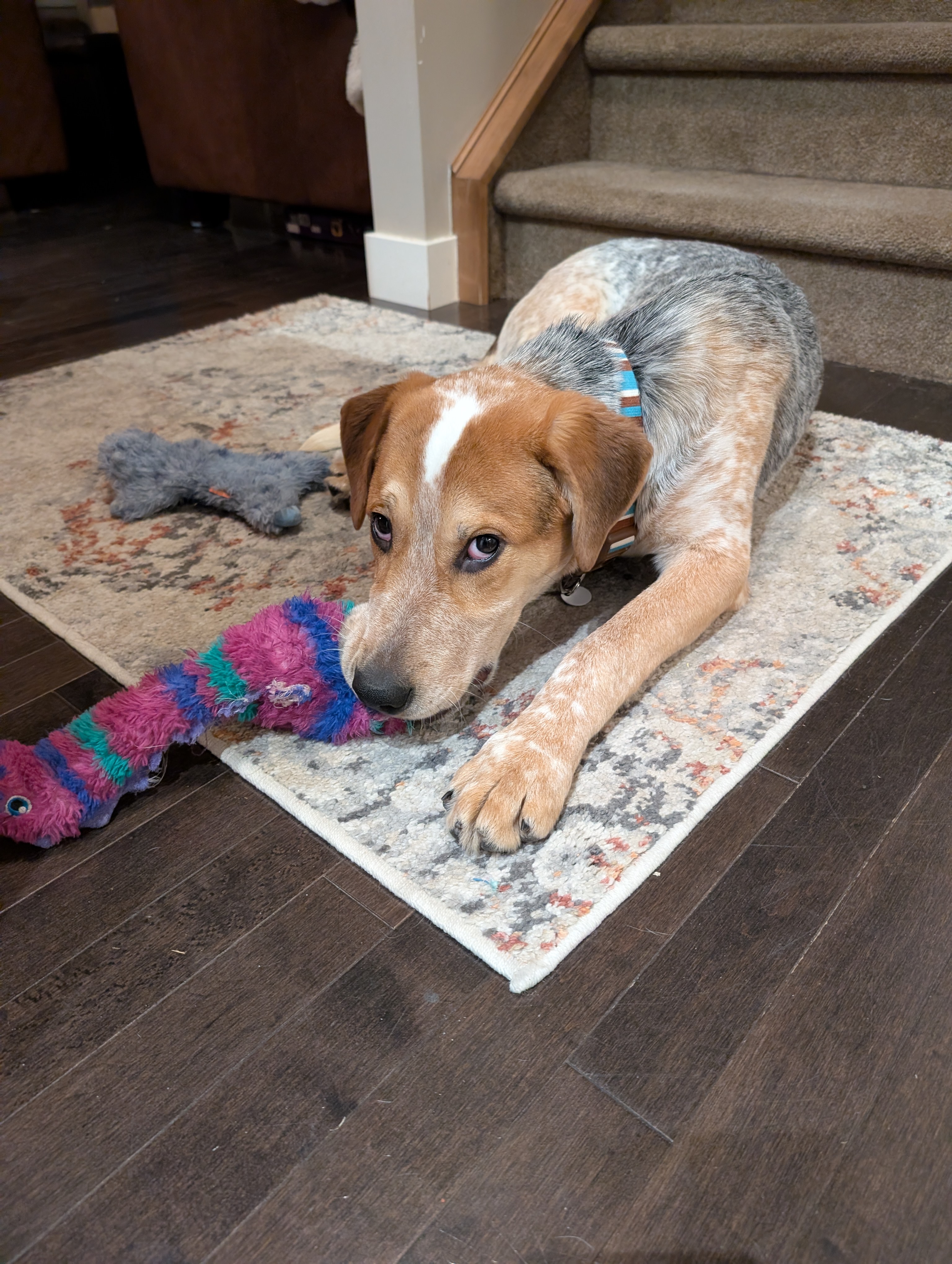 I don’t pull when I walk, but I occasionally get distracted by new sights and smells while on our strolls. I get along with both kids and dogs, with a bit of youthful energy, though I have not been around cats. I am not very vocal, but when I do bark, it’s for a good reason.