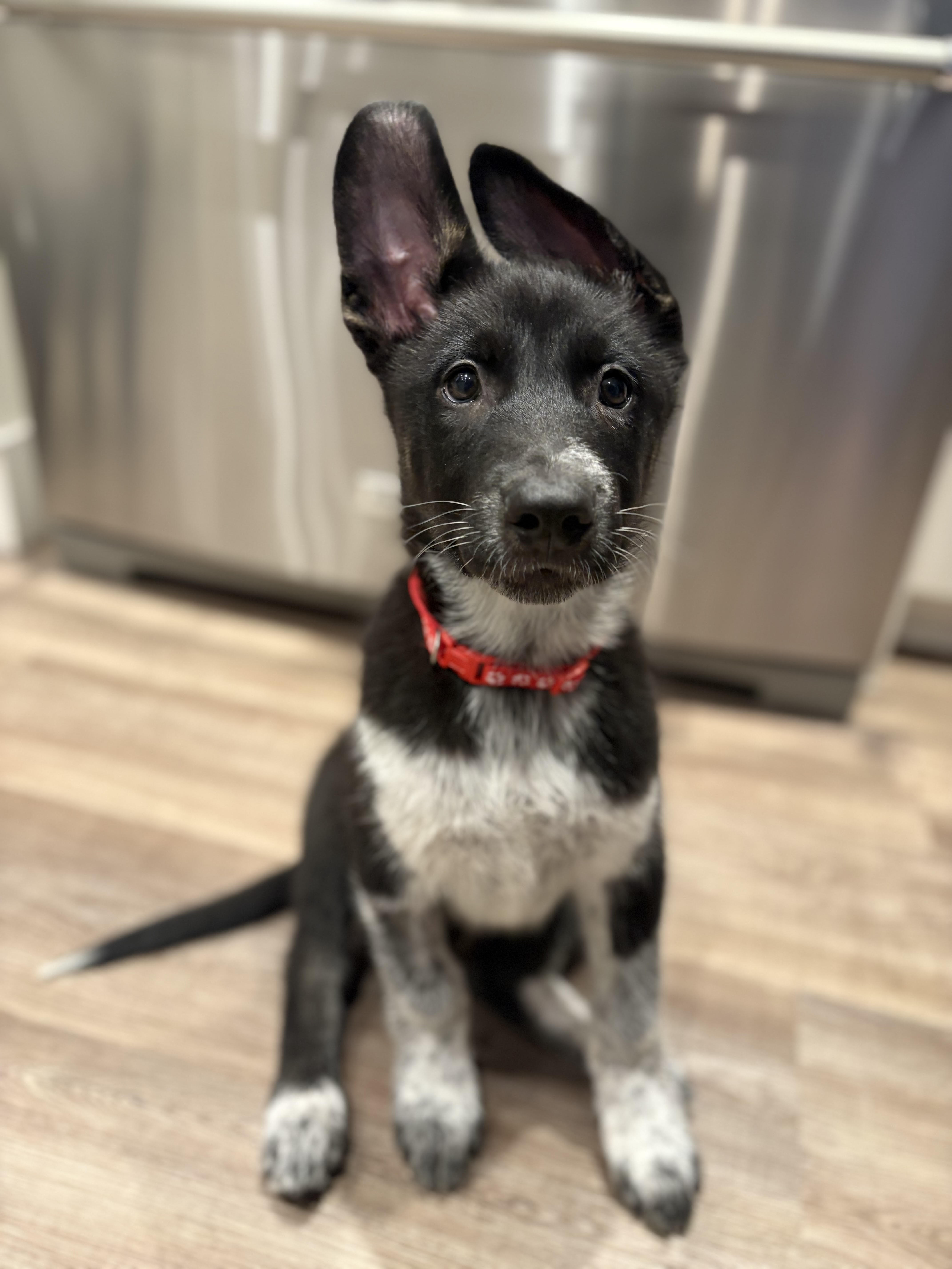 Part Husky, part Collie, and 100% comedy, Groucho Barks is a fun-loving puppy with big paws, bigger personality, and a sense of humor that would make his namesake proud. He’s always ready with a playful bounce, a curious nose, and a “did I do that?” look when he gets caught learning the ropes.