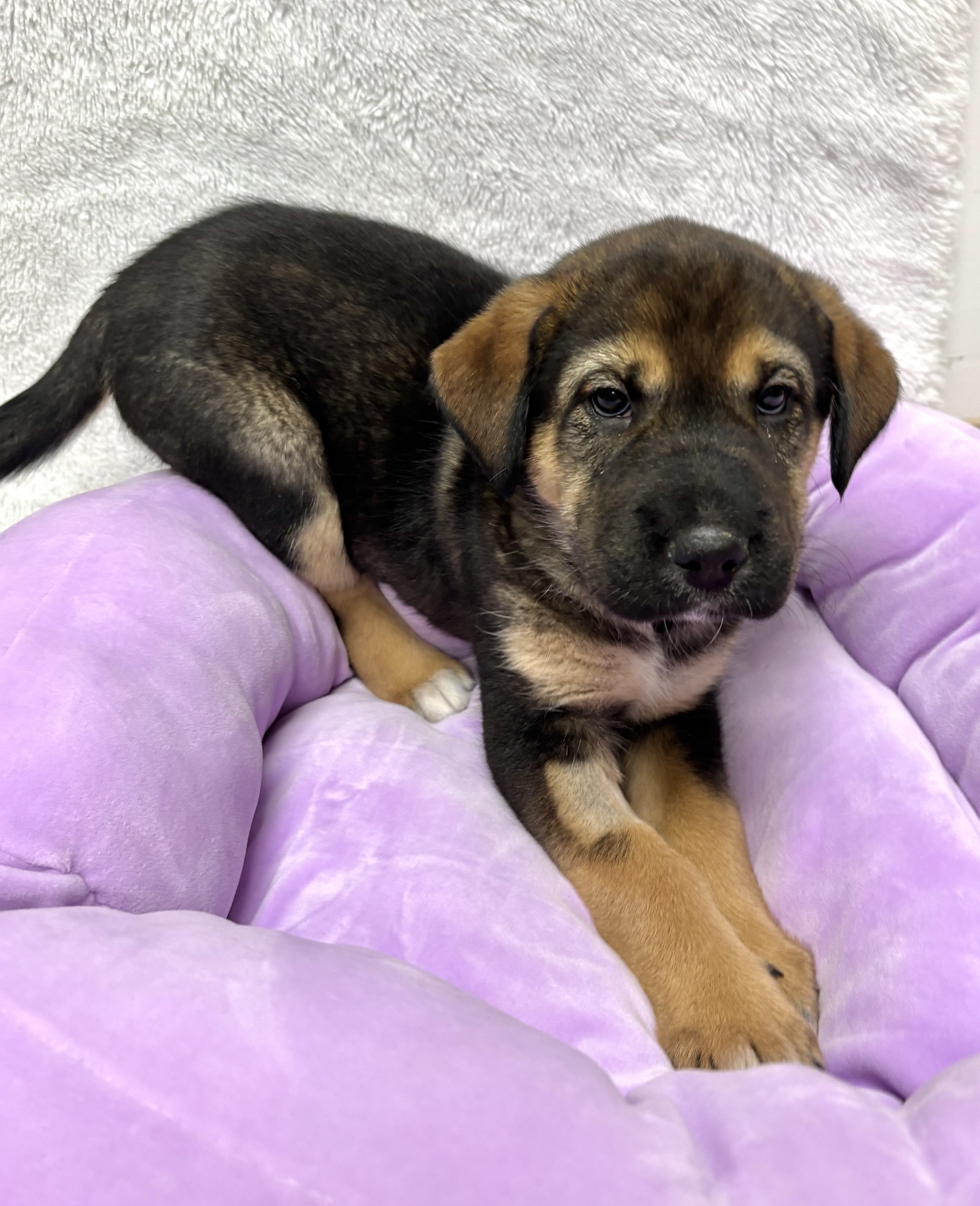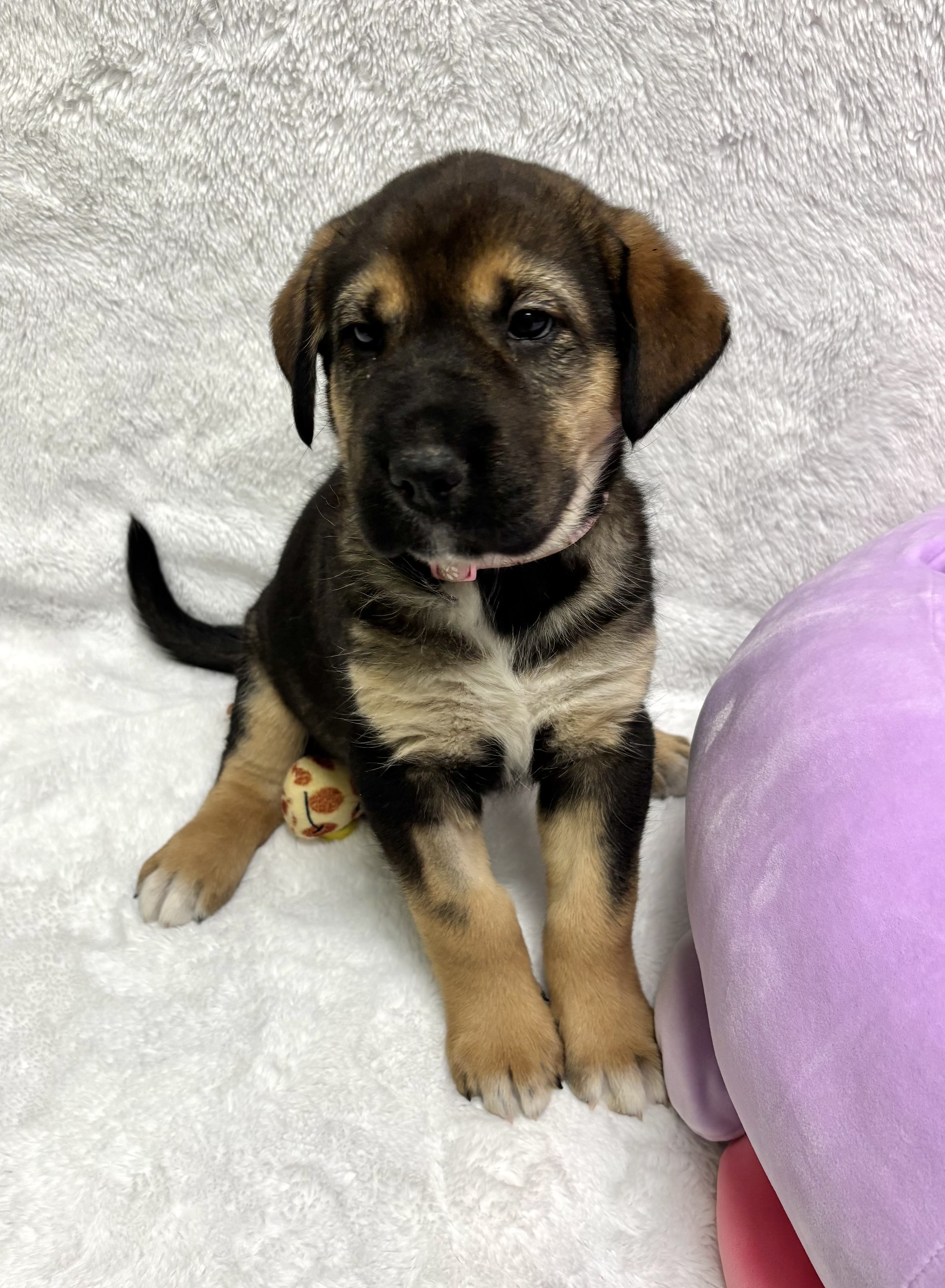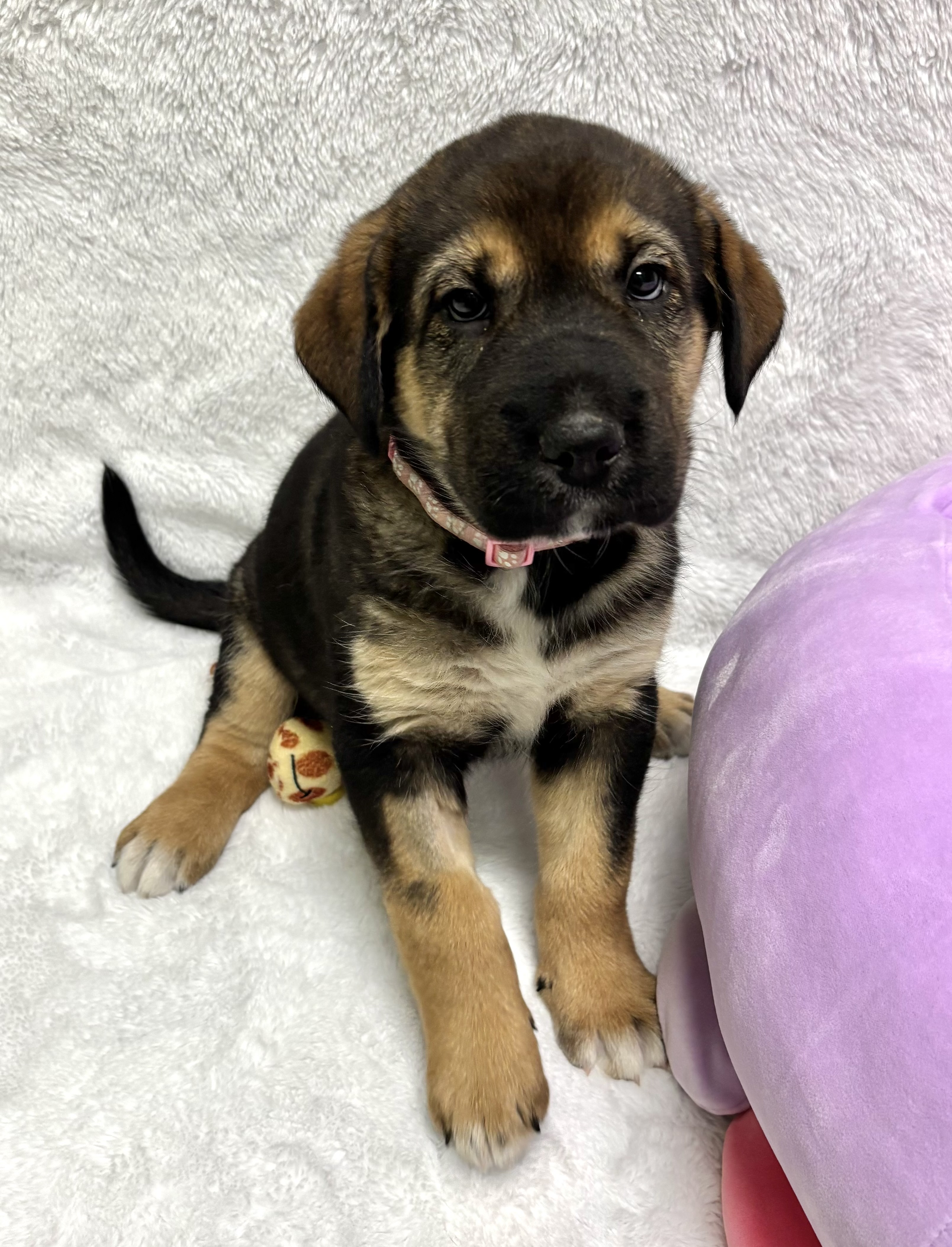 She will thrive with ongoing socialization, calm encouragement, and confidence-building experiences that help her blossom. Brain games, enrichment toys, and supervised chews will help keep her mind busy while she grows. Akiva would do best in a home that understands puppies need time, consistency, and reassurance. Supervised, positively rewarding interactions with children and adult dogs will help her continue to build trust.