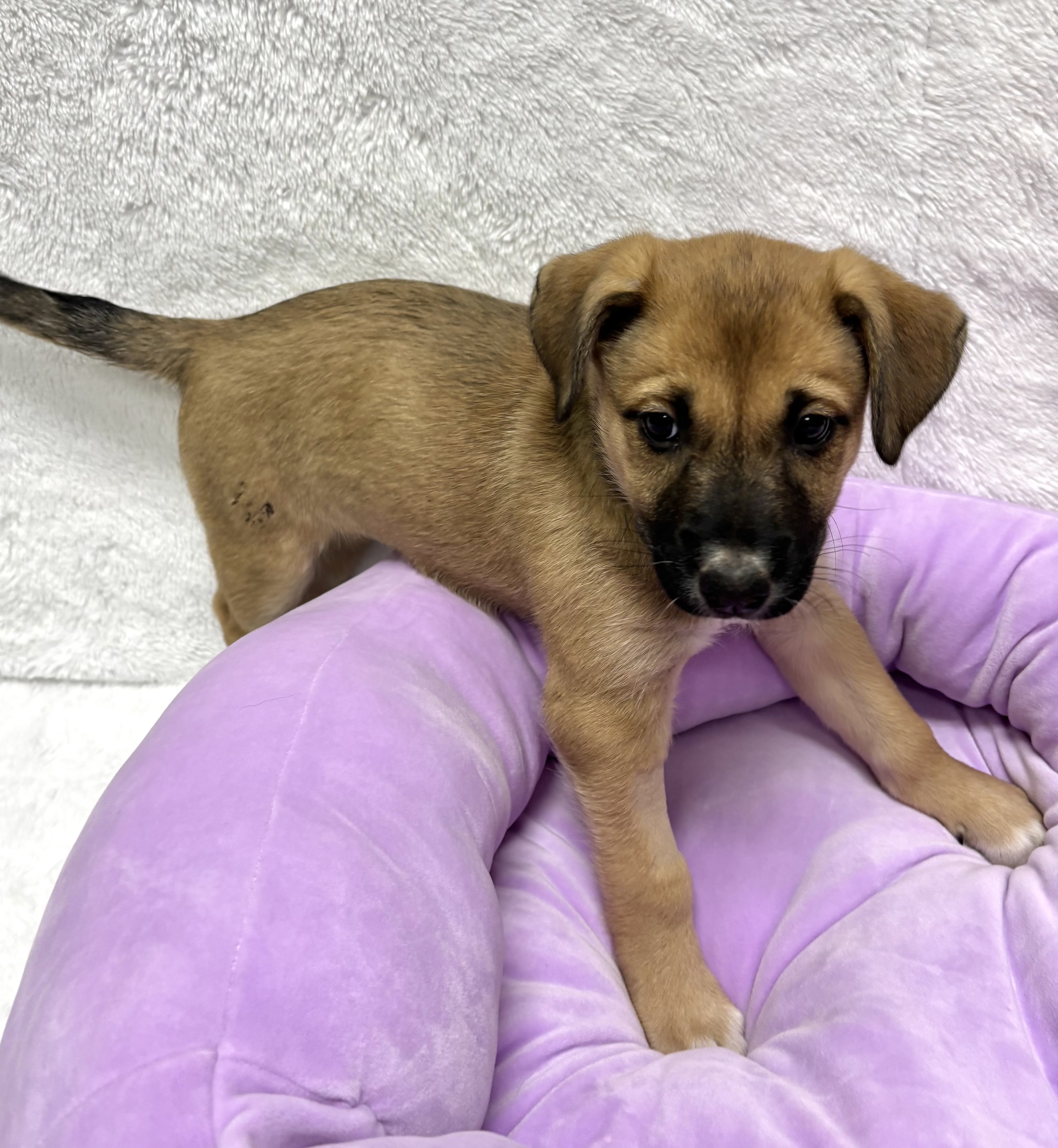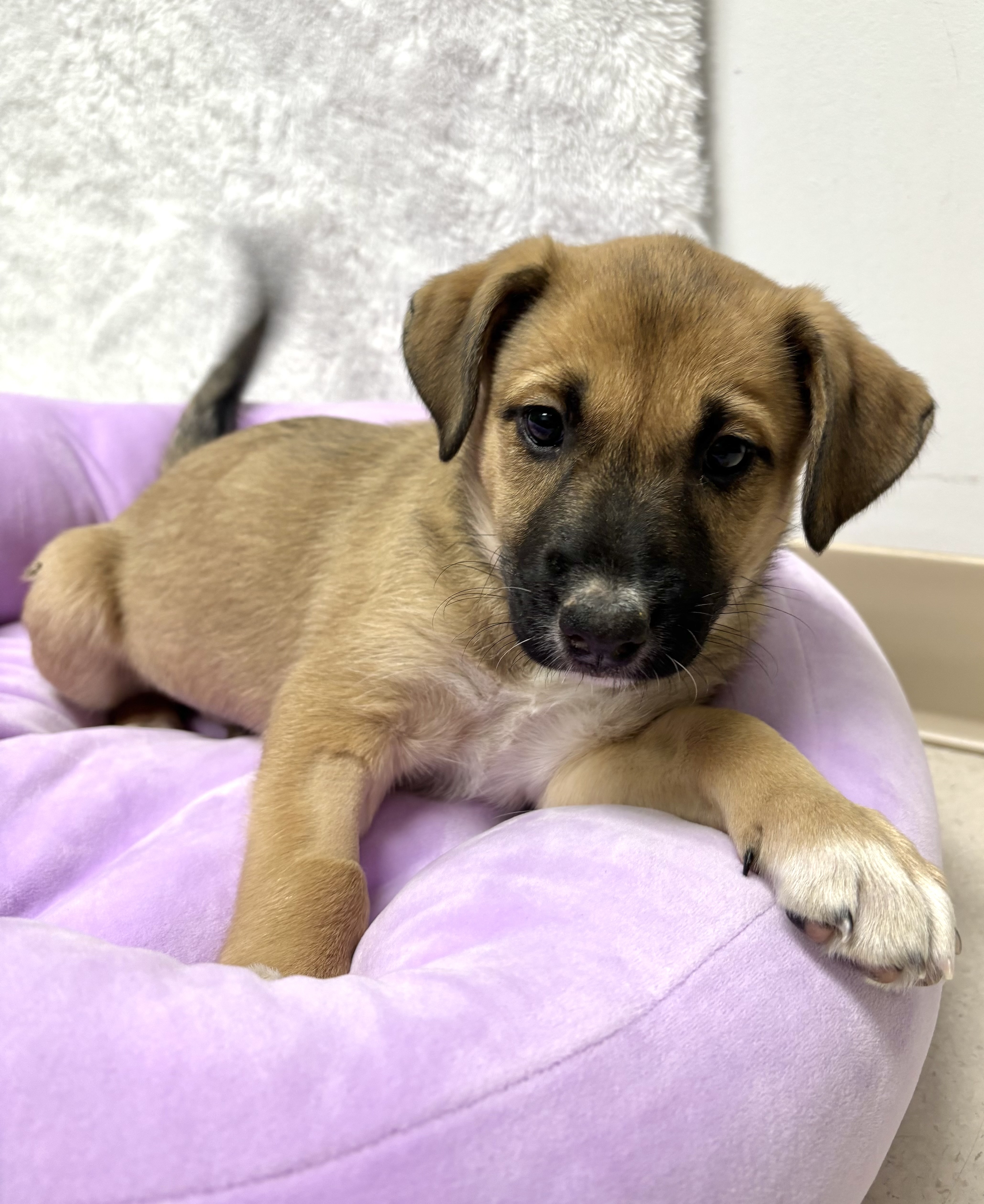 As a young puppy, Corellia is still figuring out how to navigate the world. Her future family should be prepared for the responsibilities that come with raising a puppy, including house training, impulse control, and appropriate outlets for mouthing. Continued training and positive socialization will help her gain confidence and learn good manners, all while strengthening her bond with her people. Corellia will benefit from a home that provides structure, enrichment, and lots of love.