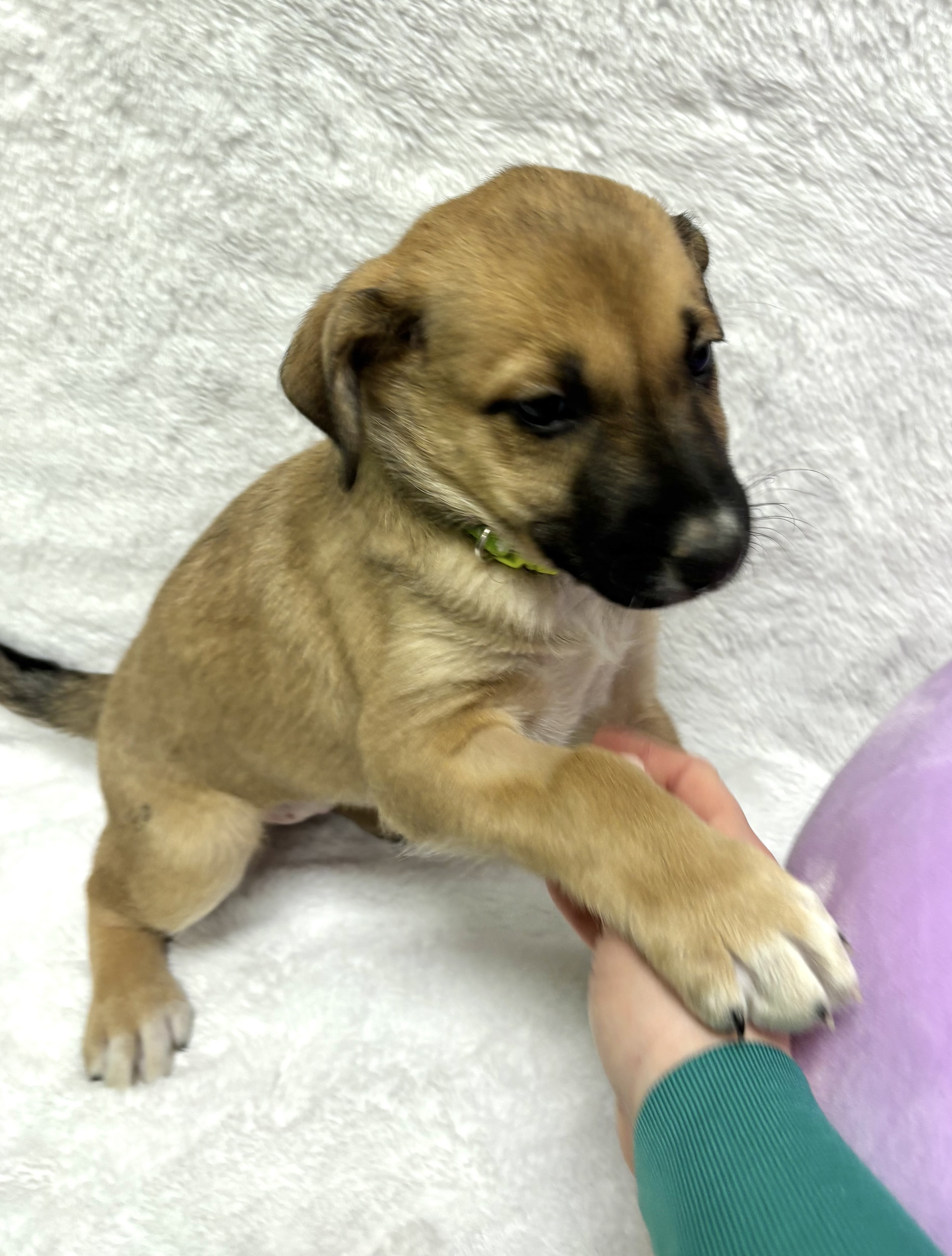 This girl knows what she likes and isn’t afraid to show a bit of stubborn puppy determination, especially when she’s in the middle of playtime or deciding where the best cuddle spot is. And yes—Corellia loves to be cuddled, happily melting into your arms once trust is built.