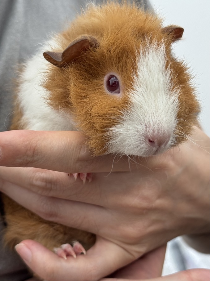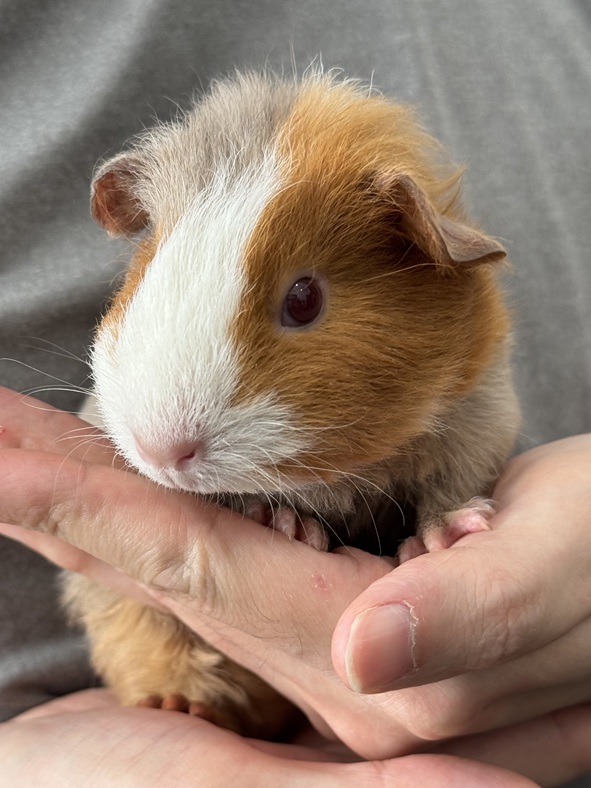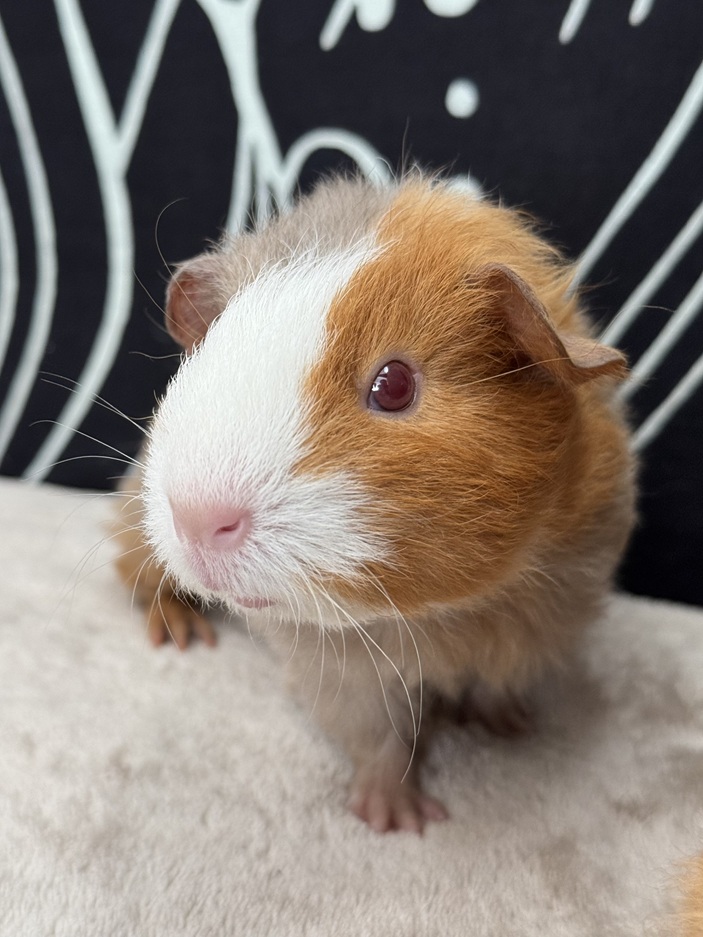 Fig: My name is Fig. I love burrowing under soft tunnels and playing hide-and-wheek. If there’s a treat to be found, I’ll fig-ure out where it’s hidden!