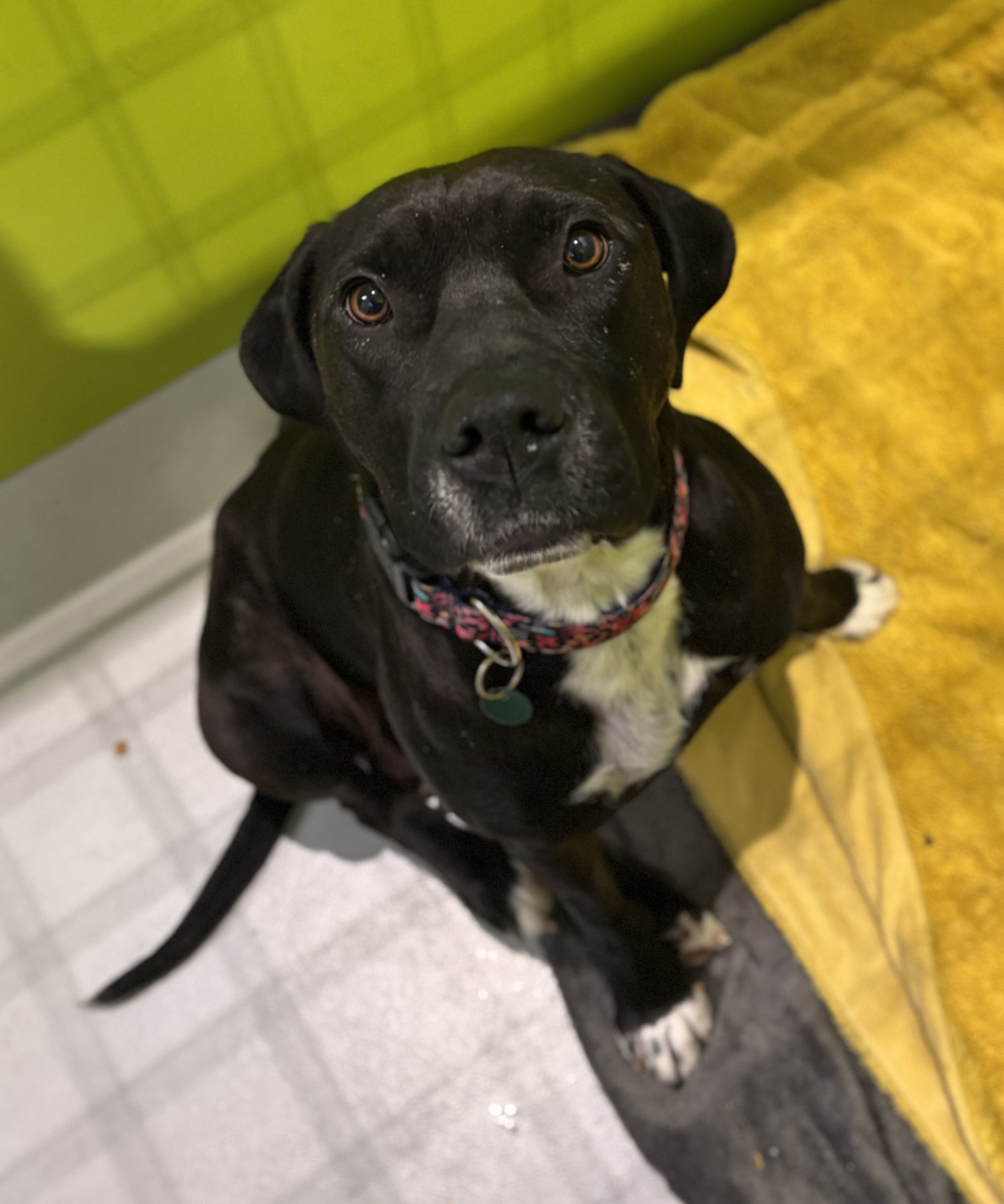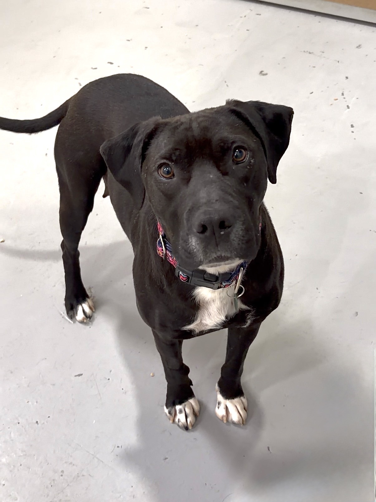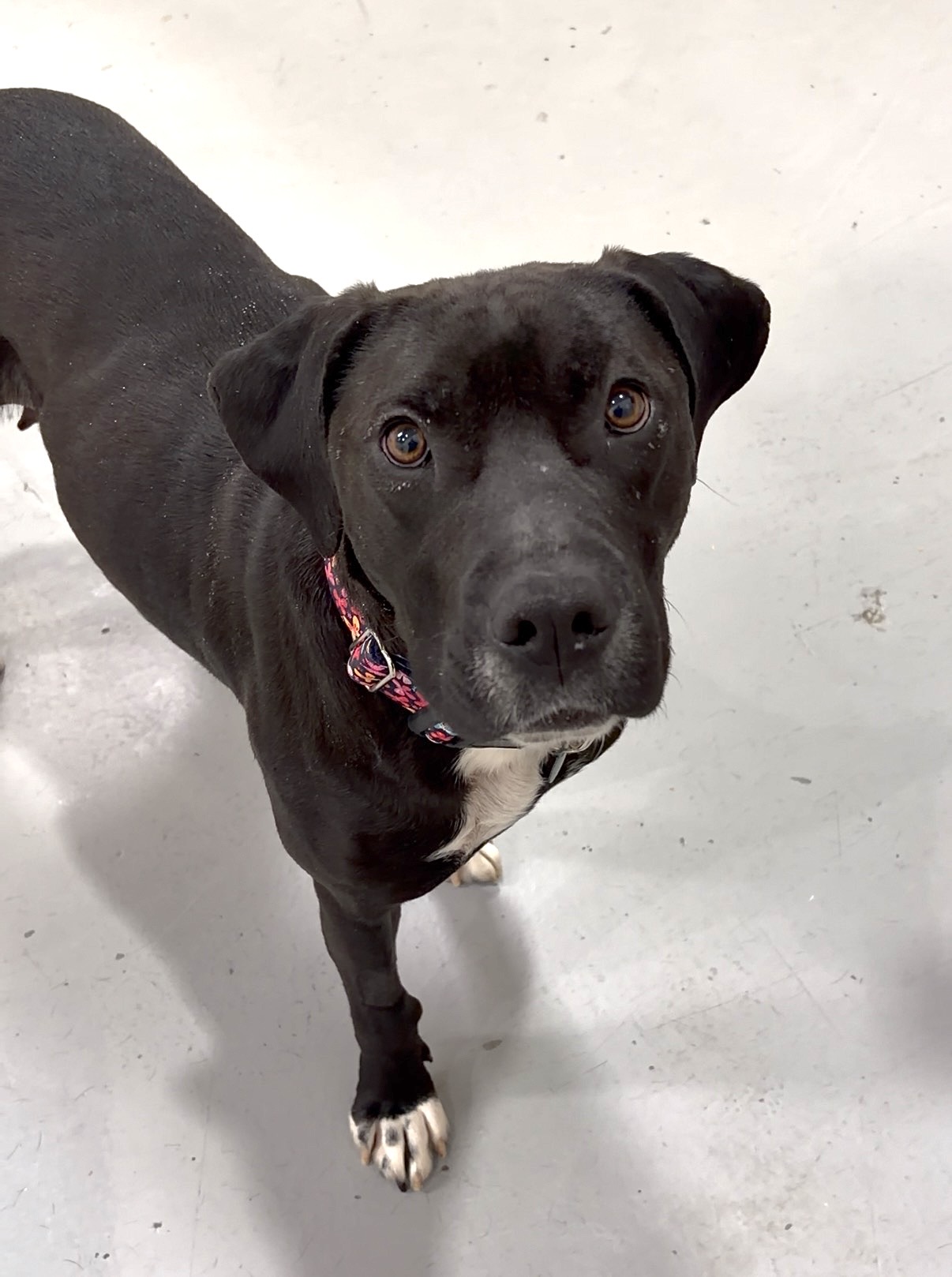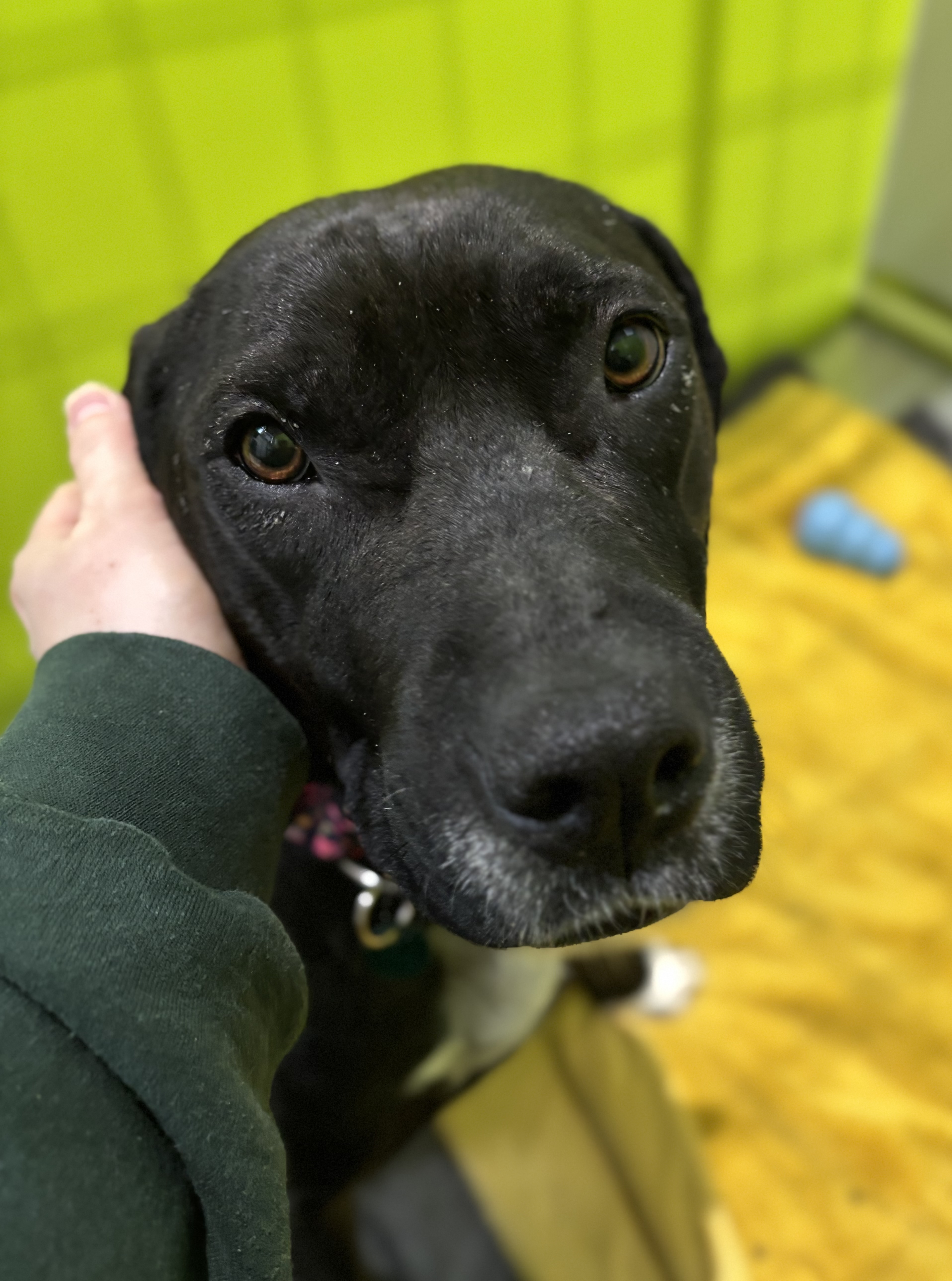 She has the sweetest habit of gently pawing at you when she wants more love, as if to say, “Please don’t stop.” Her soft, adoring nature makes it clear that all she wants is to be close to her people. Meadow will benefit from continued support with her basic training. She hasn’t quite mastered “sit” yet, but she is a smart girl who is eager to please and will thrive with positive reinforcement and consistency.