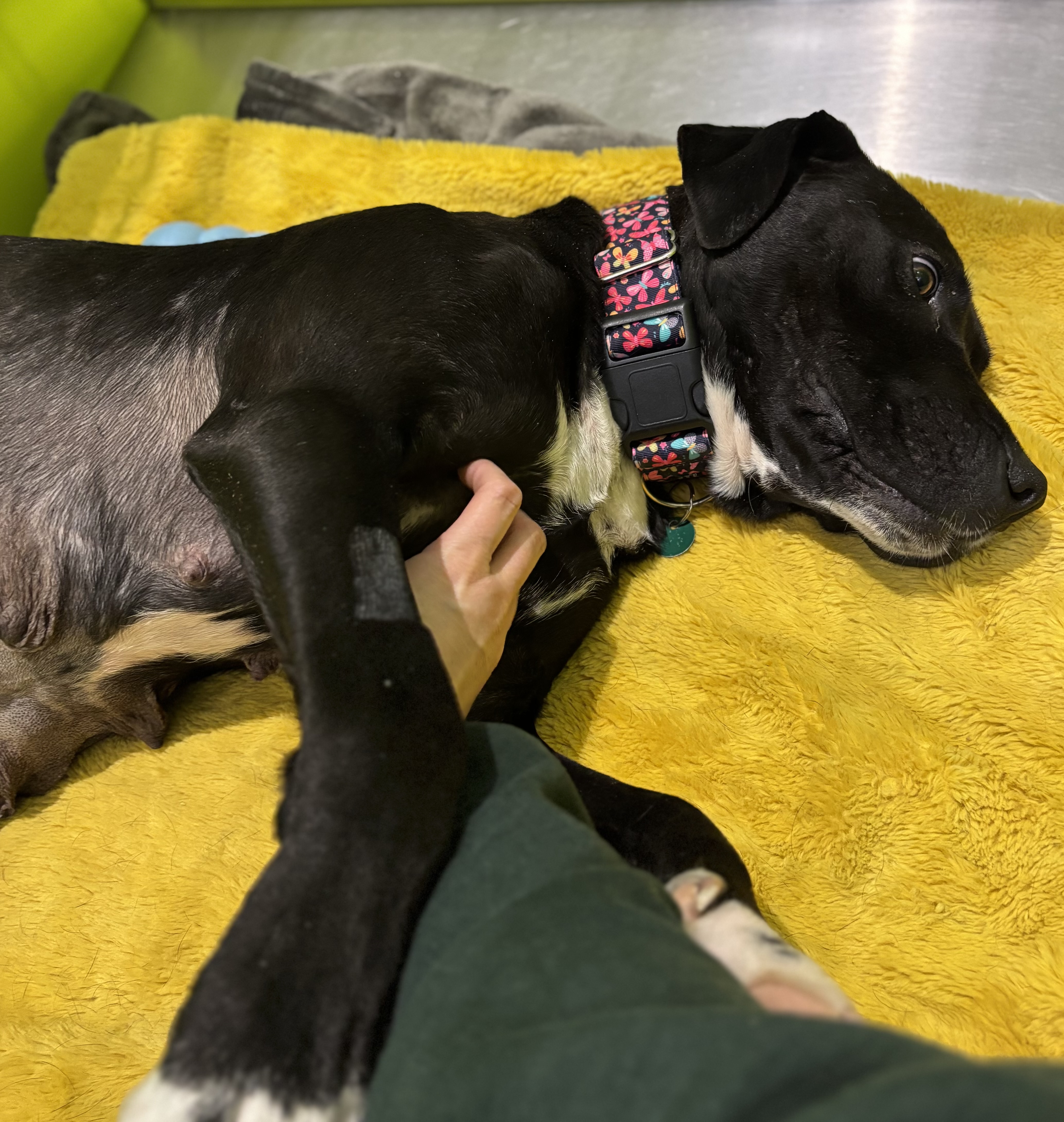 Meadow continues to show that she truly wants to trust and learn. Helping her build confidence will be an incredibly rewarding journey for the lucky family who welcomes her home. Once she feels safe, Meadow’s affectionate personality blossoms. She absolutely loves snuggles and will happily roll over for belly rubs — her favourite!