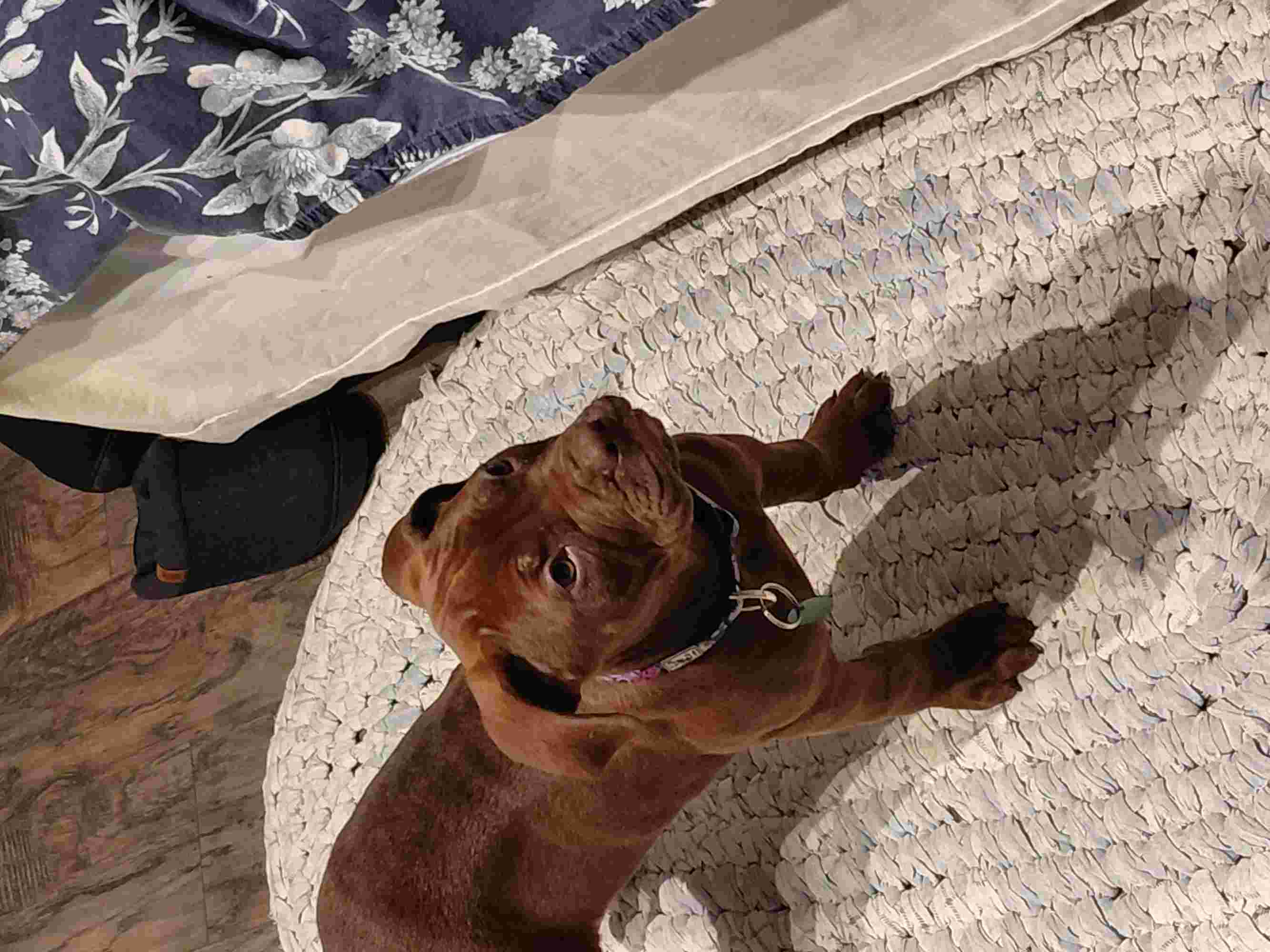My foster family thinks I’m highly trainable because I’m food motivated but right now the idea of playtime makes it hard to sit & learn.