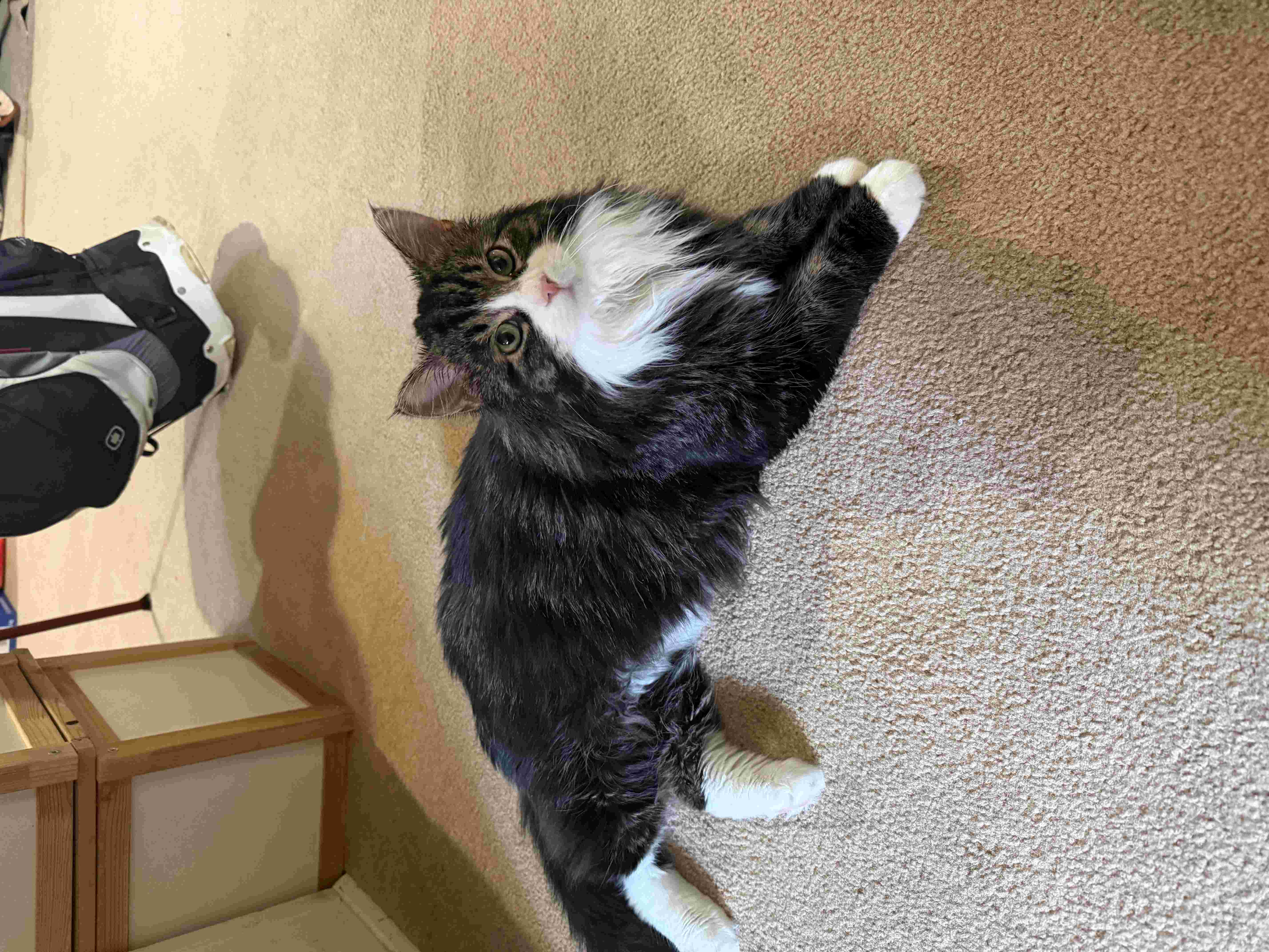 This charming, confident cat loves being part of the action. He’ll happily follow you from room to room, settle at your feet, and keep a watchful eye on everything you do. If you’re looking for a loyal companion who enjoys your presence without needing to be in your lap 24/7, he’s your guy.