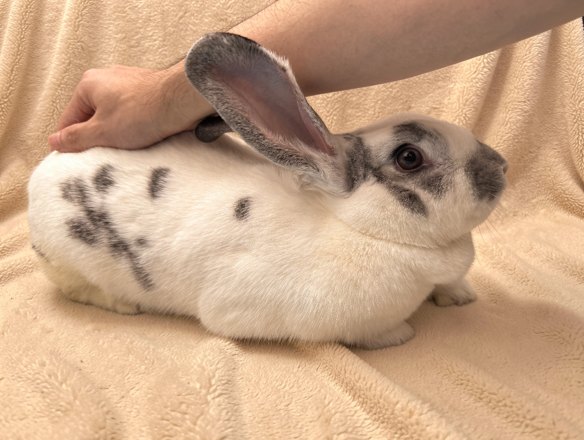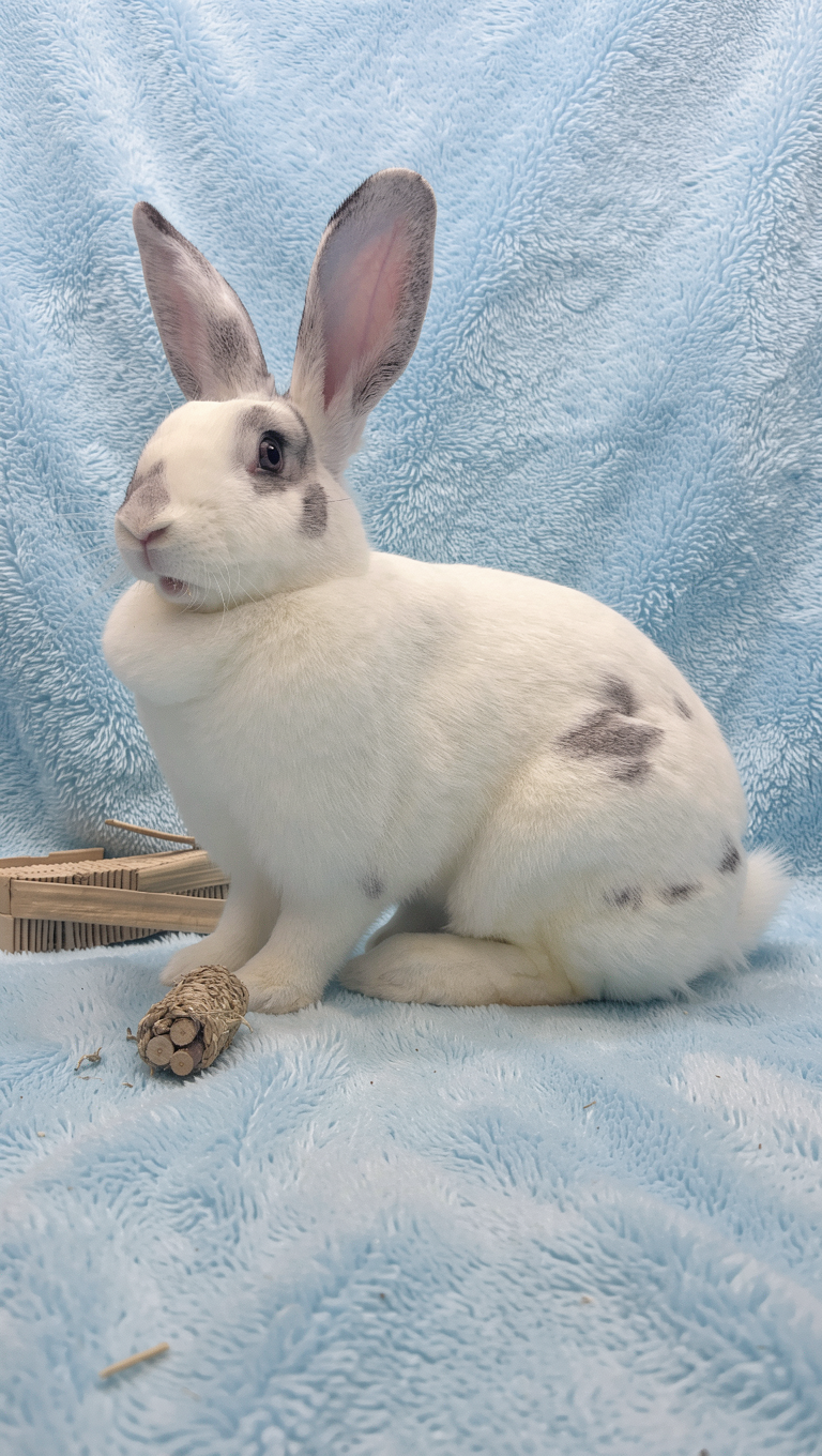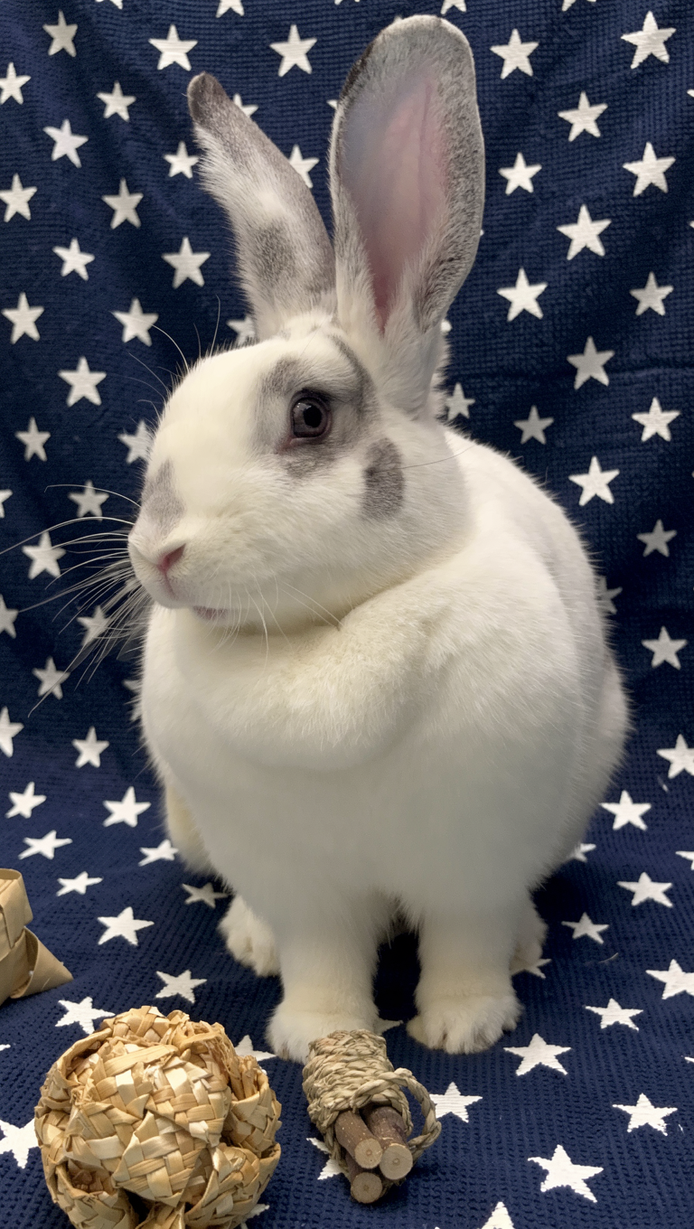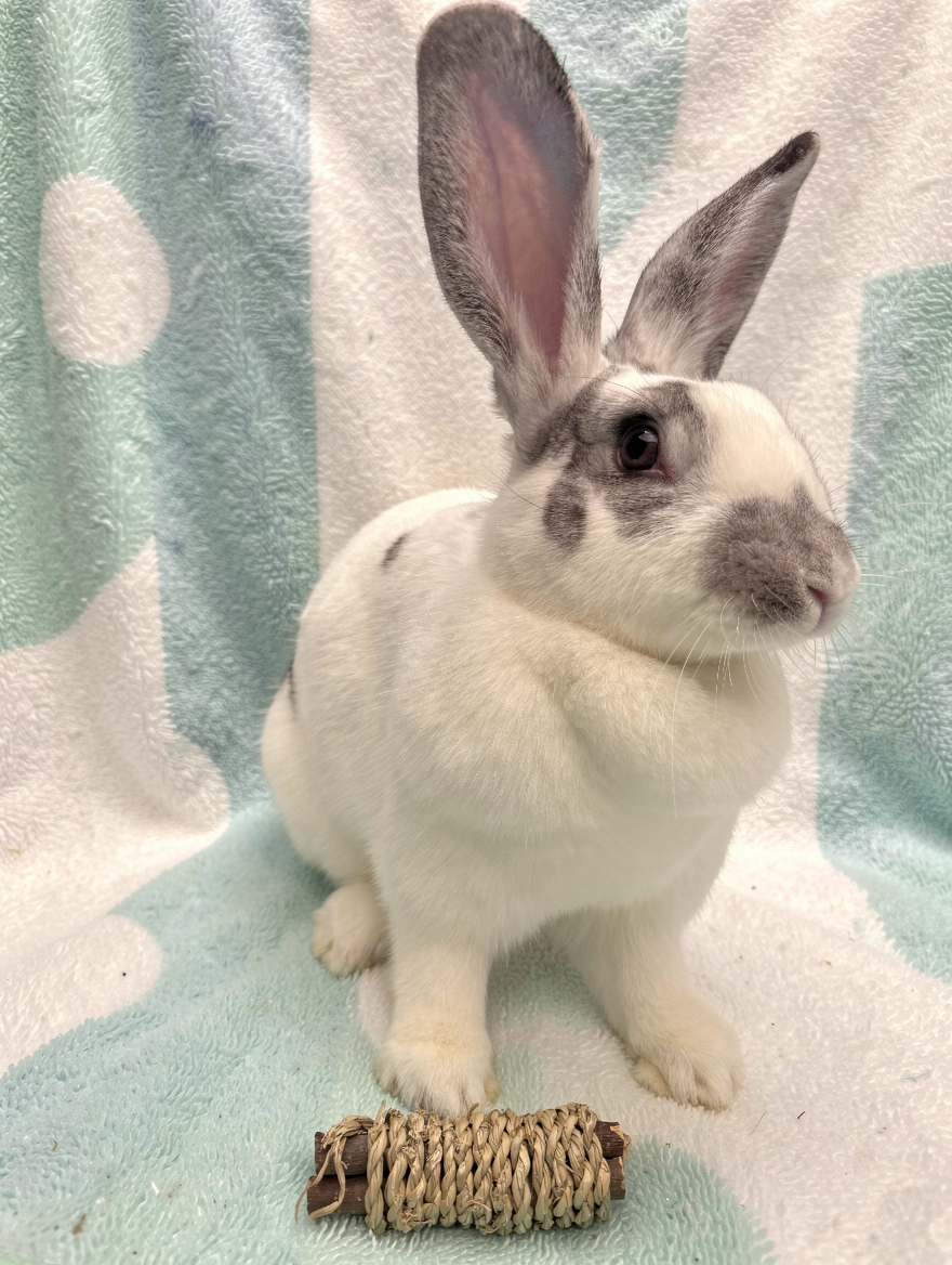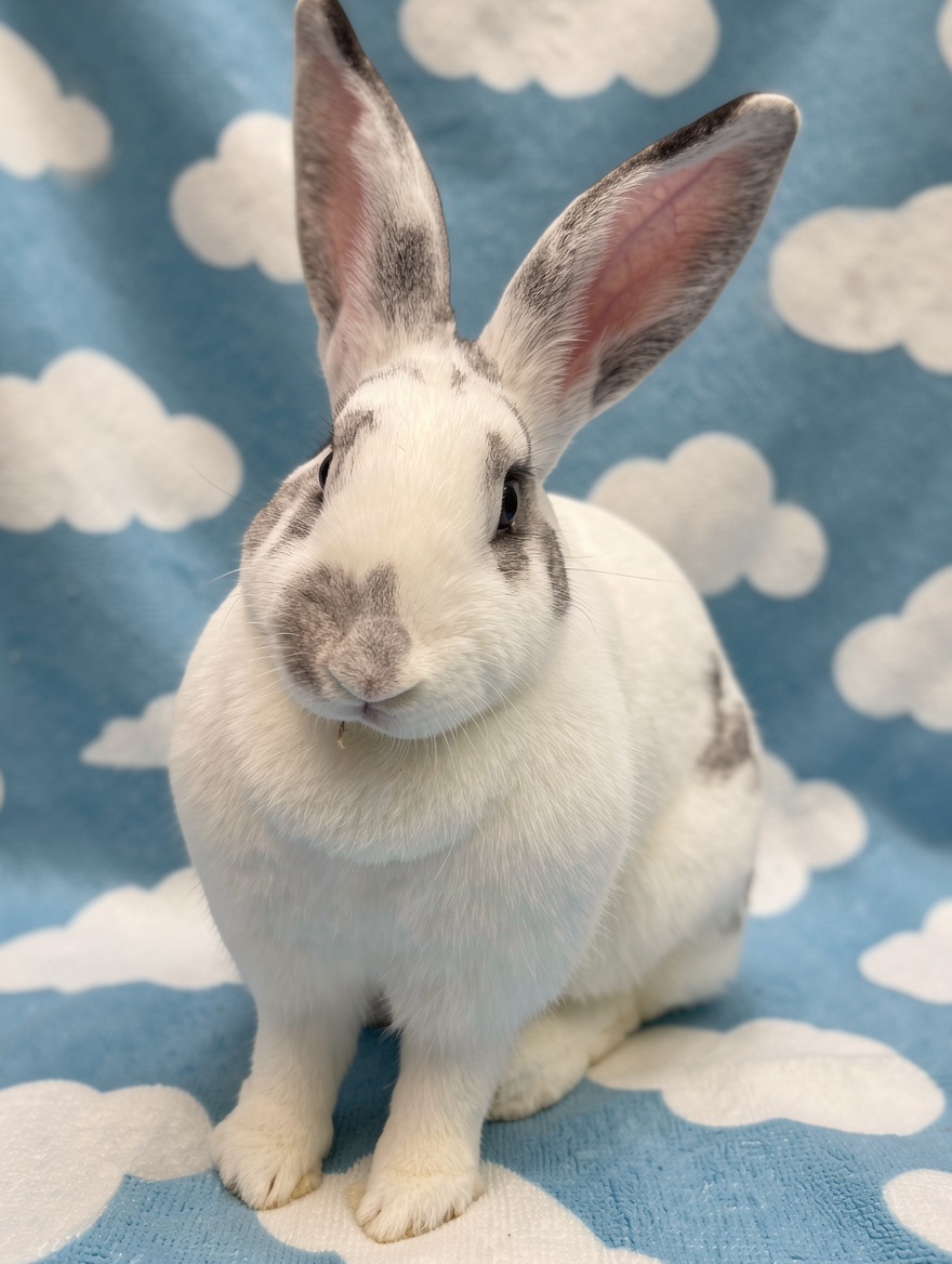 As a New Zealand girl, Taco is a big bun with even bigger dreams! She will thrive in a safe, spacious home where she can stretch her long legs and enjoy plenty of free-roam time! To keep her big, beautiful spirit going, she requires unlimited fresh hay and daily leafy greens.
