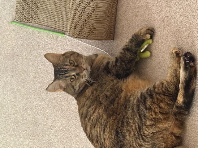Are you in need of lots of unconditional love and affection? If so, I’m the girl for you! I’m a very social 10 year old fur baby who loves being around people. I will sleep with you if you let me and will sometimes cuddle up on your chest so we can be nice and close. I like to play during the day (I especially love to chase the wand) and I’ll tell you when I need food or pets.