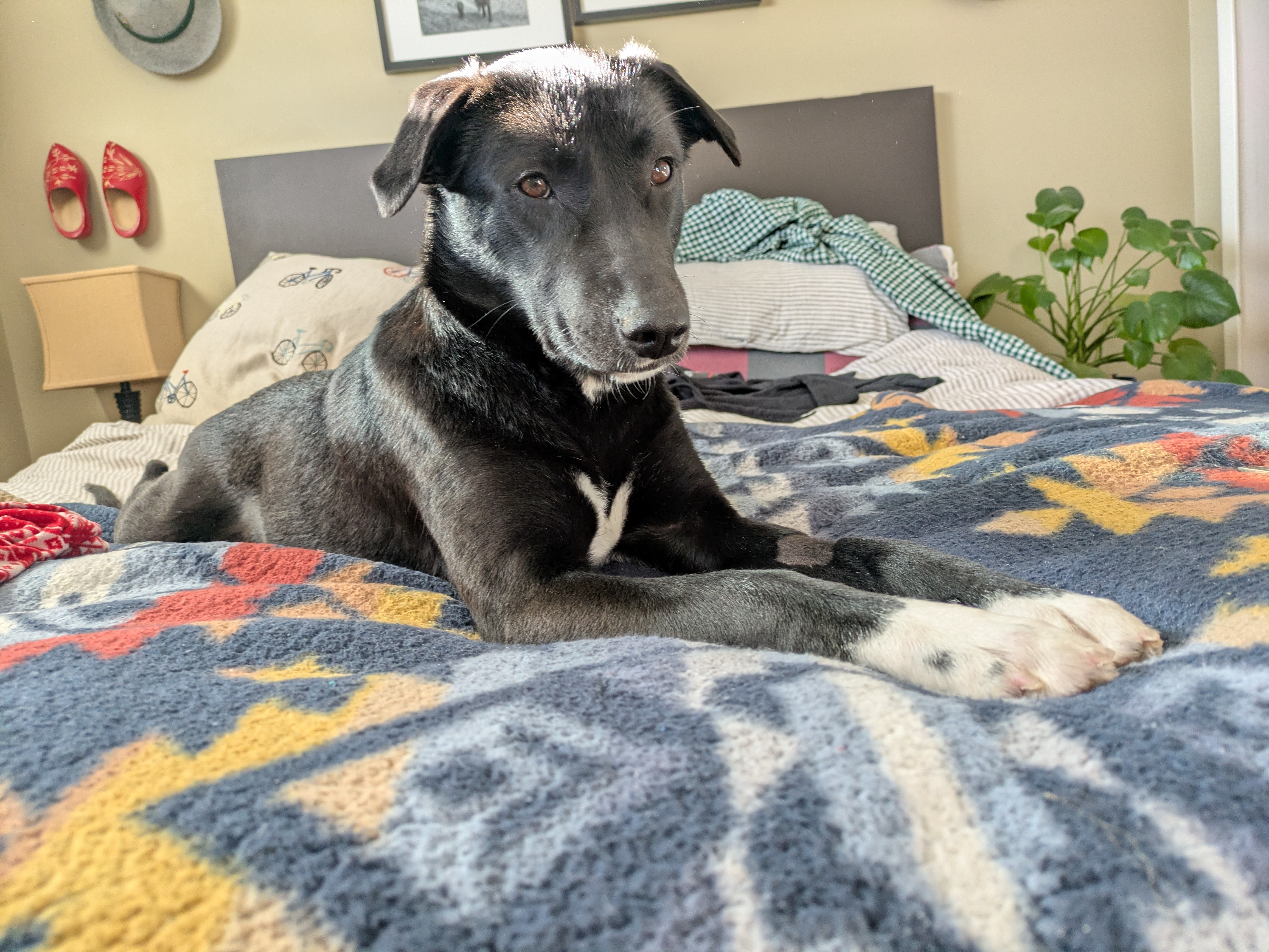 This medium-sized girl has an extra-large heart and loves nothing more than being close to her people. Her favorite place to be is right by your side, though she’s just as happy exploring the backyard or stretching out for a sunny nap.