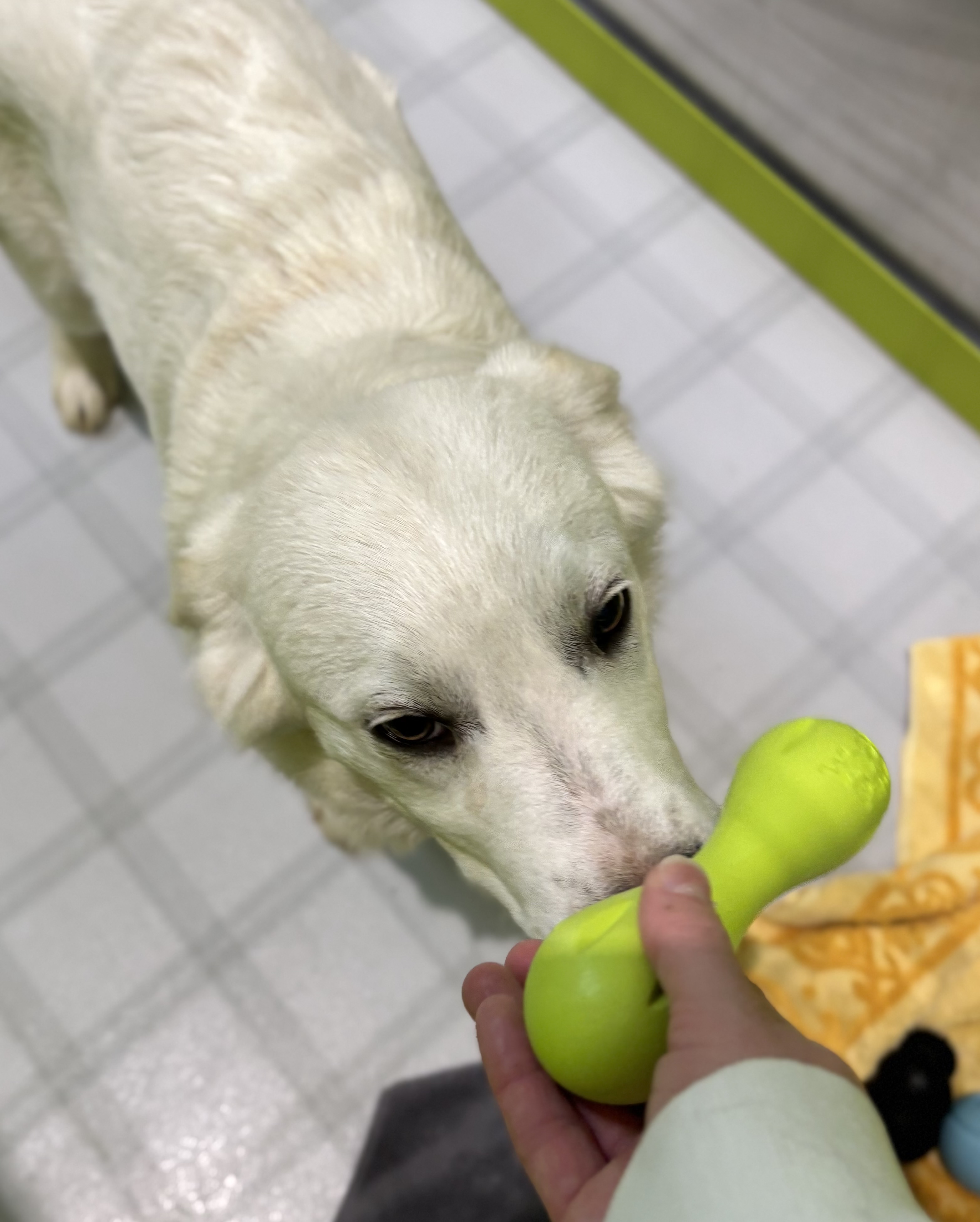 Reinhart is a big bundle of excitement and affection wrapped up in a growing puppy body. He’s a young, large-breed boy who will be a big (possibly extra-large) dog when full grown — perfect for anyone who loves a substantial cuddle buddy! Reinhart is enthusiastic about life and absolutely adores playtime. Toys are his favourite, and he approaches them with joyful energy and a goofy charm that’s impossible not to smile at.