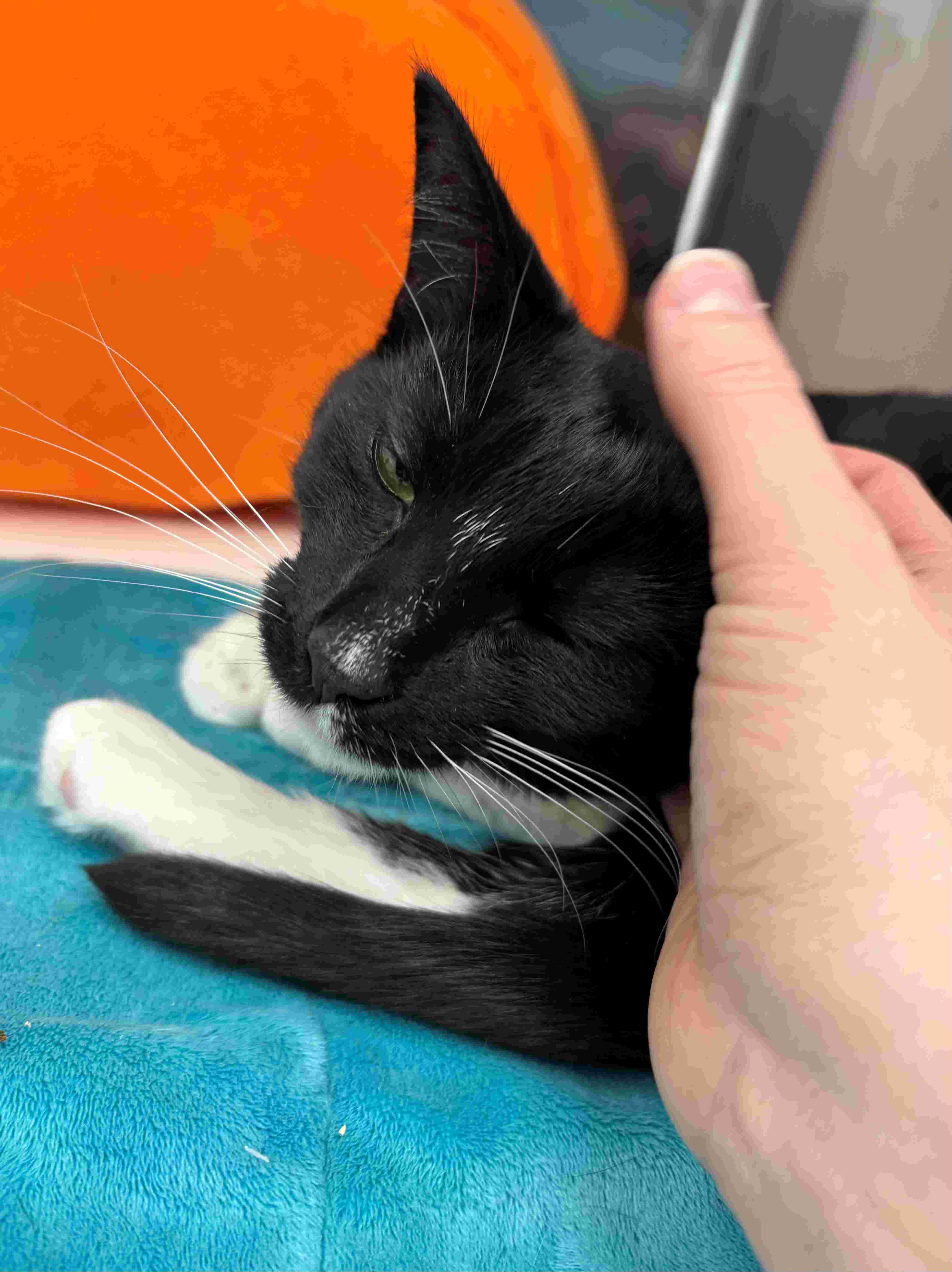 Jalapeno is a sensitive, sweet-natured boy who is learning that the world can be a safe and gentle place. When he first arrived, he was understandably nervous and found comfort tucked away in his hidey bed, quietly observing everything around him. Change can be overwhelming for a tender-hearted soul like Jalapeno, but with time and patience, he has already begun to show how brave he truly is. He has started venturing out more, exploring at his own pace and building confidence step by step. Once he feels safe, Jalapeno absolutely melts into gentle pets and calm attention. He enjoys soft affection and the quiet reassurance of kind companionship.