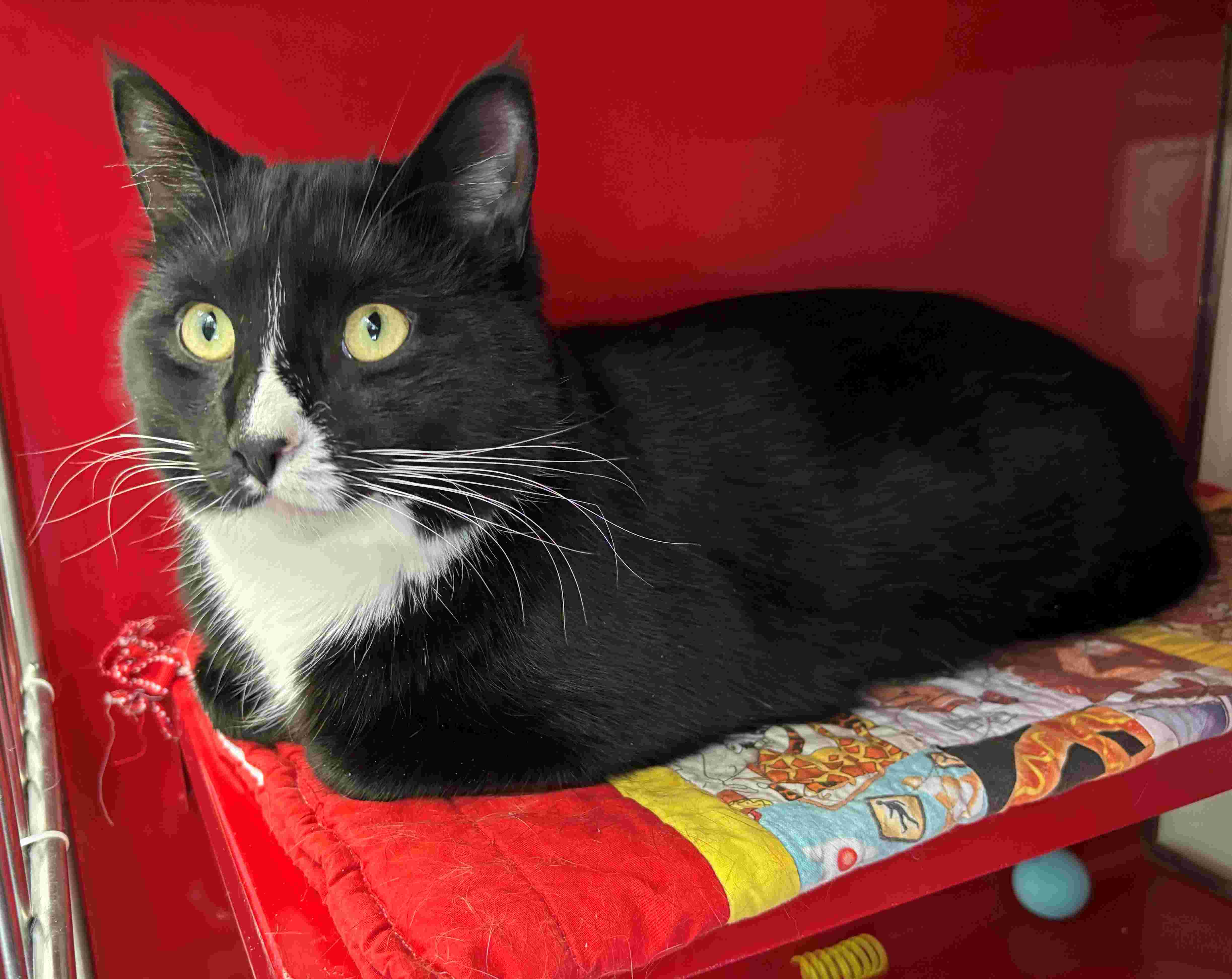 Goober is a sweet and friendly boy with a heart full of love and curiosity! He enjoys relaxing in cozy spots, exploring his surroundings, and playing with toys that keep his mind and paws busy. This affectionate boy would thrive in a forever home that offers a mix of calm downtime and playful fun, giving him the space to be himself and feel safe.